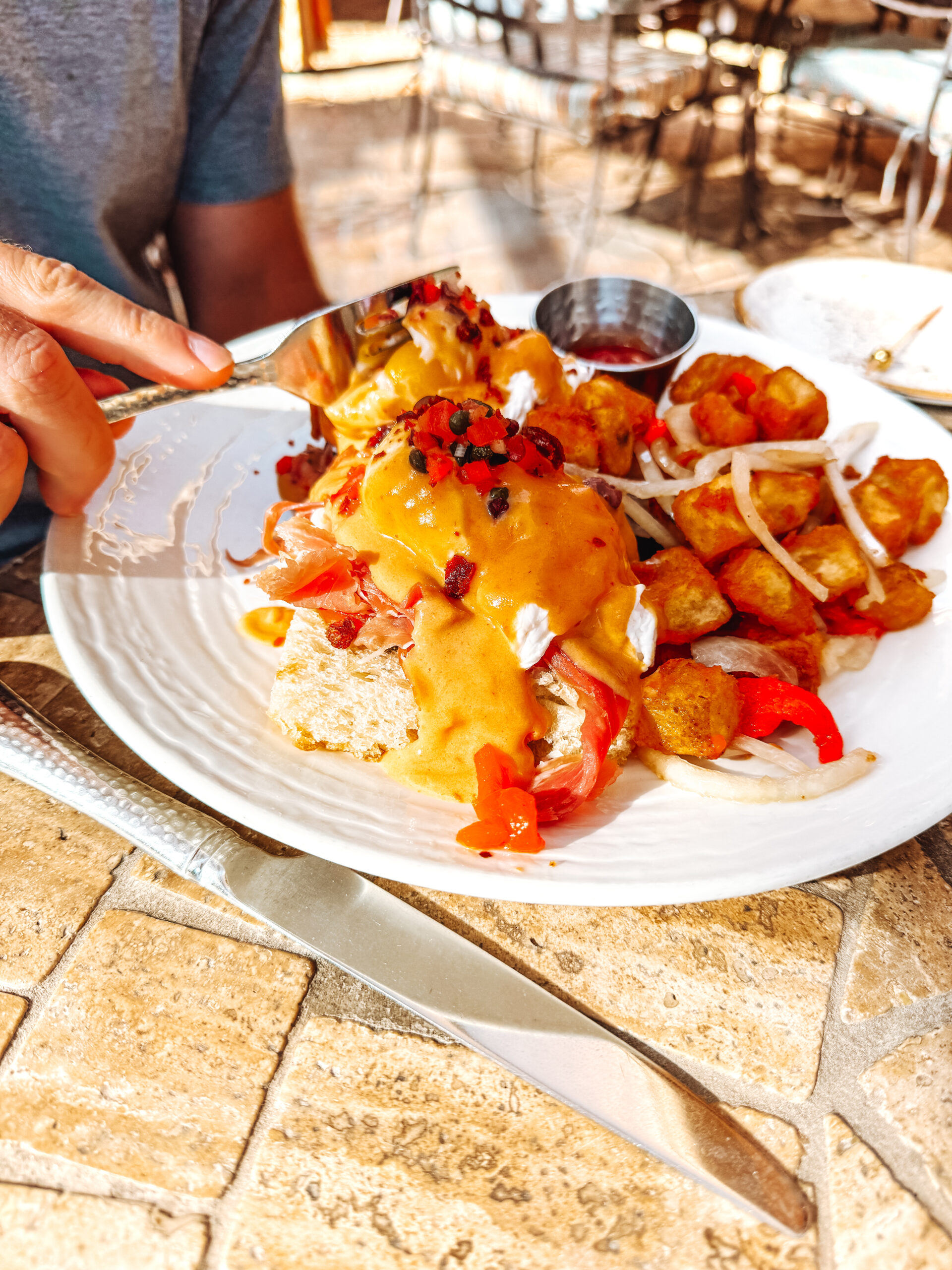 The early morning sun found us awake, though perhaps a tad too early for my liking. Adjusting to the time change, I found so much enjoyment in a quiet moment on the porch with decaf coffee until Chris joined me. Our day began with a delightful breakfast at T Cooks, where I had avocado toast while Chris had the Mediterranean Benedict.