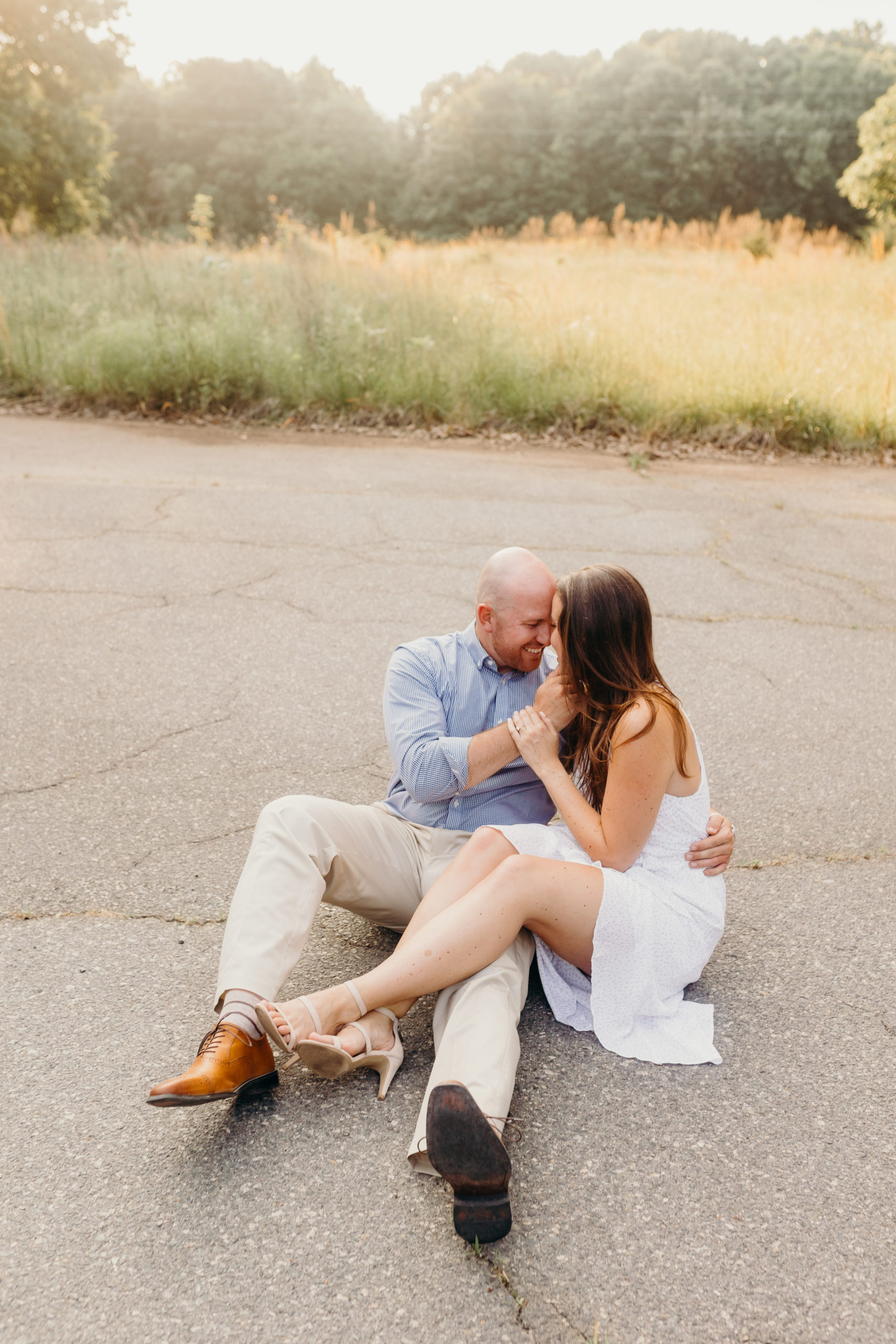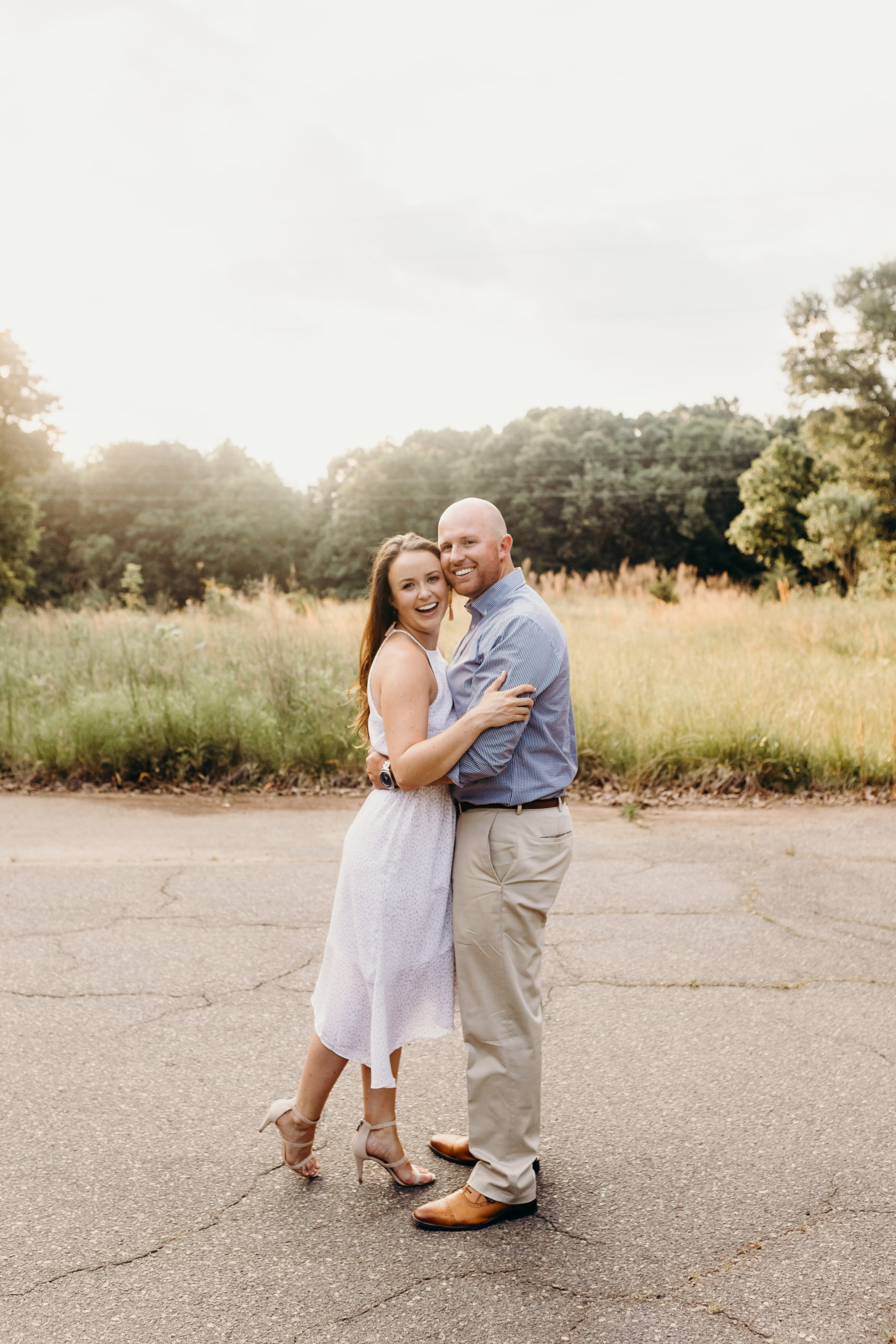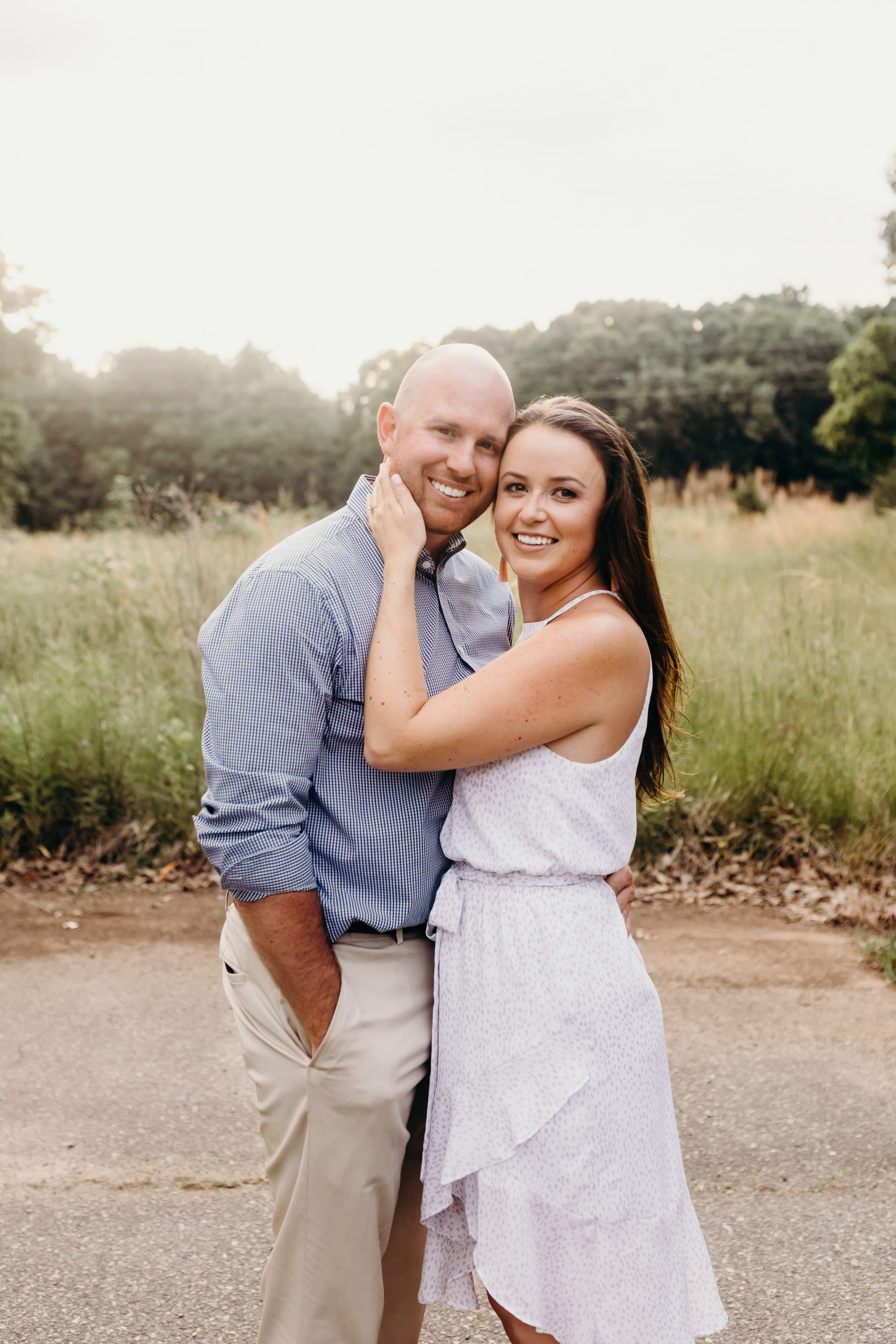 There is a lot of history with these two families. With their families knowing each other before they were born, it took Courtney’s brother  Curtis introducing them to get them together. Initially Courtney ruled it out, because John was Curtis friend & she wouldn’t be interested. Little did she know while home from college, Curtis convinced her to ride up to the Fire Department where he worked. While chatting with the boys at the station, a car pulls up & out hops John. Who proceeded to cut into the conversations & later introduces himself to Courtney. Followed by Courtney joking that he looked like Kevin (John’s twin brother). The alarm then went off at the station and all the firemen left, leaving just the two of them in the parking lot together.Forcing them to hang out & the rest is history. They have been together ever since, & after dates at Coyote Joe’s, traveling to & from High Point to see each other, sushi dates, & years of dating John decided he couldn’t see life without Courtney.