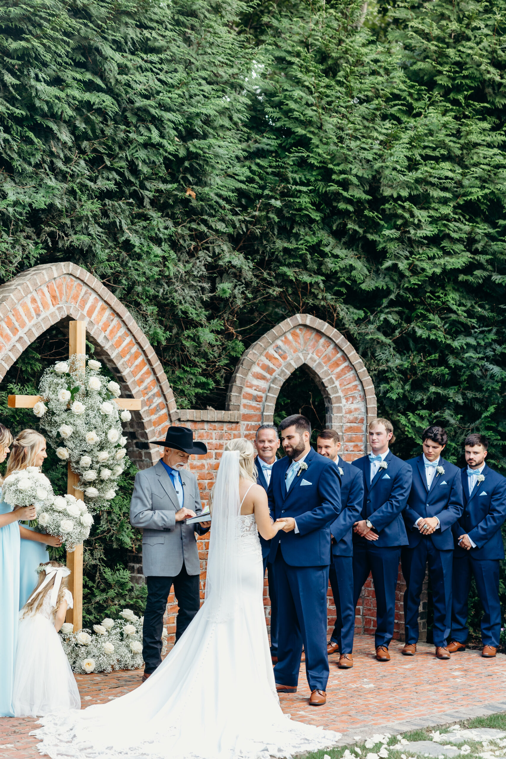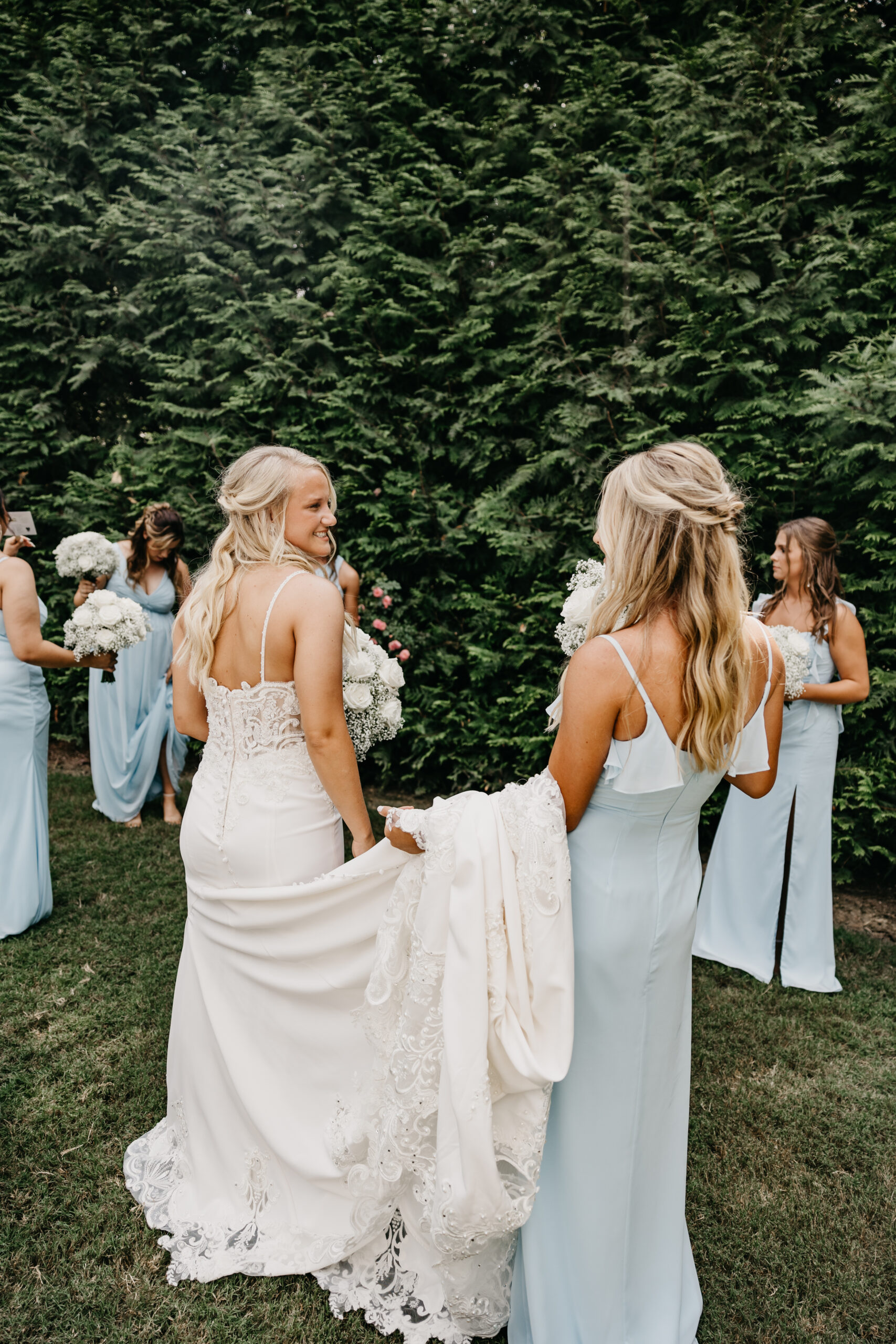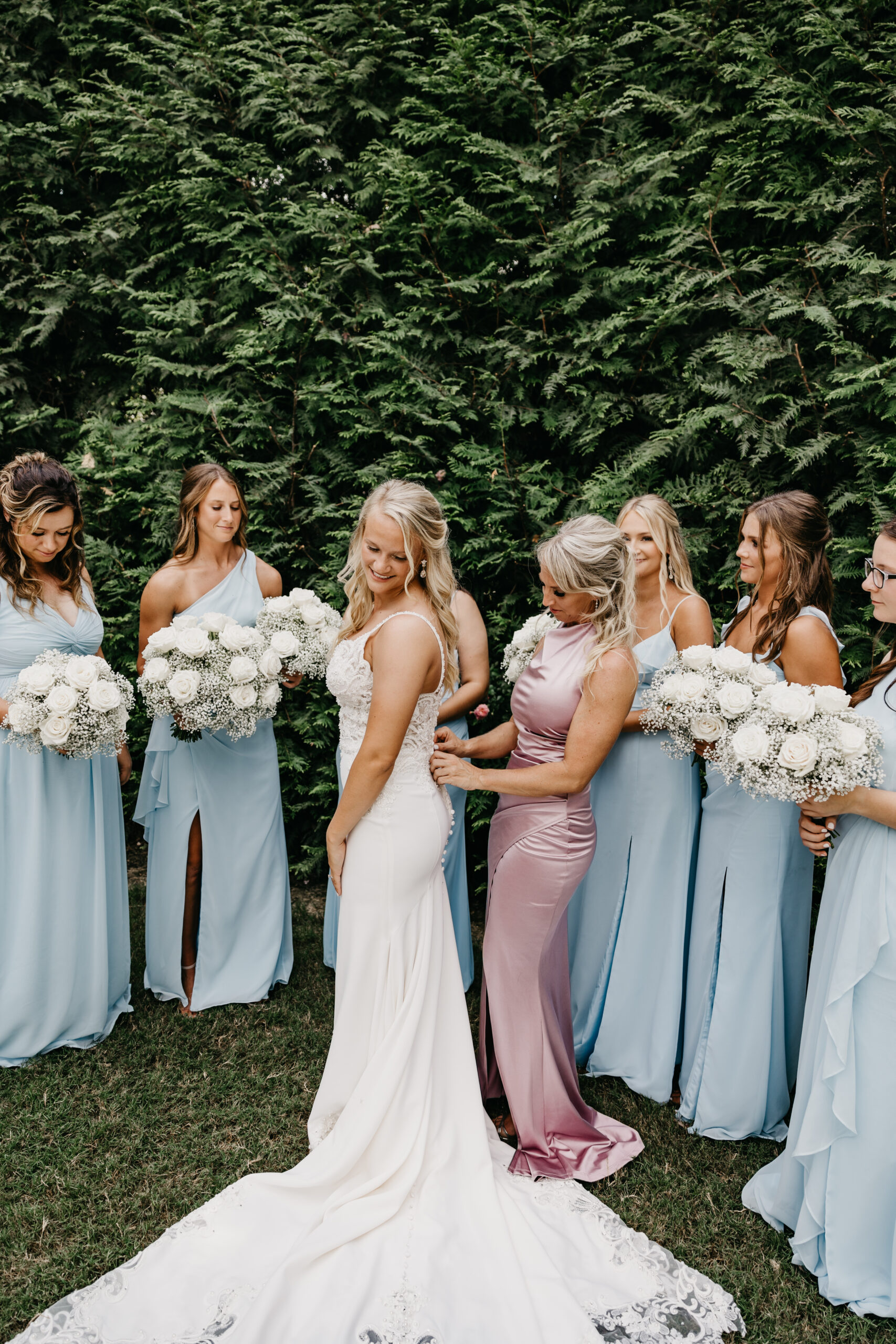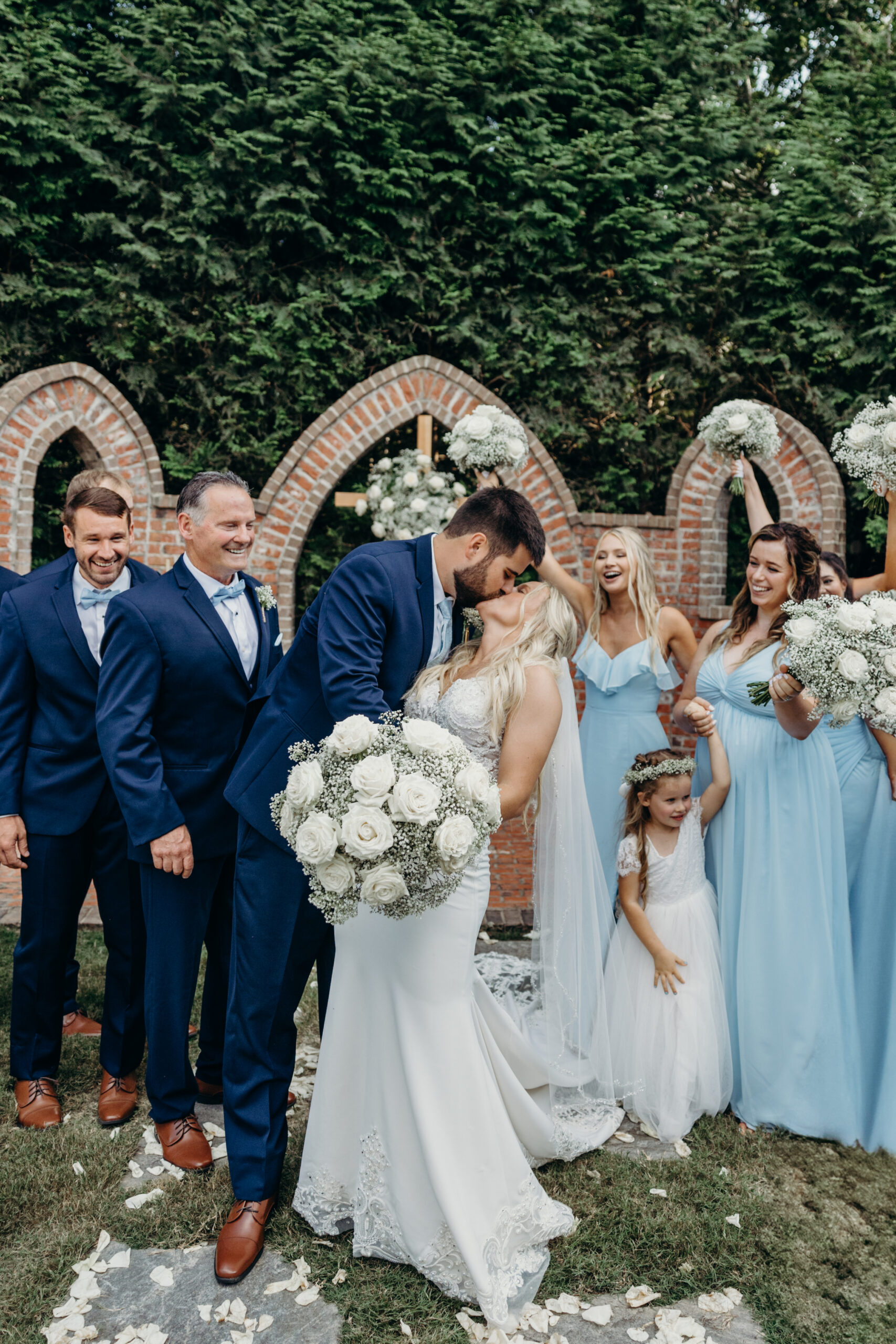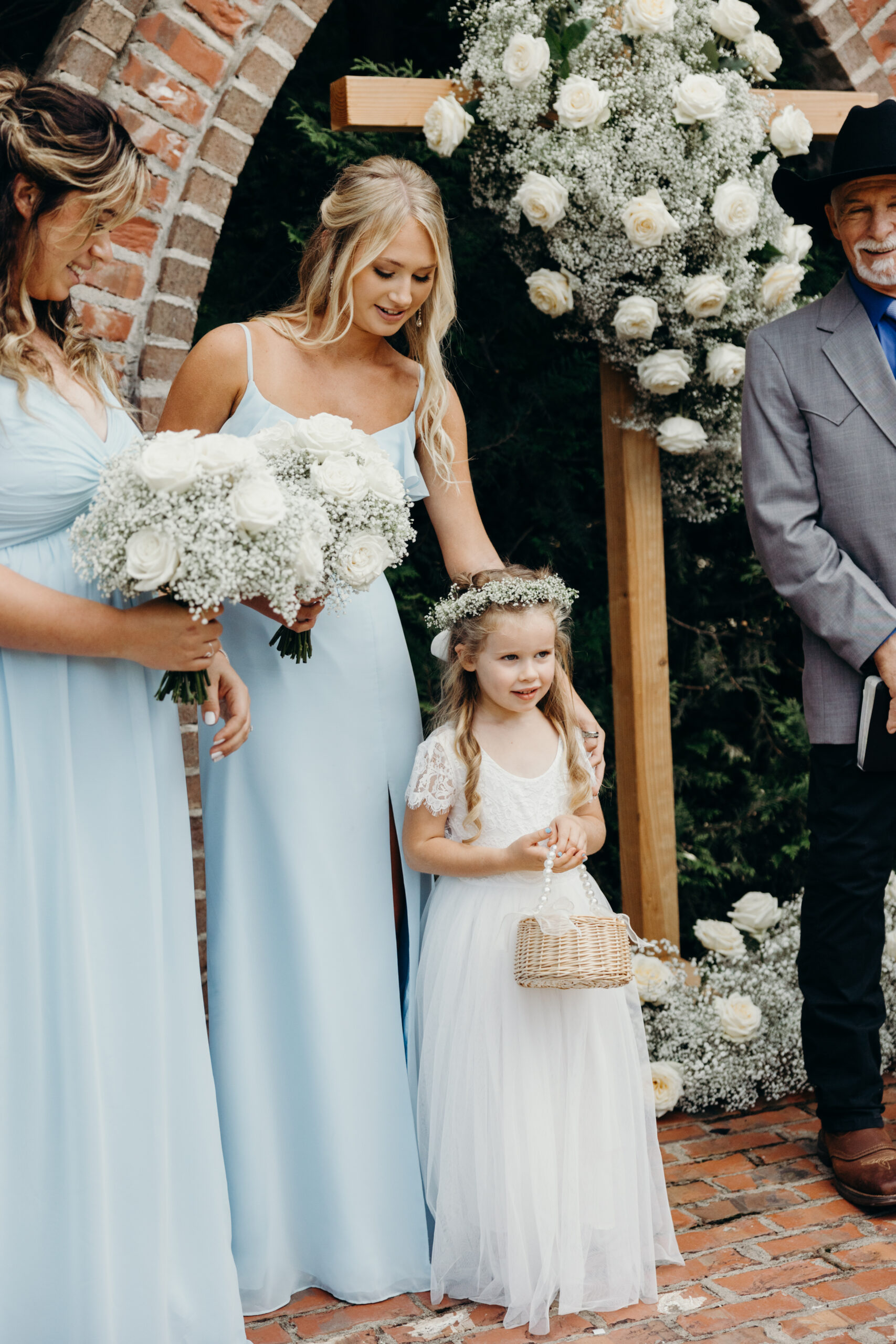 The florals were breathtaking, adding vibrant color and elegance to every part of the celebration. The bridesmaids looked gorgeous in their blue dresses, complementing the summer sky and the overall aesthetic of the day. Braydon, who I’ve had the honor of getting to know throughout this journey, was beaming as he watched Briana walk down the aisle.