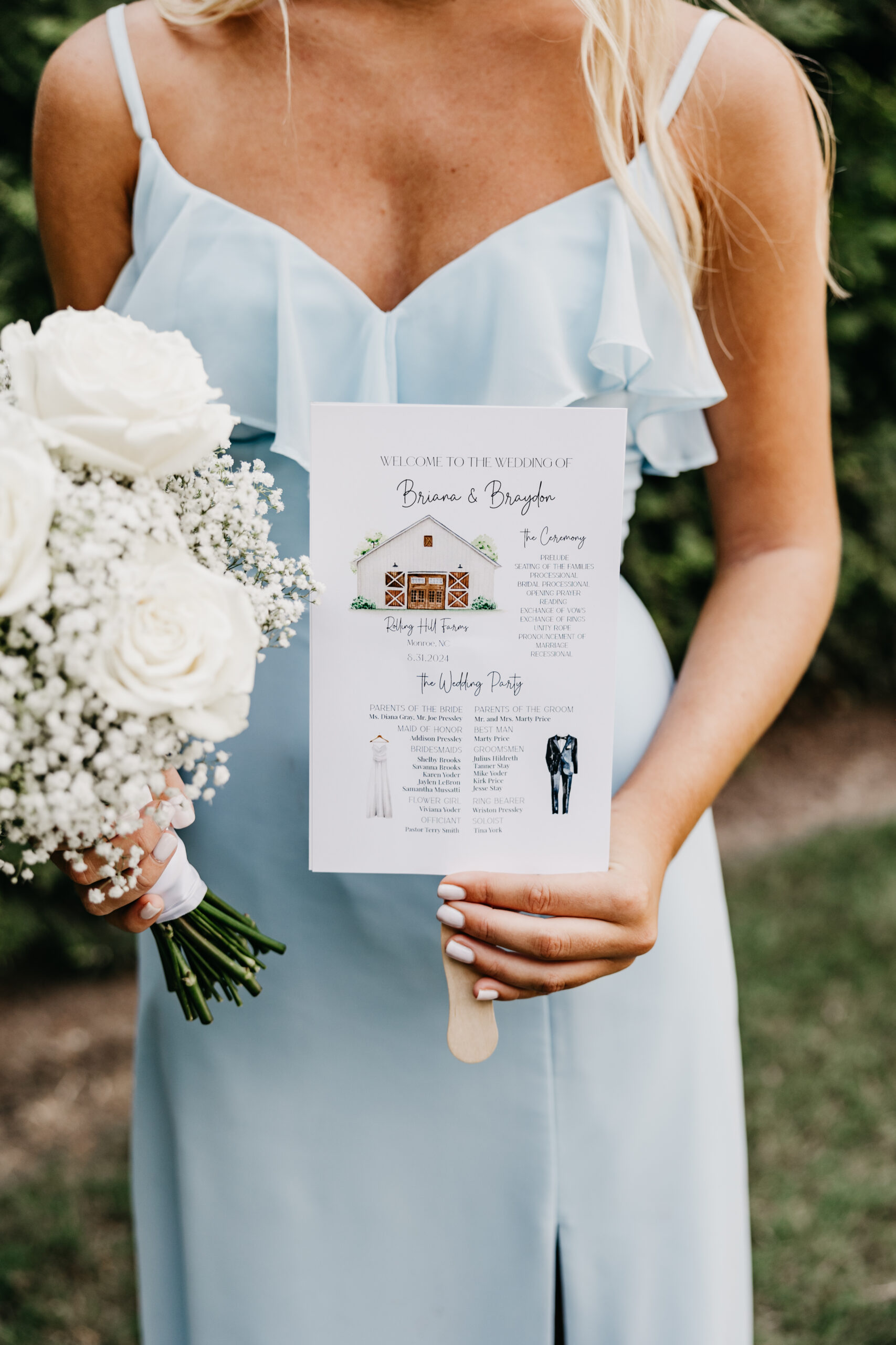 On August 31st, I had the pleasure of capturing Braydon and Briana’s stunning wedding at Rolling Hill Venue in Midland, North Carolina. The day couldn’t have been more perfect—a warm summer afternoon with a gentle breeze and golden sunlight. Brayden and Briana’s love story has been such a joy to document, and their wedding day was a true reflection of their unique personalities and shared passions.