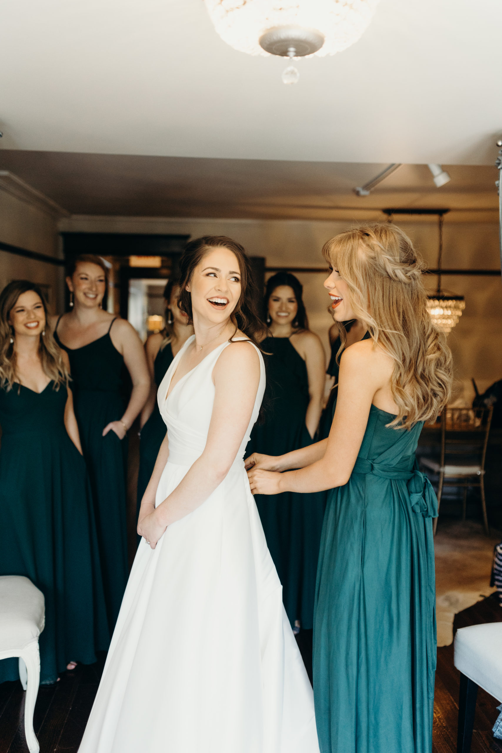 Brandon & Alexis chose the most beautiful color palette with rich green & pops of blush as an accent. This evoked such elegance that looked perfectly intentional yet totally effortless. The organic floral design was one of the highlights of the day, featuring lots of lush greenery. Altogether, the details were visually captivating. But none as much as Alexis’s bridal look, which featured the most stunning gown. Her bridesmaids were so full of emotion when they saw Alexis get into her dress for the first time. This will be a moment that is remembered forever.