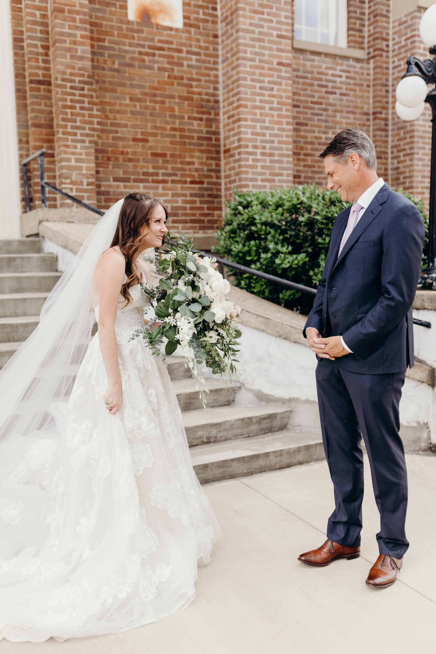 Austin & Anna chose the most beautiful Summer color palette with blush & lots of lush florals. This evoked such elegance that looked perfectly intentional yet totally effortless. The organic floral design was one of the highlights of the day, featuring lots greenery. Altogether, the details were visually captivating. But none as much as Anna’s glam bridal look, which featured the most stunning gown. Her bridesmaids were so full of emotion when they saw Anna for the first time. This will be a moment that is remembered forever.