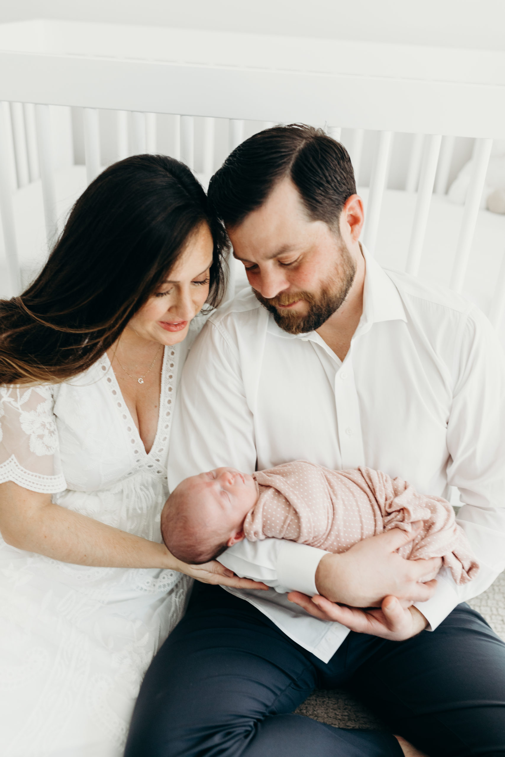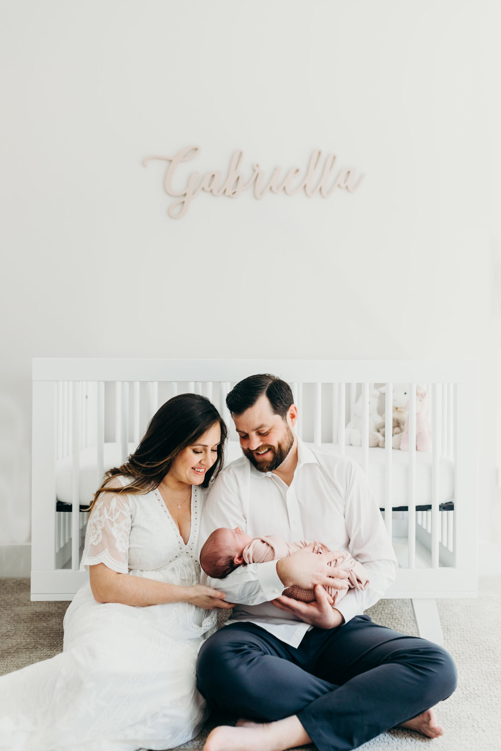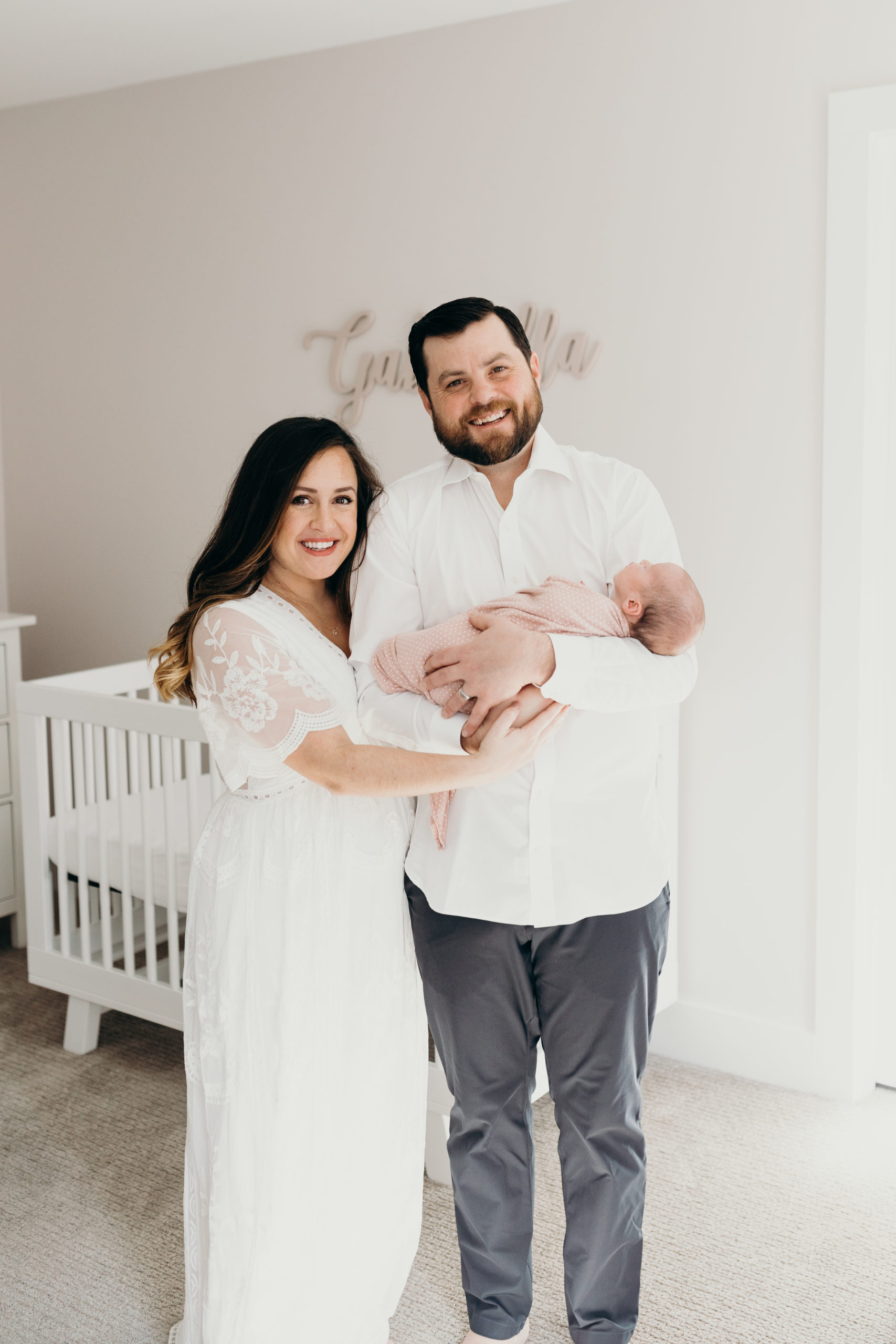 I currently have so many Newborn sessions & it makes my heart so happy. Watching all of my ACP Couples become parents is one of the most exciting parts of my job! Not only are they past clients, but have become such great friends & it truly is an honor. Kevin & Jen welcomed their baby girl Gabriella Nicole into the world February 5th. She made an early entrance, but has been such a little sweetheart since she made her arrival. For their Newborn Session, I met Kevin & Jen at their home in Nashville. Gabby’s Nursery is so cute & is full of everything girly. I love it! She is going to be so spoiled by the two of them & her big sister Olivia!