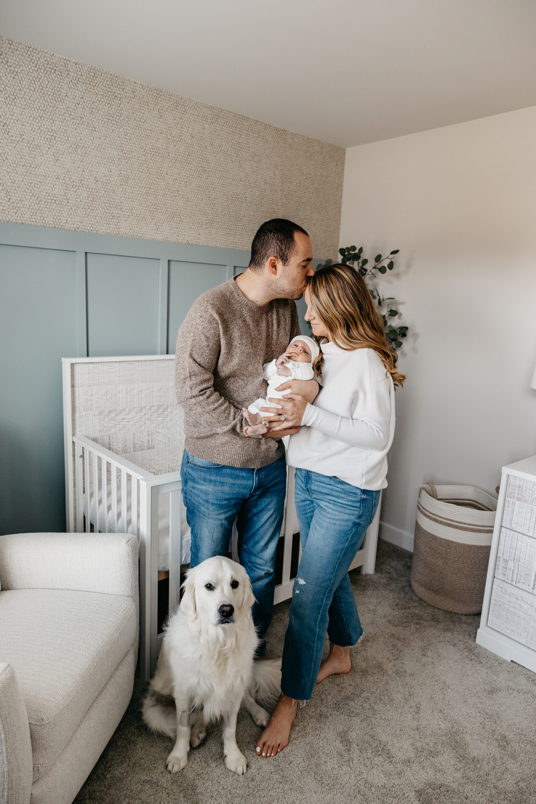 One of the special highlights of this newborn photoshoot was the inclusion of their beloved fur baby, Paisley. A furry member of the family, Paisley added an extra layer of warmth and love to the photographs. This sweet family had to say goodbye to their first baby a few short weeks after the photoshoot, but it was such a memory to get to have her a part of this time & of course meeting her little brother Grayson!