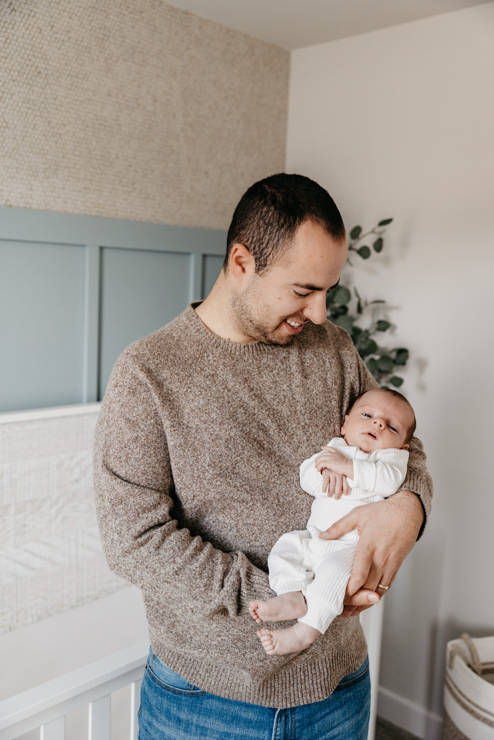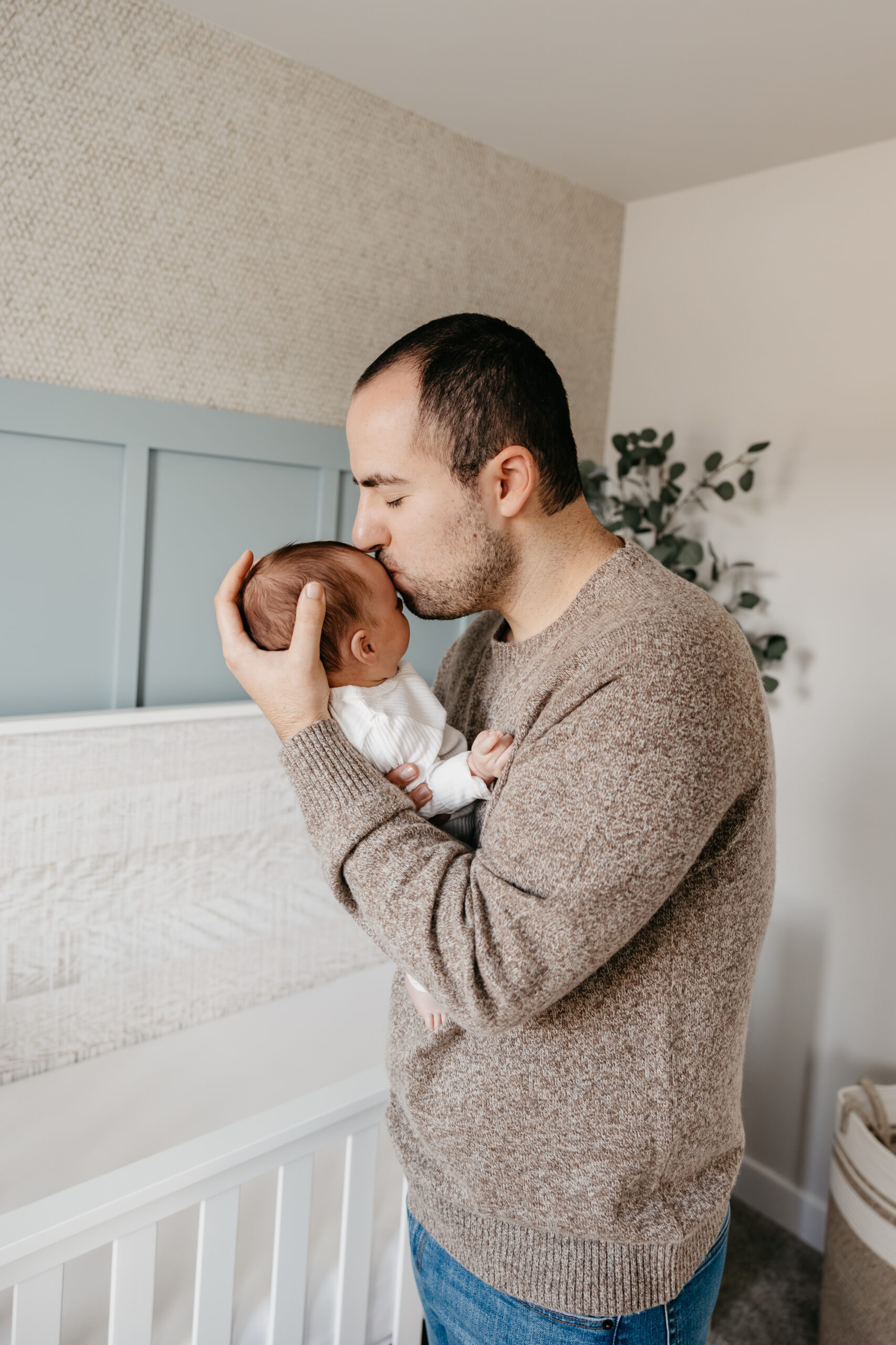Their home was perfect & I couldn’t help but be captivated by the nursery. Bathed in light and adorned with hints of serene blue, the nursery reflected a tranquil haven for baby Grayson. Each corner was carefully designed, creating a space that exuded love and anticipation for the precious moments that awaited the family. The photoshoot beautifully encapsulated the essence of the early days of parenthood – the delicate moments, the loving glances, and the overwhelming joy that accompanies a new life. Newborns feel like a moment frozen in time! As a photographer, it was an honor to witness and document this chapter in their lives, capturing the beauty of beginnings and the resilience of love.