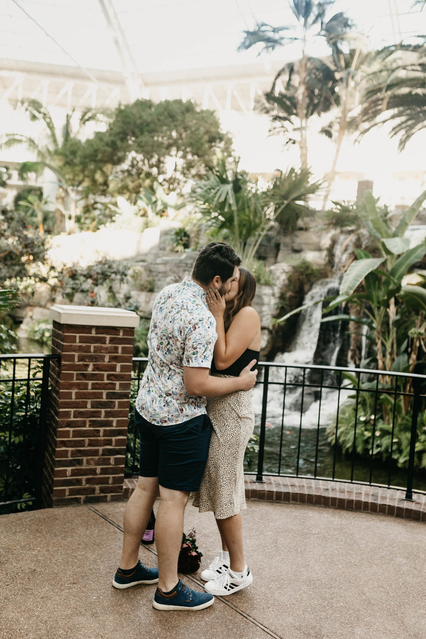 Jarad & Robyn have been together 10 years & Helping him with his proposal was such a great honor, but made it so exciting as well. I spoke to Jarad on Friday the day before, where he planned to explore Opryland and find the perfect spot. We met first thing on Saturday morning where I hid and waited for them to arrive & then Jarad popped the question. We walked through all the gardens inside & explored after their engagement. If you haven’t been here before they are waterfalls & the most beautiful gardens all throughout.
