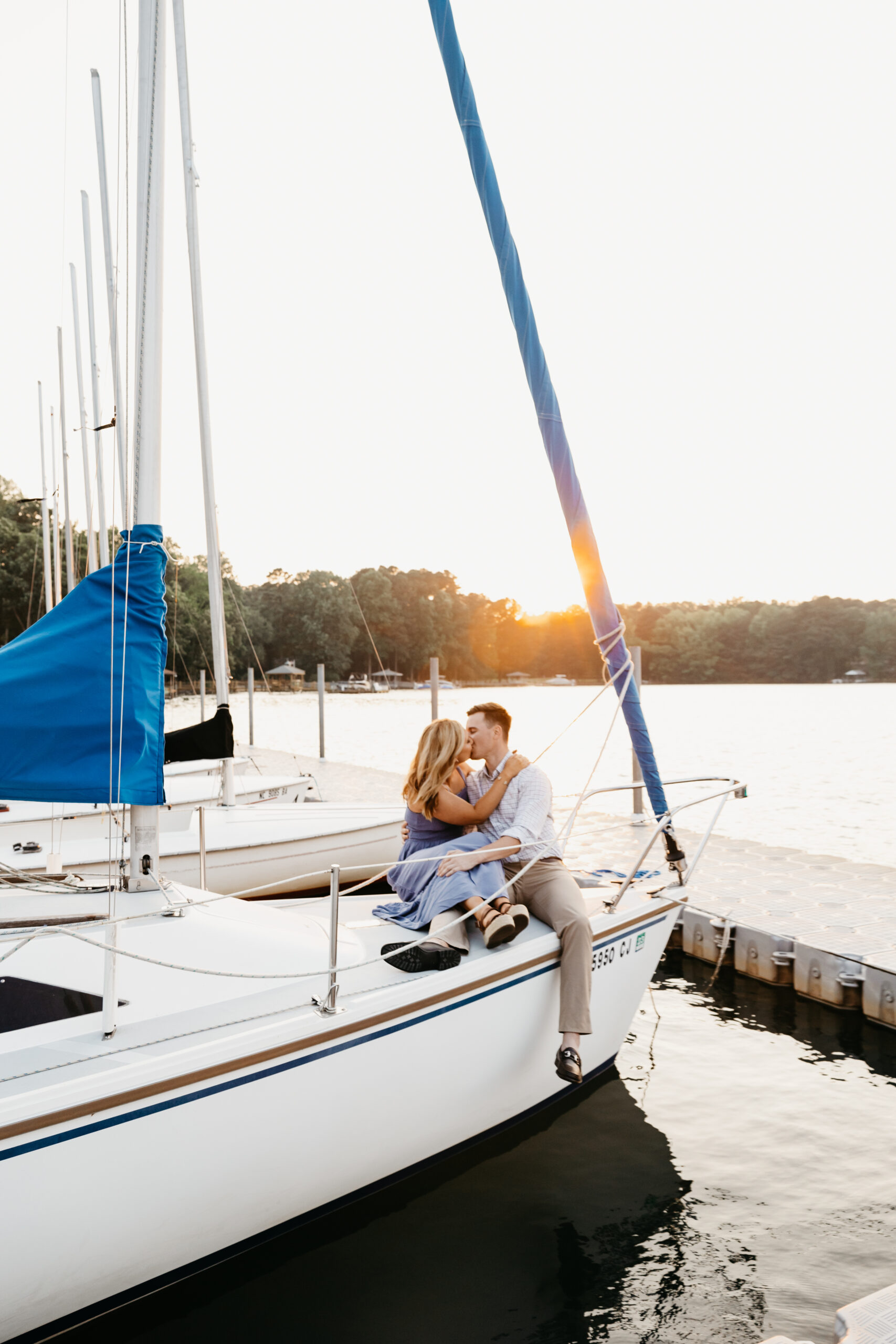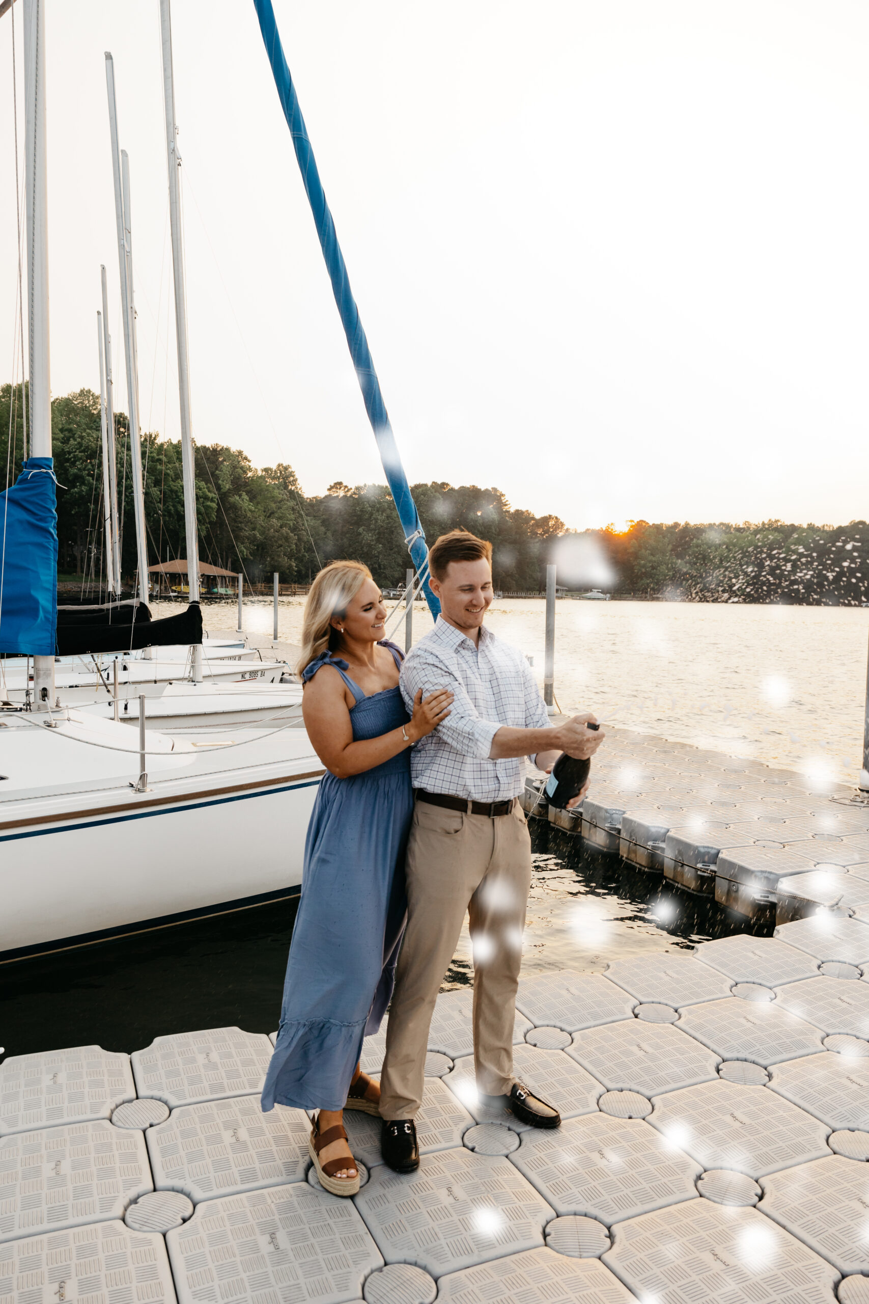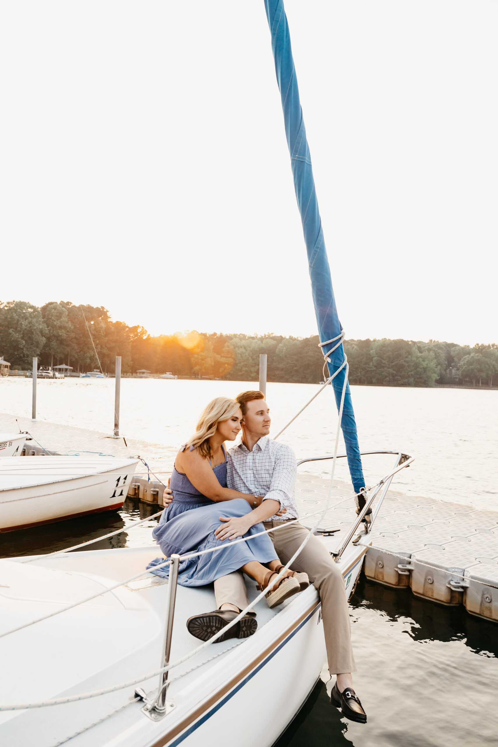 We began our journey in the heart of downtown Davidson, a picturesque town known for its historic charm and vibrant atmosphere. As the sun began to cast its golden rays, Brenden and Olivia strolled hand in hand, emanating pure joy and anticipation. To add a touch of adventure to their engagement session, we decided to venture to Lake Norman. As the sun began to set, casting a warm, golden glow over the water, we created a truly celebratory moment for Brenden and Olivia. A bottle of champagne was popped open, and we spent a little time on some sailboats! Love stories like Brenden and Olivia’s are what make my passion for photography come alive. Each couple brings their unique magic, and I am honored to be able to document these precious moments.