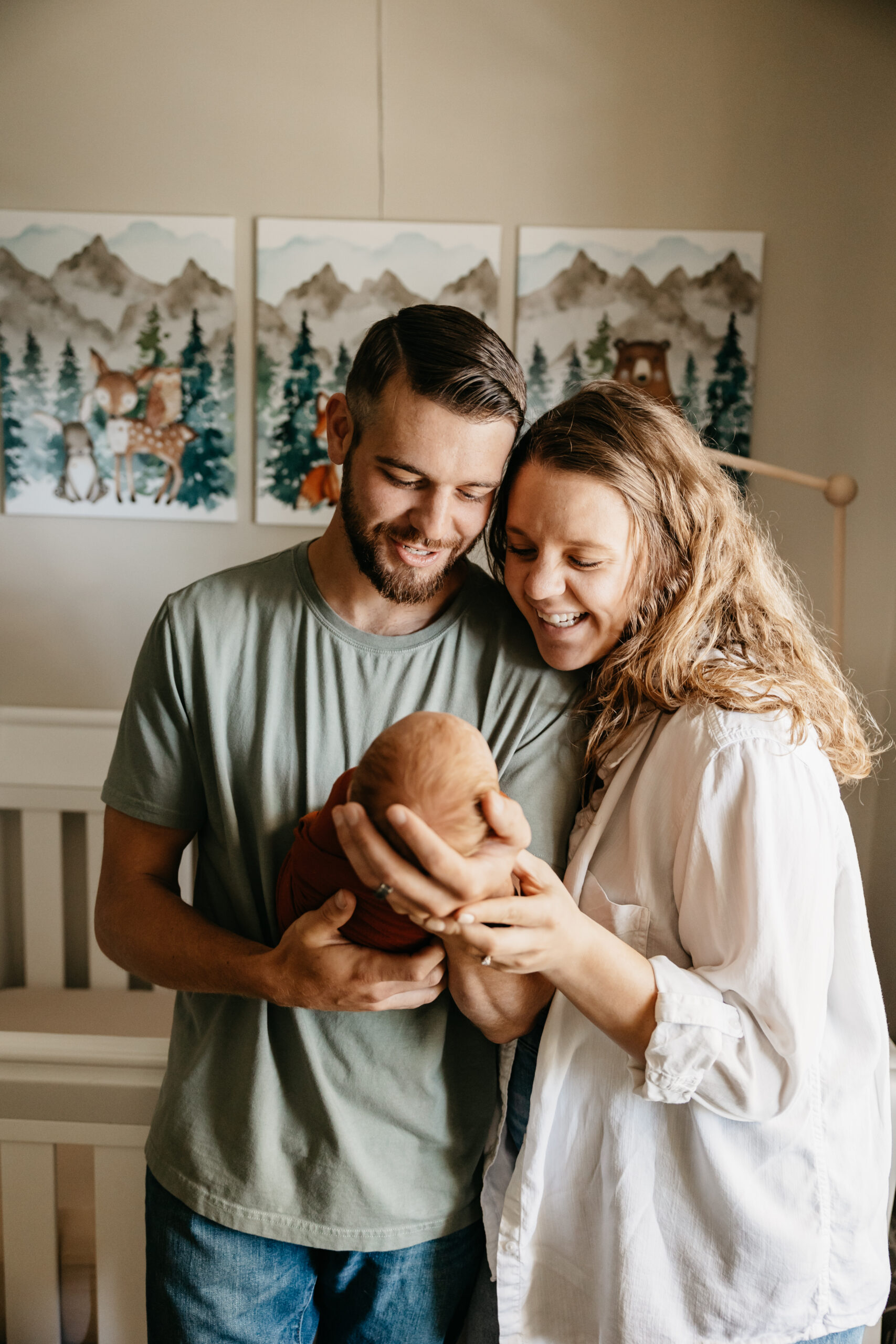 Recently, I had the pleasure of doing a newborn photoshoot at The Lowe’s home in Smyrna. John and Emilee had just welcomed their first baby, Mathias, and he was an absolute delight to photograph. As someone who loves capturing the innocence and beauty of newborns, I was thrilled to have the opportunity to document this special time in their lives. John and Emilee have become great friends of ours, and I couldn’t wait to meet their little bundle of joy. When I arrived at their home, I was greeted by Remy, their adorable dog. He was curious about what was going on and joined us for a brief moment. Their nursery is the perfect woodland them. The room was filled with earthy tones and forest-inspired decor. It was clear that John and Emilee had put a lot of thought and effort into creating a peaceful and serene environment for their little one.