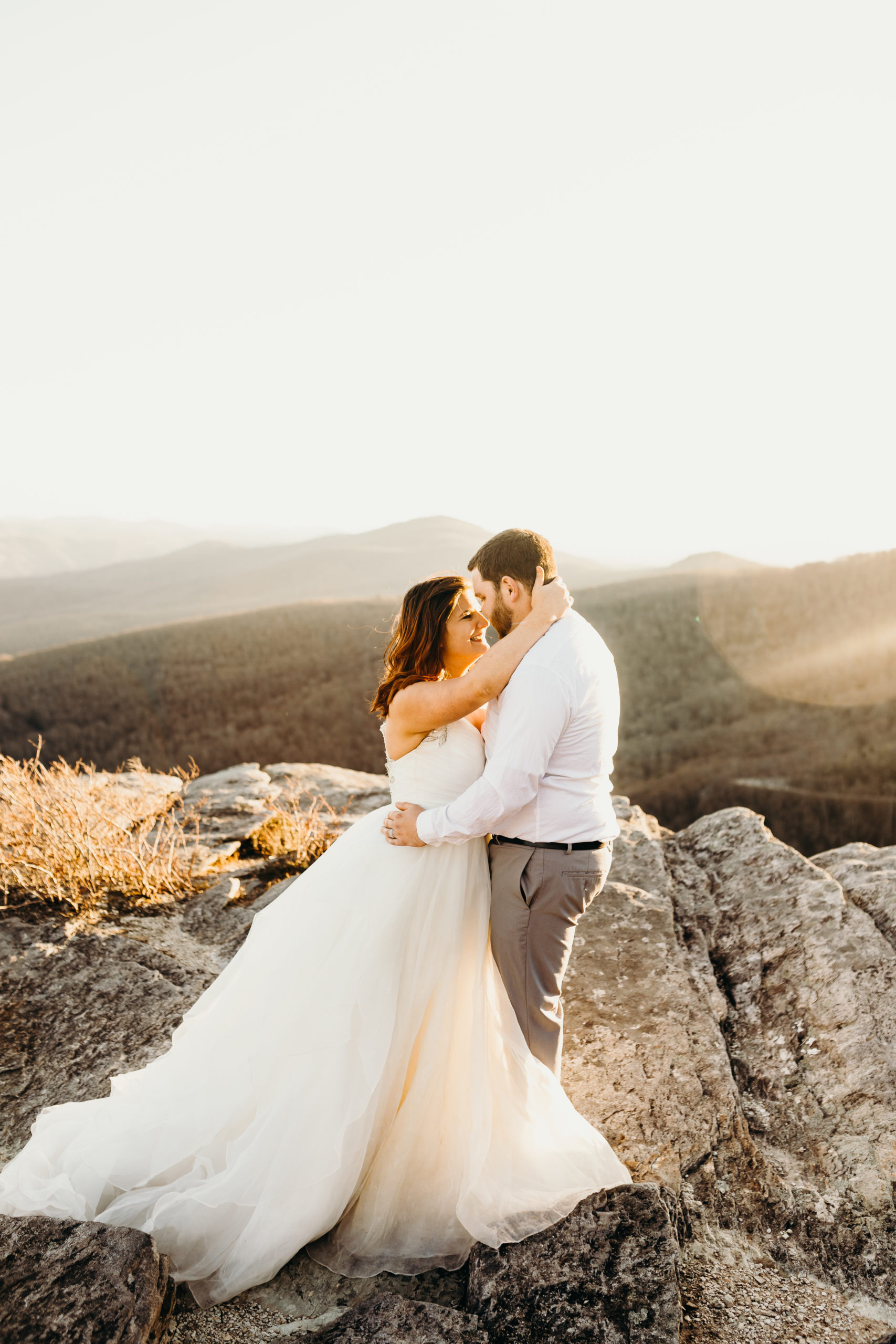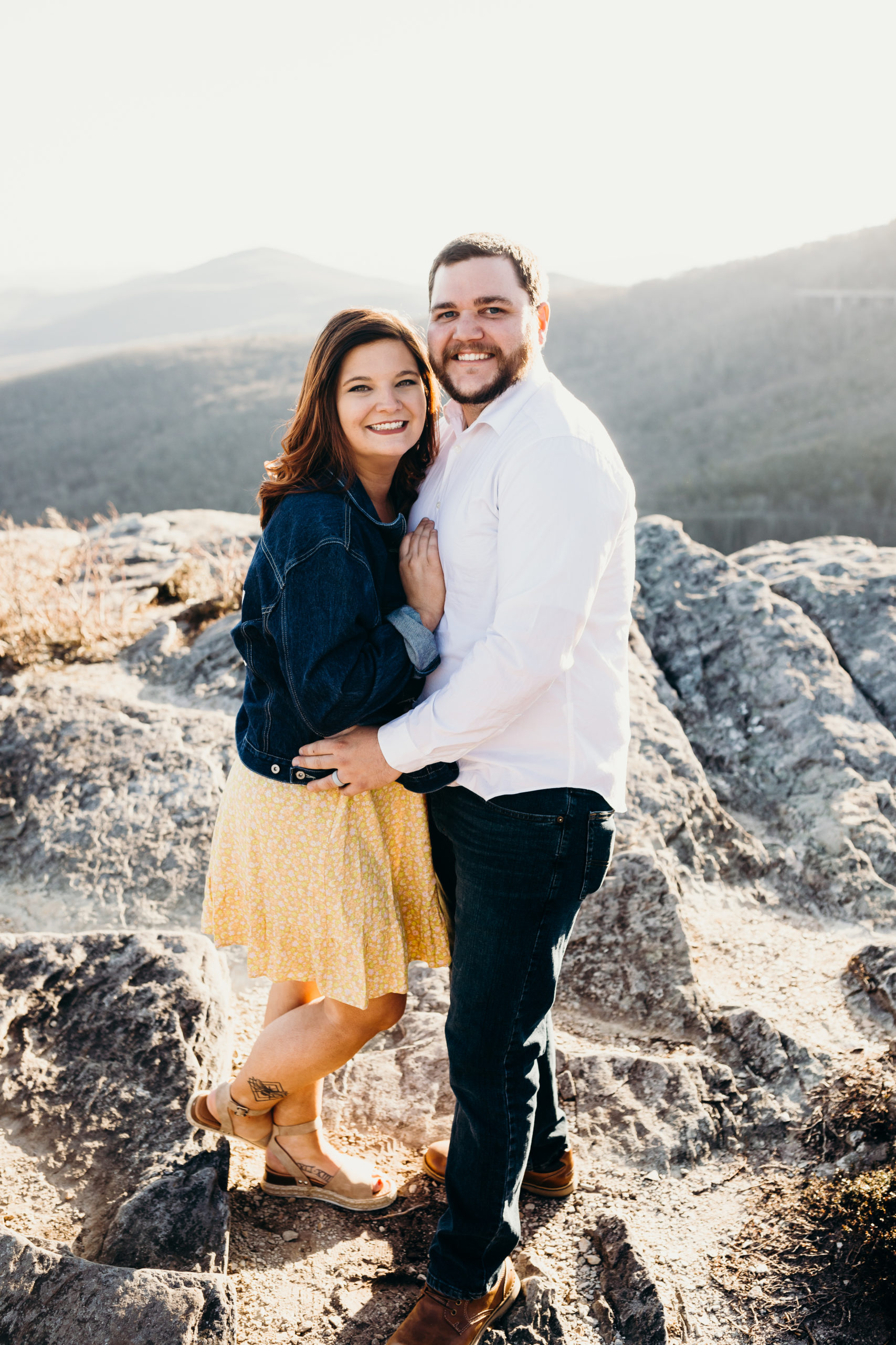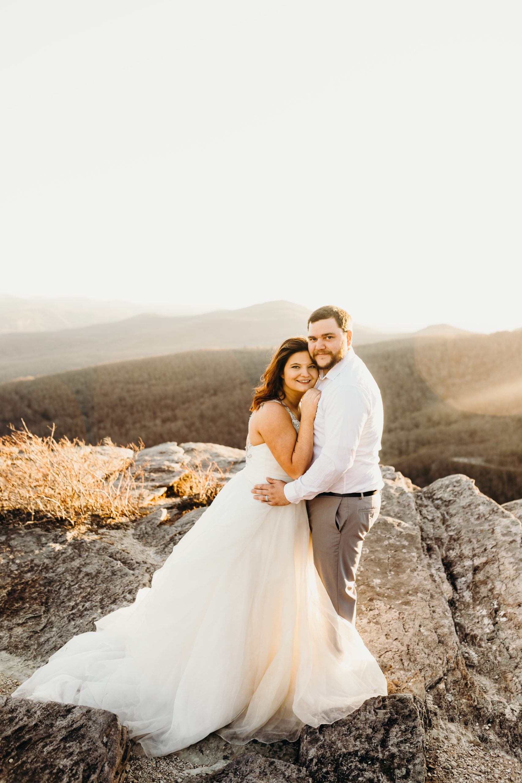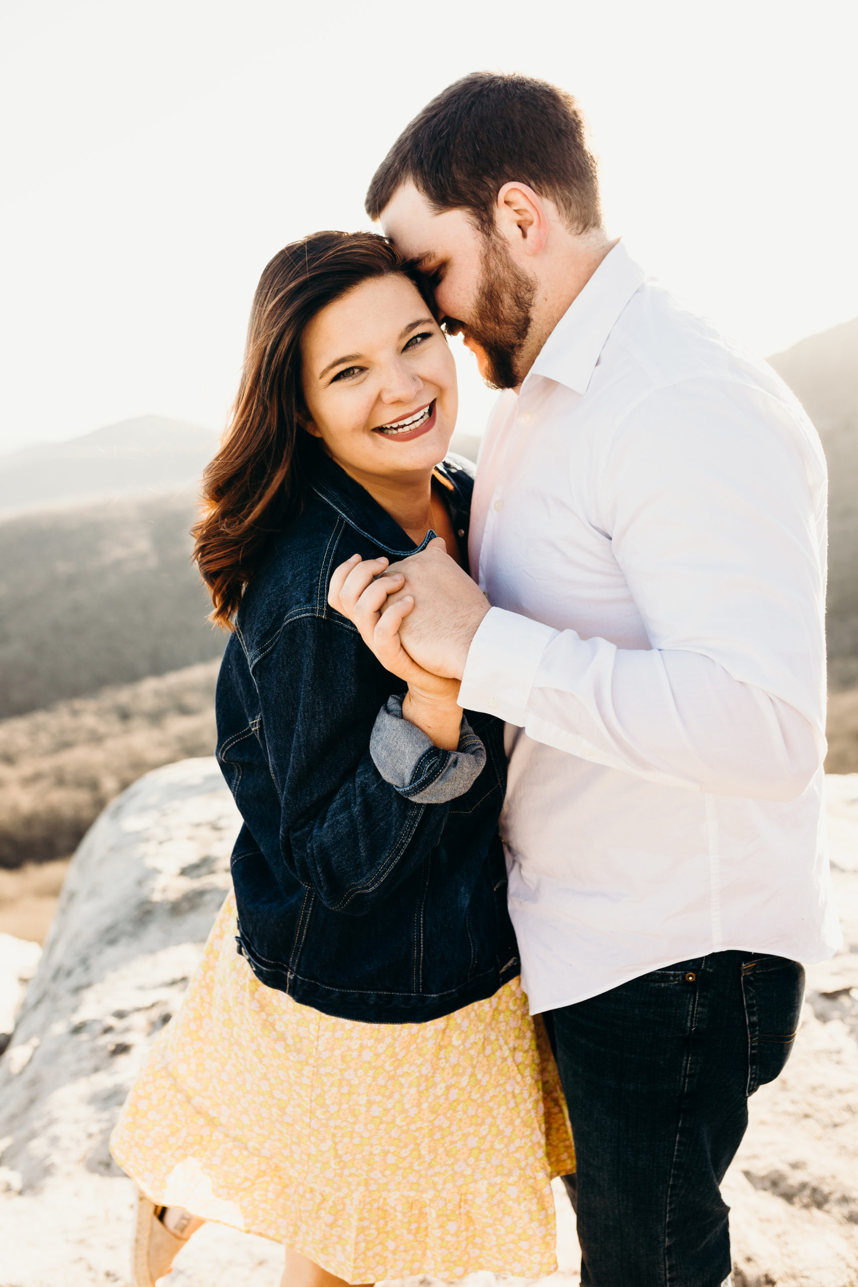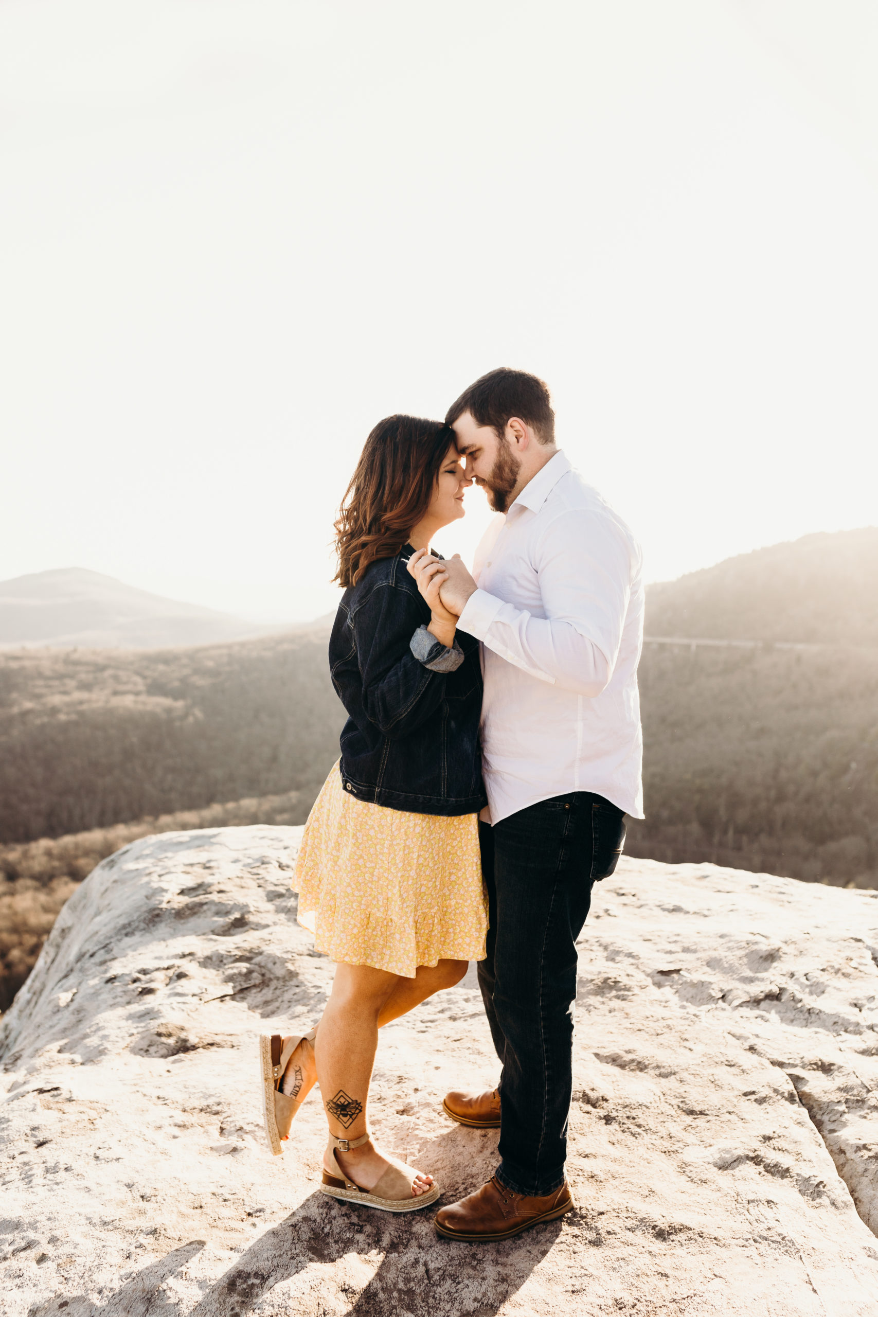 Jacob & Alex got married at the end of 2019 & it was always the dream to get back to the place they met to celebrate their love story. They met while working at the beloved Jimmy Johns in Boone, North Carolina. Alex knew from the moment that she met Jake that he was going to be her husband. Getting back to Boone to do a photoshoot was so bittersweet. We made the hike up the mountain before sunset & had so much fun with the adventure. Little did we know Jacob was not super fond of heights. He killed it! He was such a trooper & made it through with no complaints at all. I love these two & am so excited to share all of this mountaintop photoshoot with you!