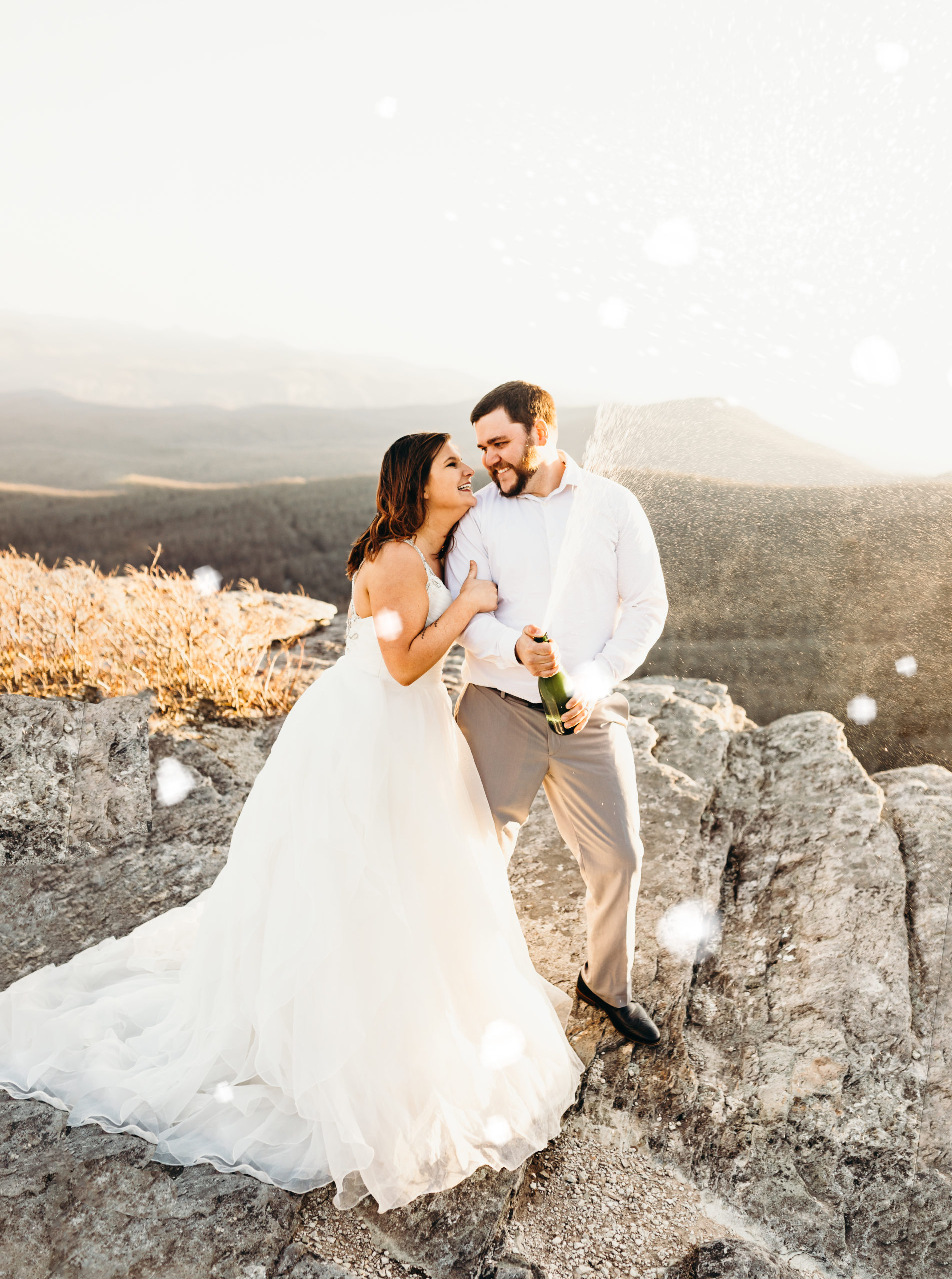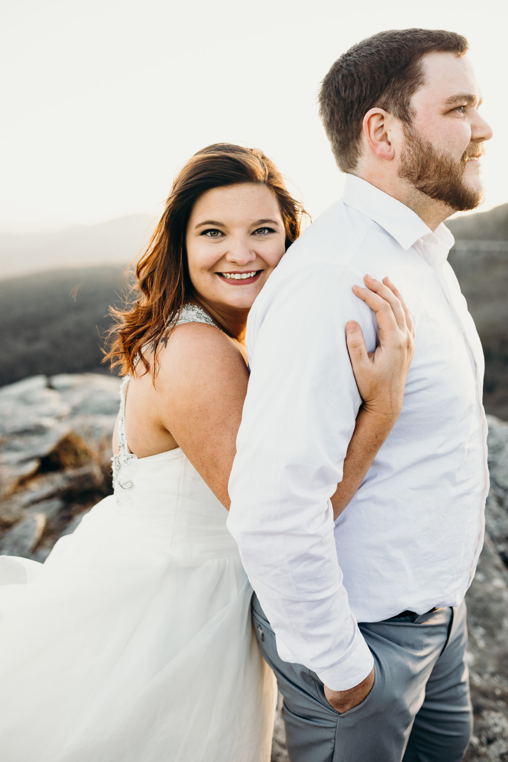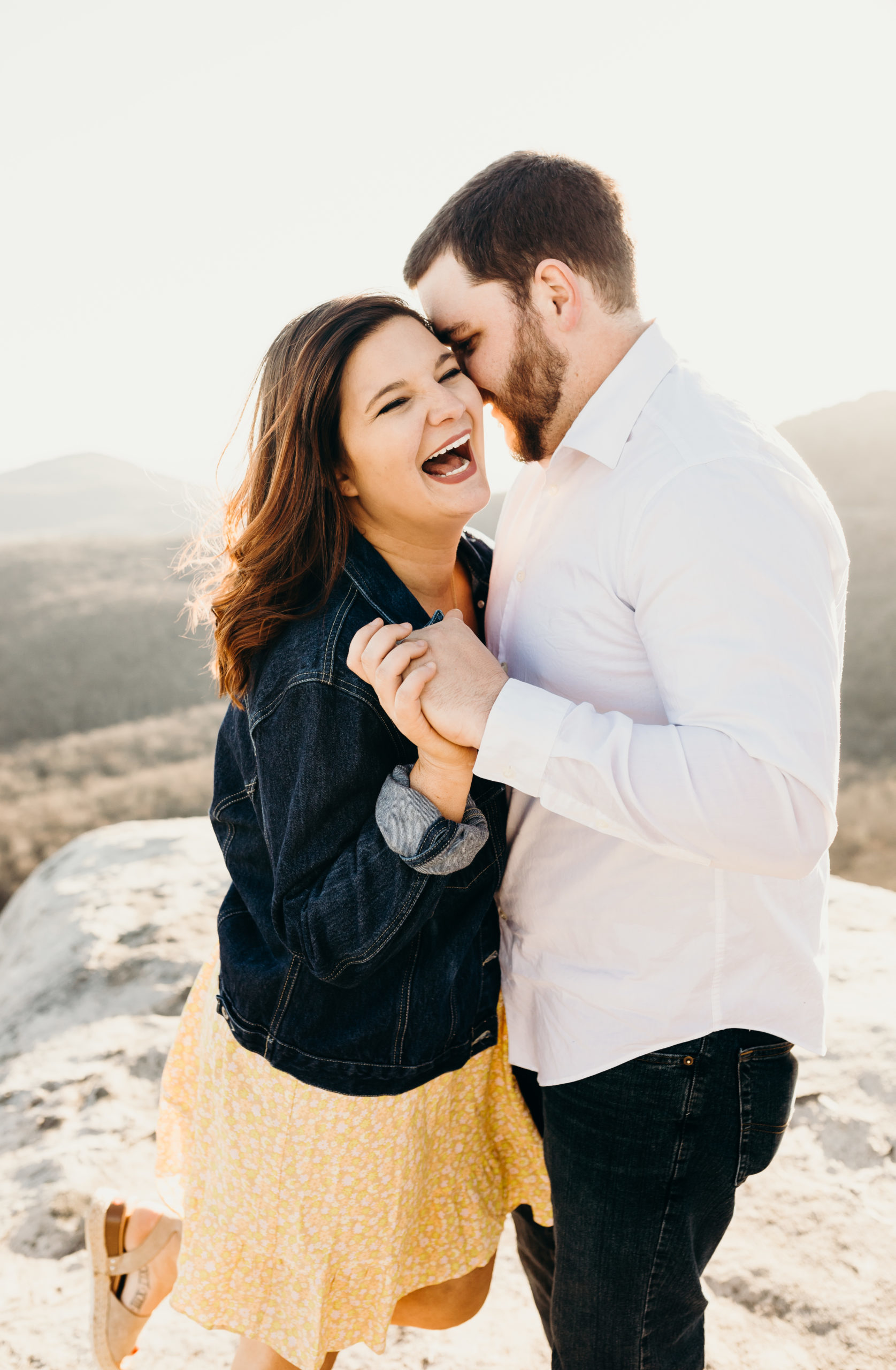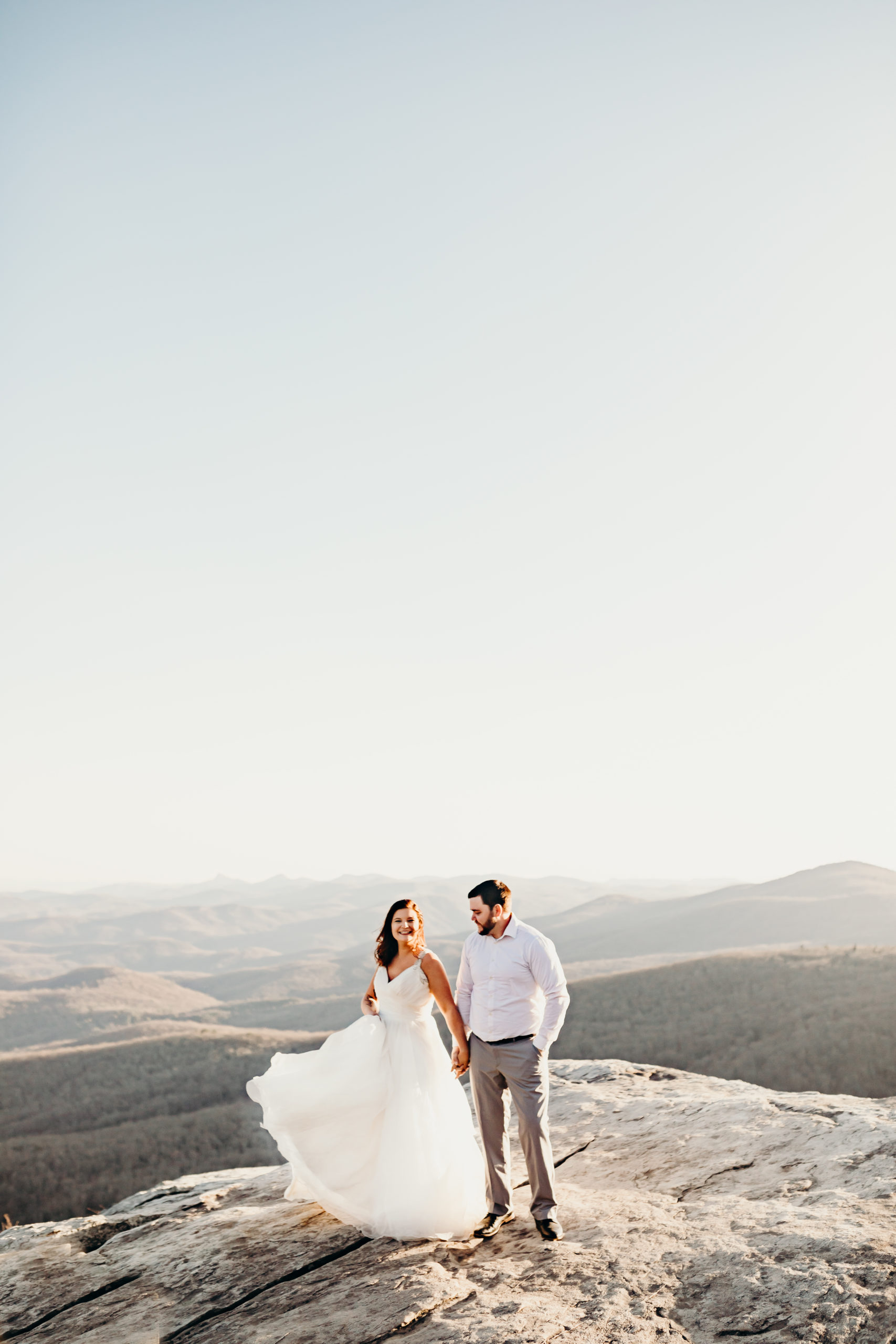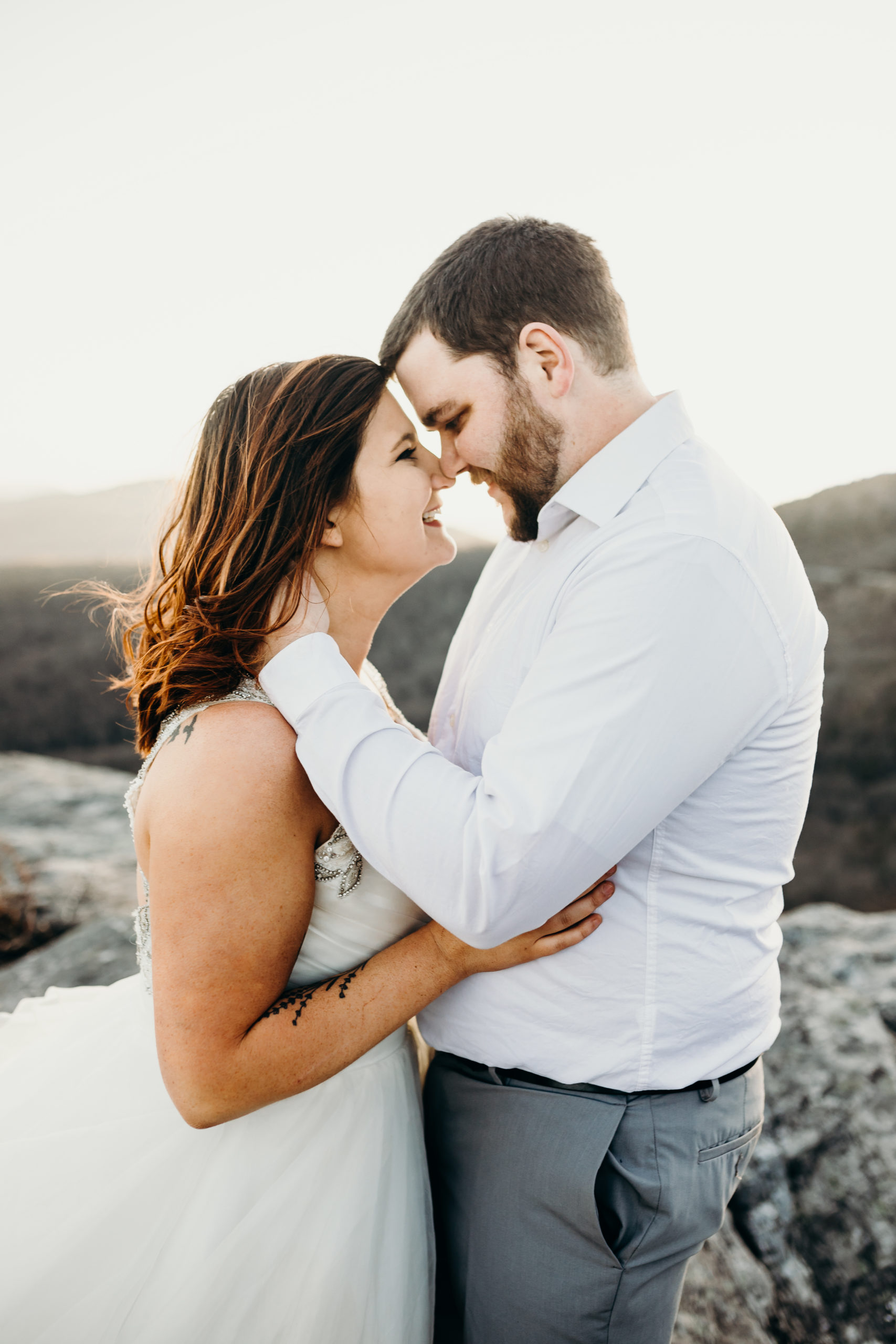 Jacob & Alex got married at the end of 2019 & it was always the dream to get back to the place they met to celebrate their love story. They met while working at the beloved Jimmy Johns in Boone, North Carolina. Alex knew from the moment that she met Jake that he was going to be her husband. Getting back to Boone to do a photoshoot was so bittersweet. We made the hike up the mountain before sunset & had so much fun with the adventure. Little did we know Jacob was not super fond of heights. He killed it! He was such a trooper & made it through with no complaints at all. I love these two & am so excited to share all of this mountaintop photoshoot with you!