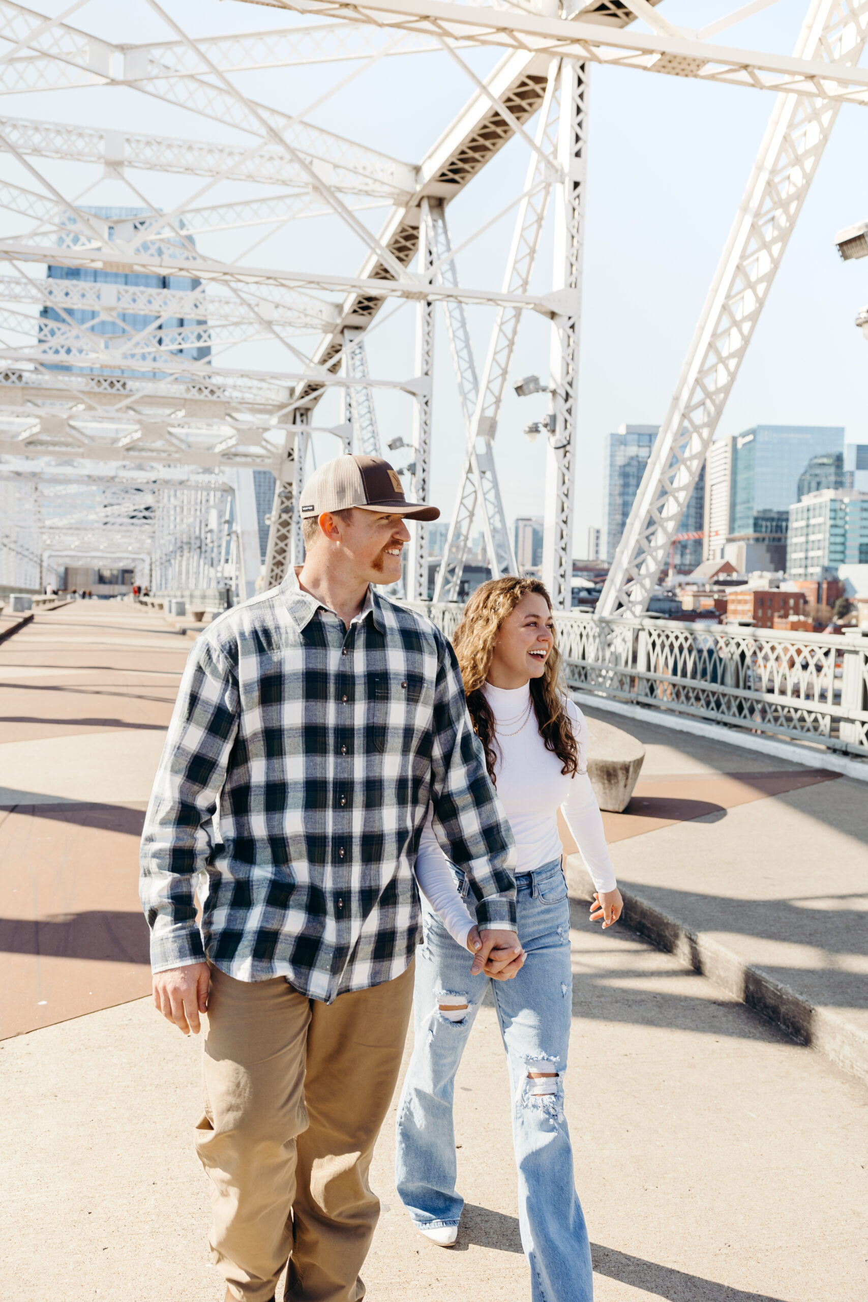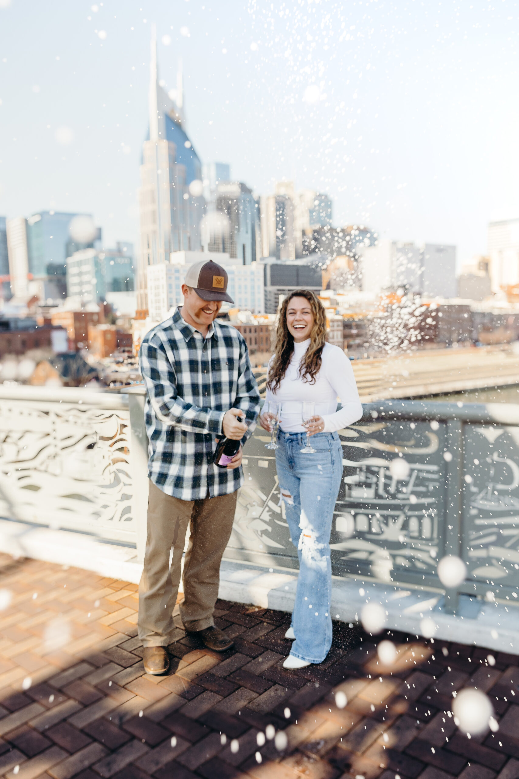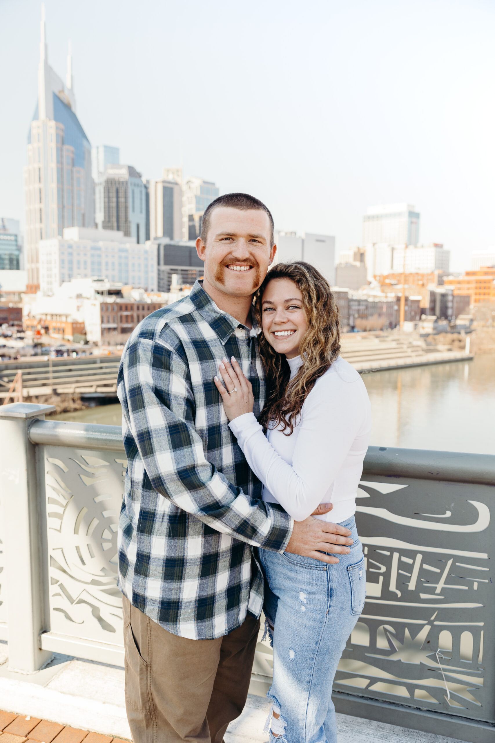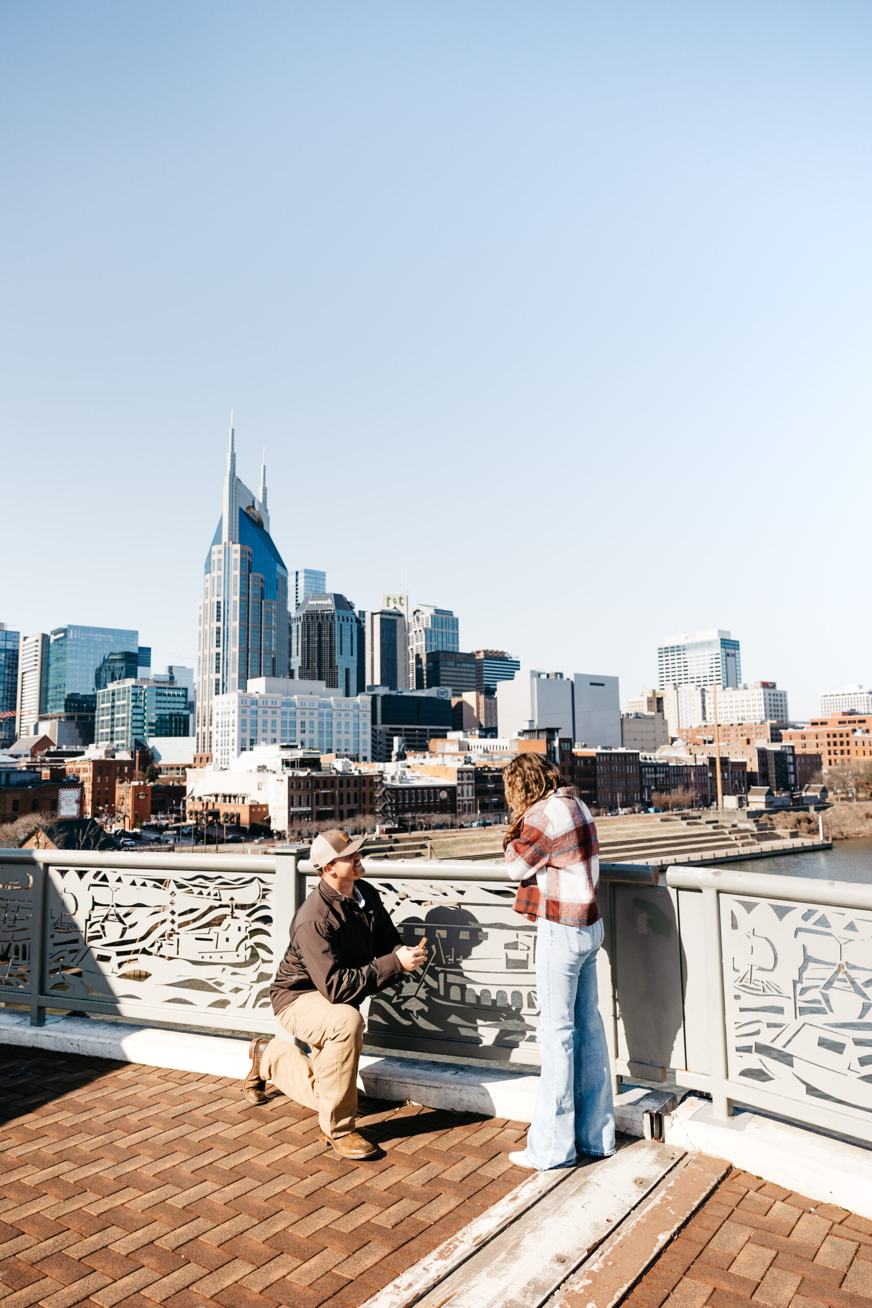 As a photographer, I’ve had the privilege of witnessing and capturing countless moments of love and joy. But few have been so meaningful as Curtis and Jordan’s proposal on the pedestrian bridge in Nashville. This wasn’t just any proposal – it was a culmination of years of love and I am so honor to know them both. You see, Curtis is not just another client to me; he’s family. And Jordan? Well, she’s become like family too over the years. So when Curtis reached out to me about his plans to propose to Jordan during their weekend trip to Nashville, I was overjoyed. This was a moment I knew I had to be a part of.