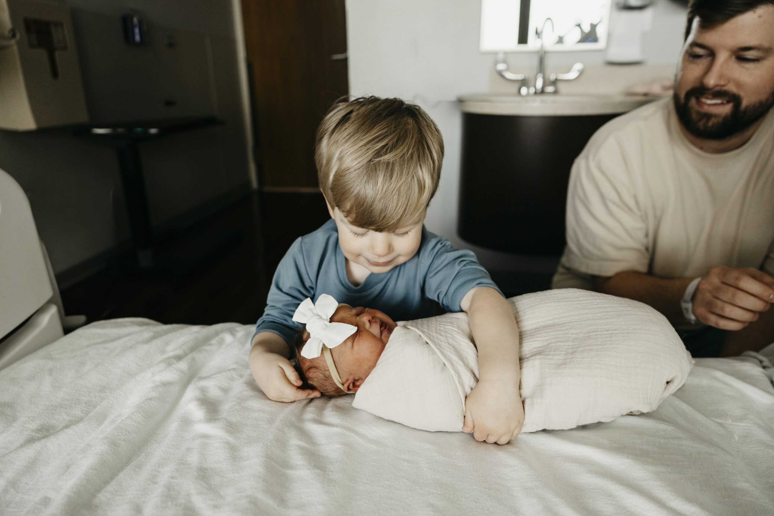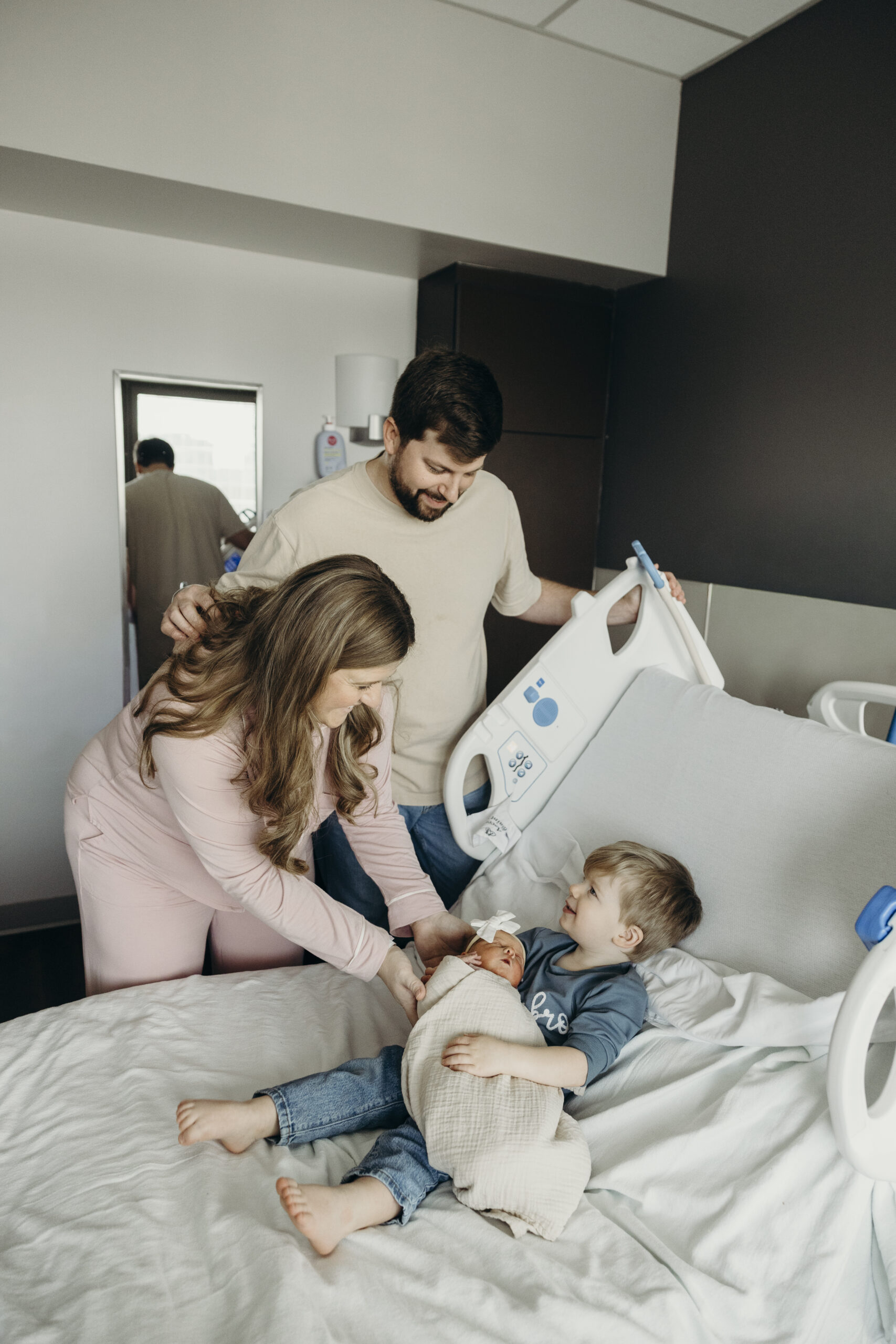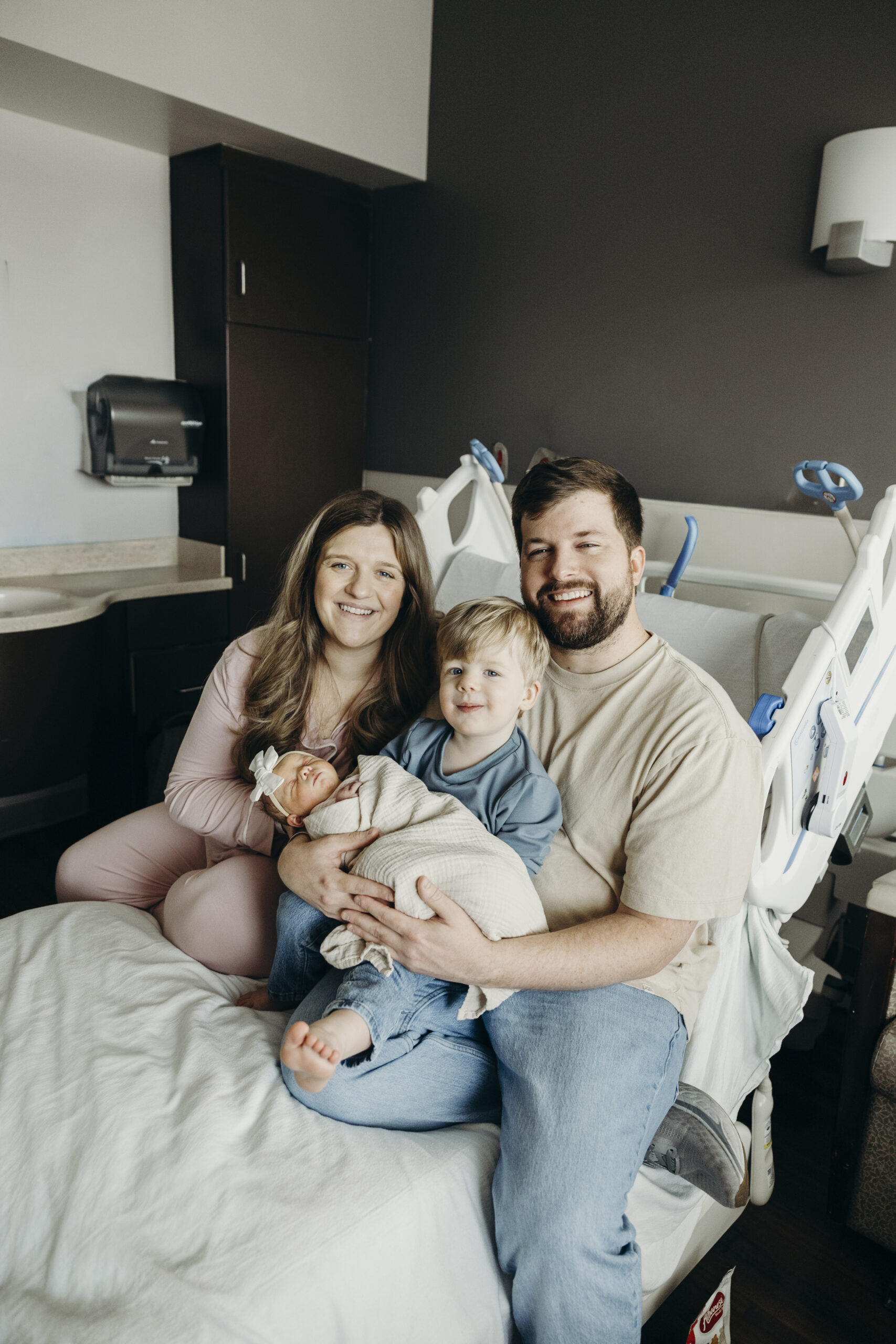 Even more meaningful was watching big brother Brooks step into his new role. The way he gently peeked at his baby sister, held her tiny hand, and proudly showed her off was the sweetest thing. These are the moments that make hospital photos so powerful. The raw emotion, the fresh love, and the quiet in between moments you can never recreate later.