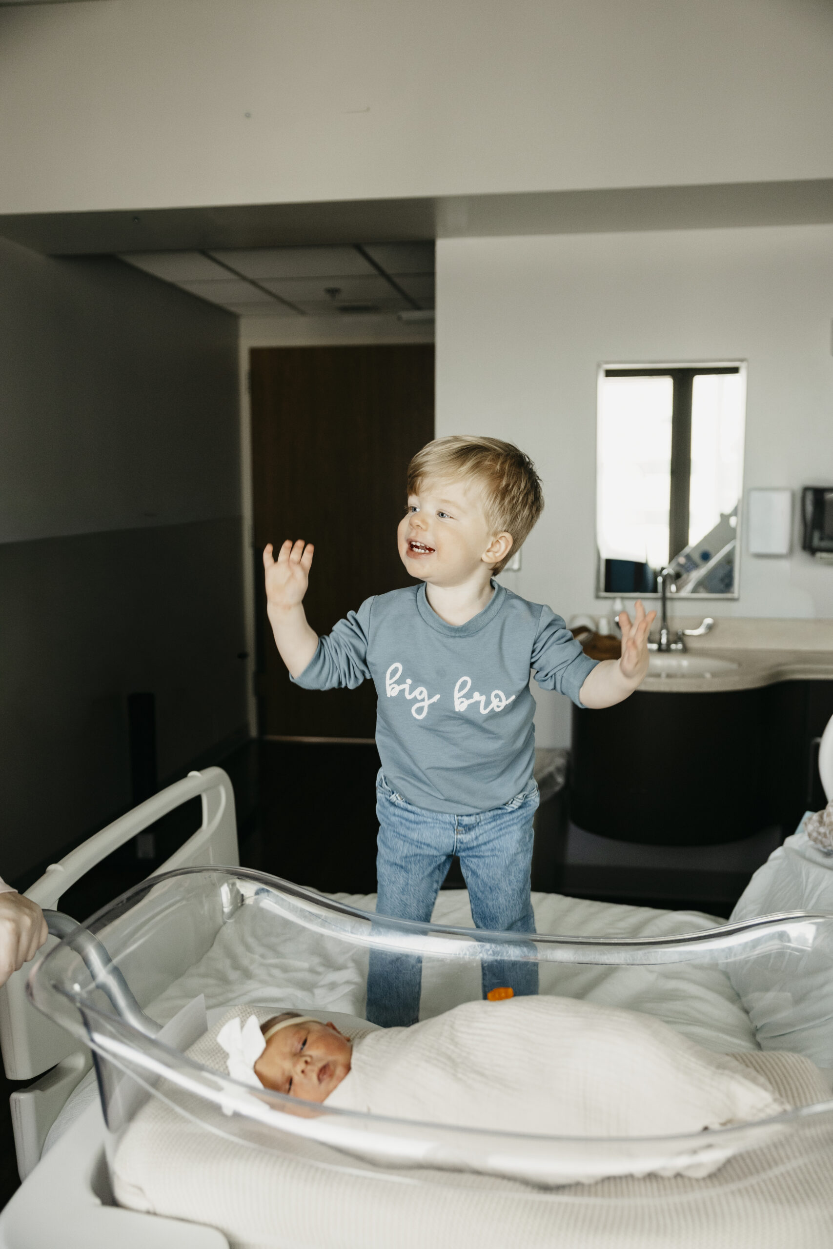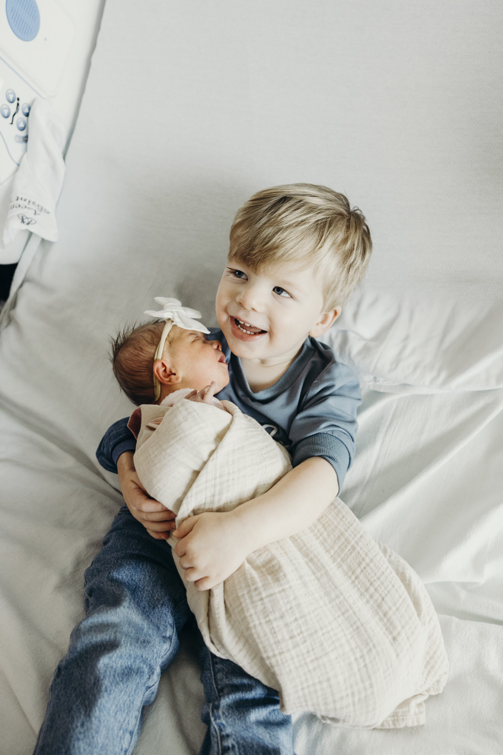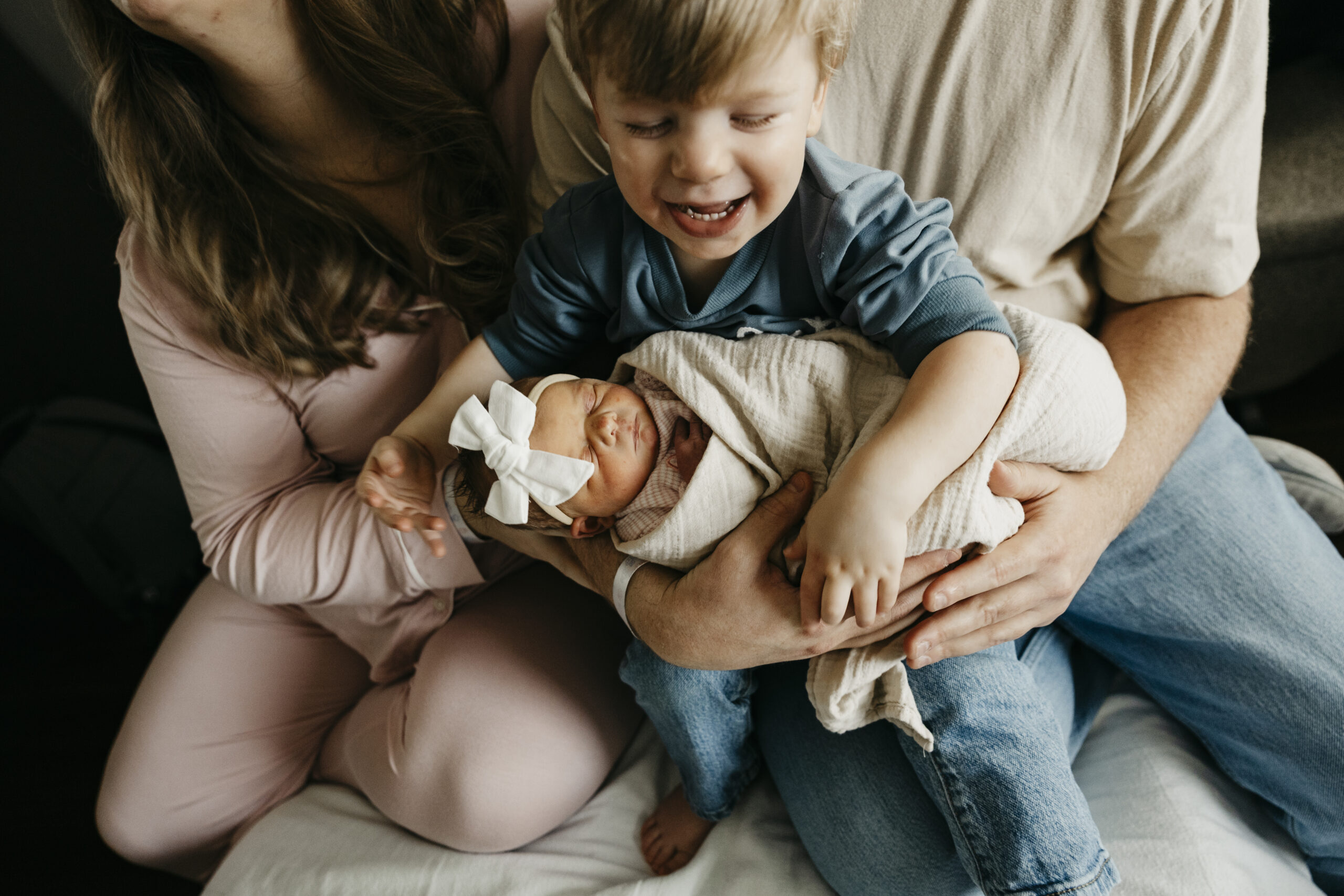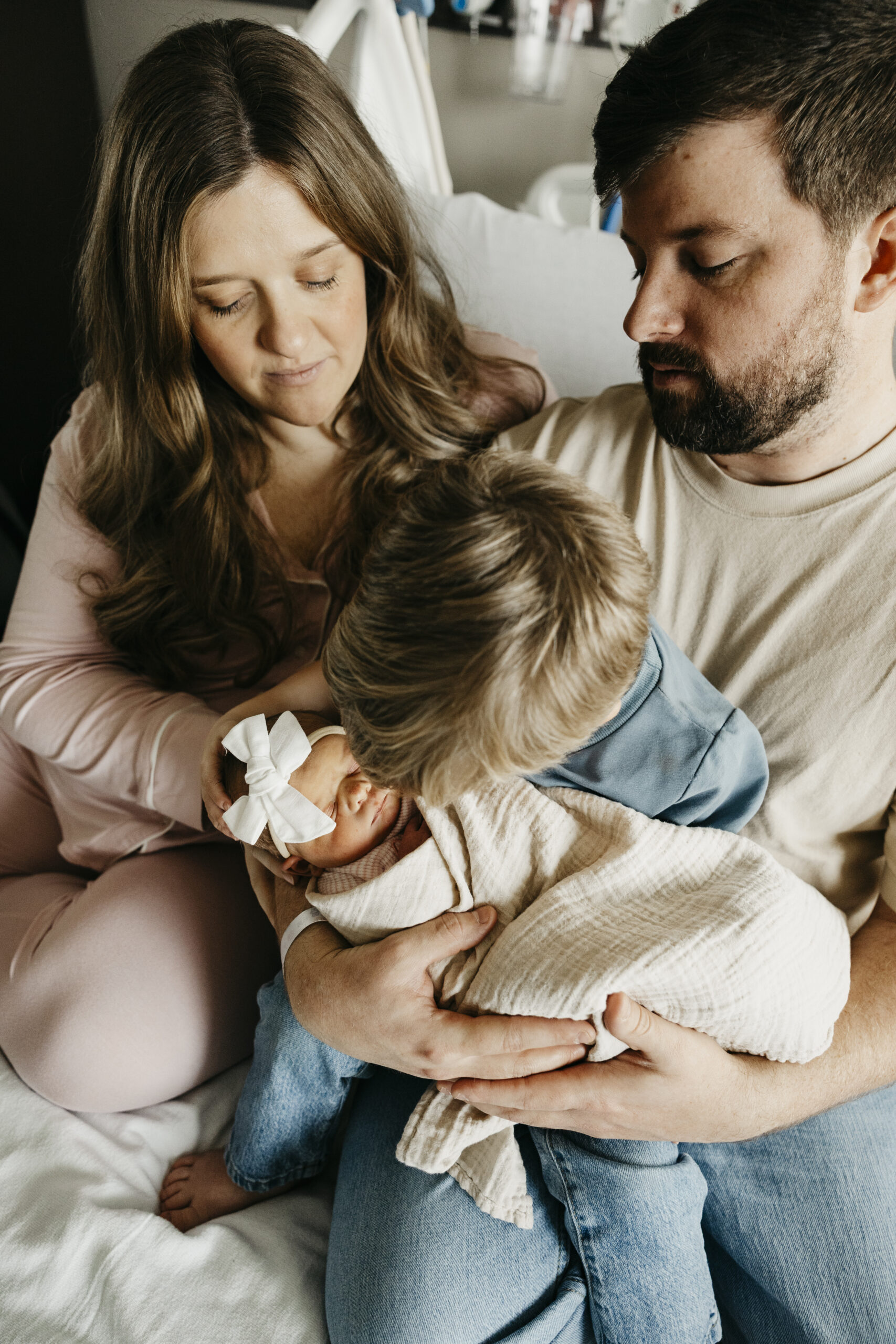 Even more meaningful was watching big brother Brooks step into his new role. The way he gently peeked at his baby sister, held her tiny hand, and proudly showed her off was the sweetest thing. These are the moments that make hospital photos so powerful. The raw emotion, the fresh love, and the quiet in between moments you can never recreate later.
