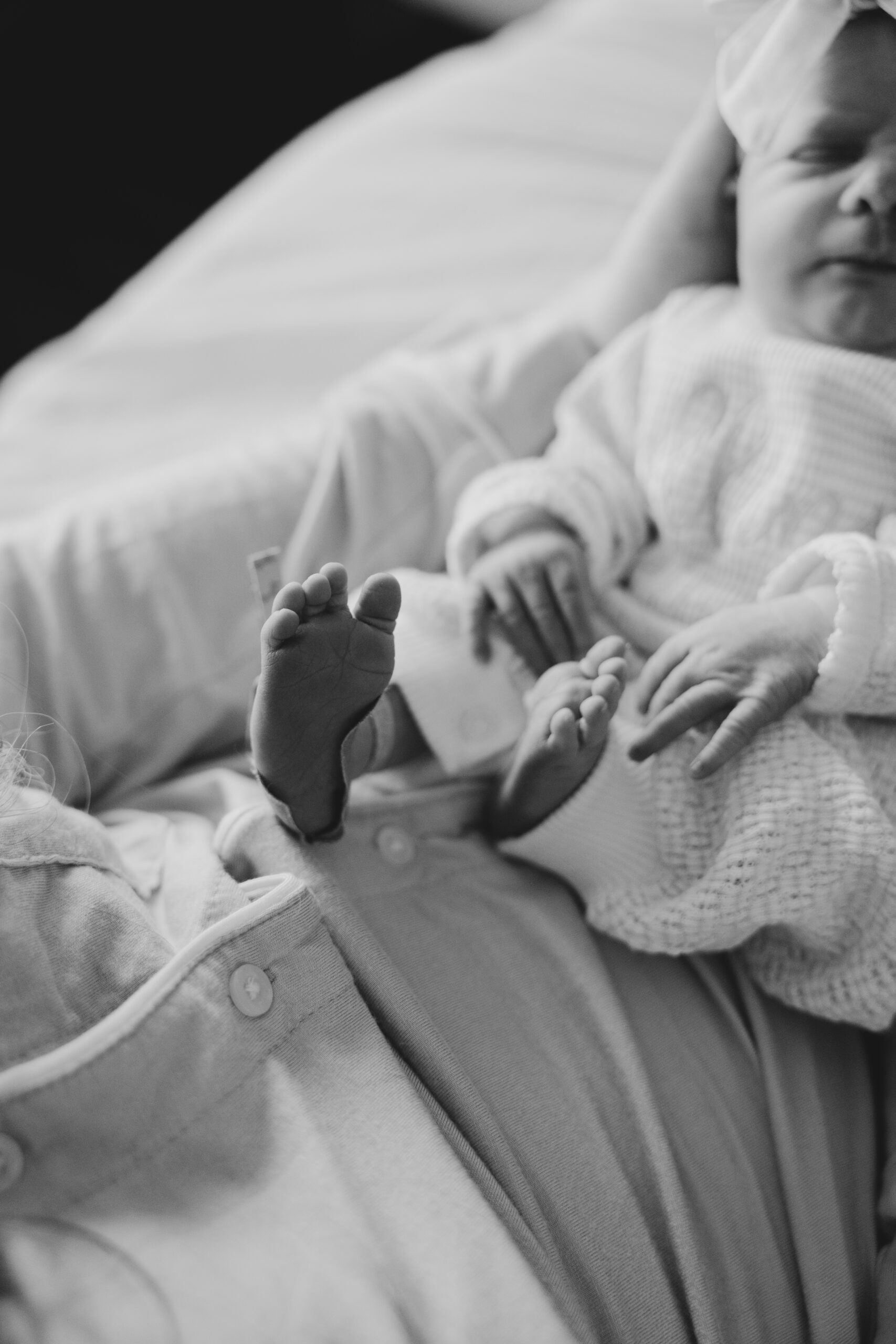• Fresh baby details like tiny toes, wrinkly fingers, and hospital bracelets