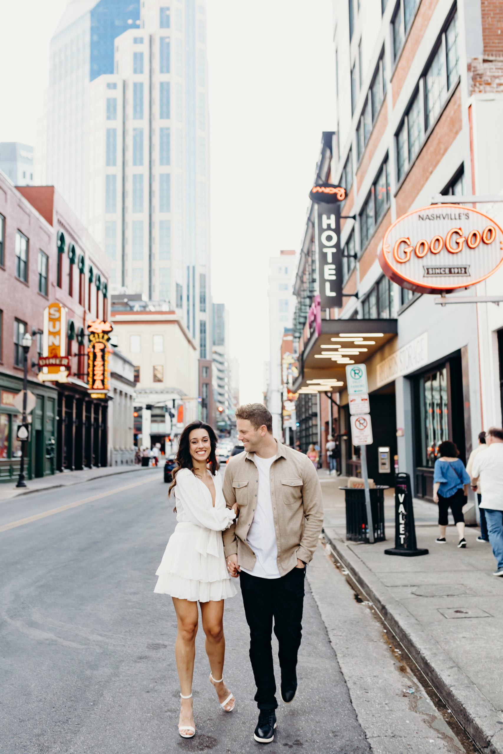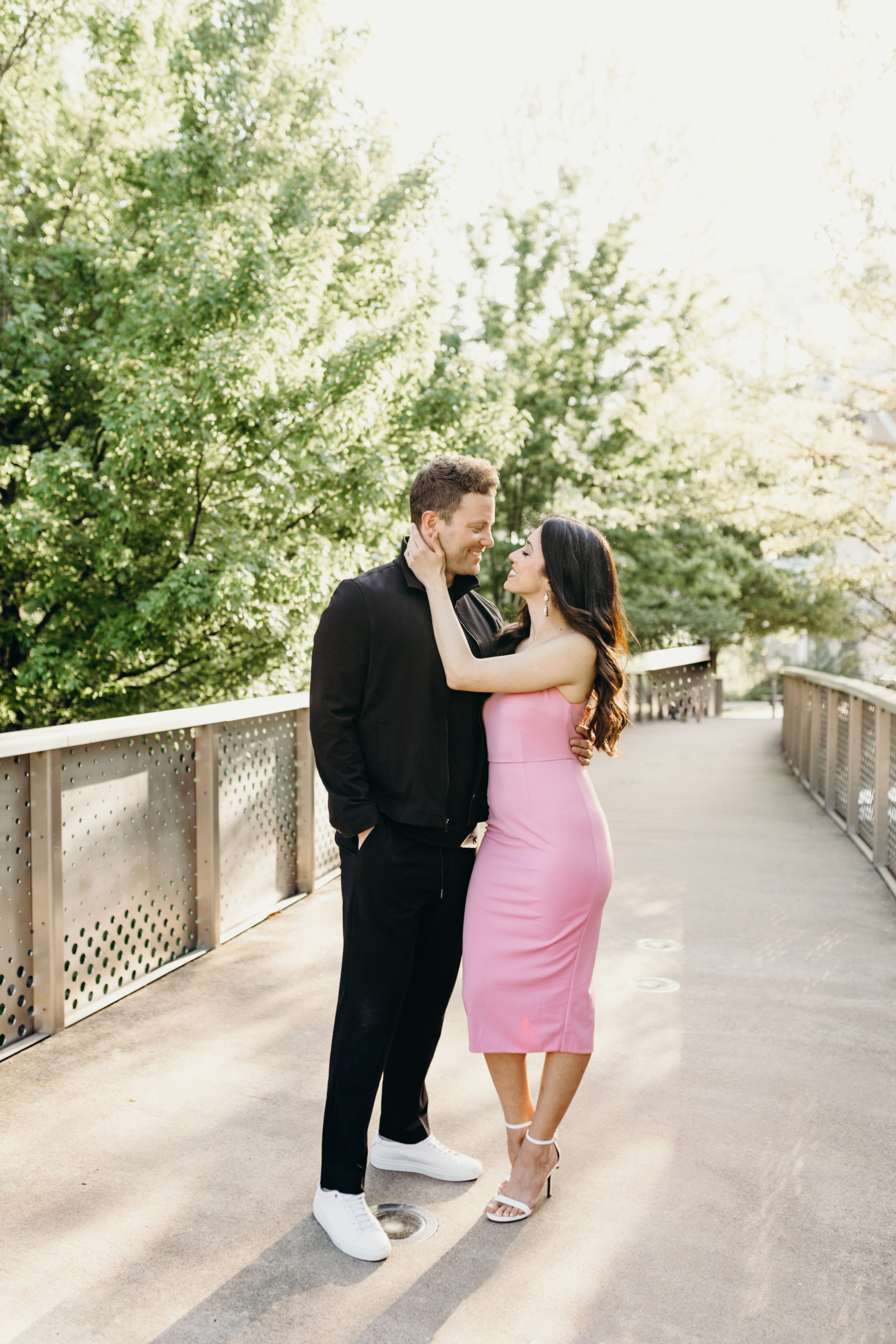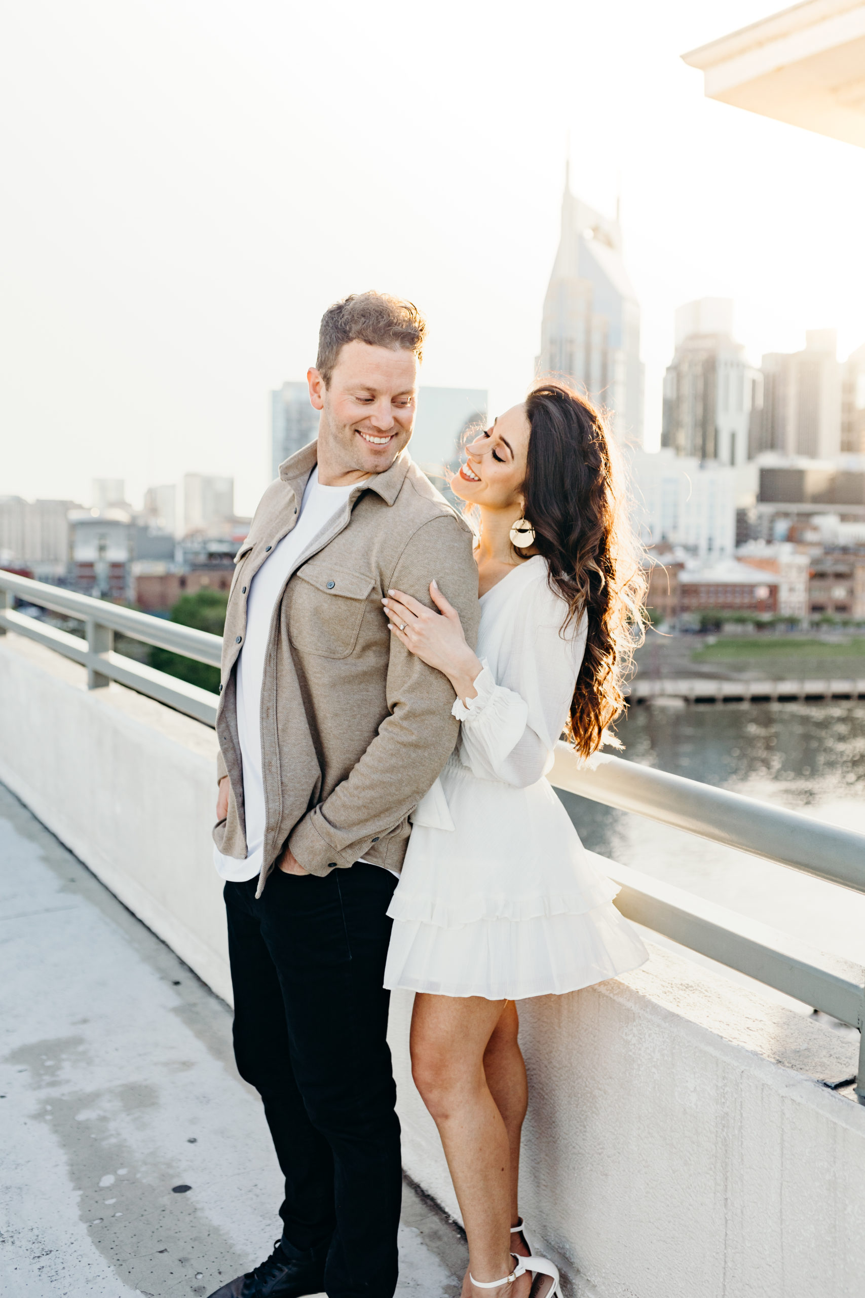 I have been so excited to share these Nashville Skyline Engagement photos with you. These two knocked it out of the park & it was so much fun photographing them. I met I’m at Kaleb and Ayda at the pedestrian Bridge on the most beautiful Sunday evening. We had to reschedule because of the Garth Brooks concert the week before, but it worked out perfectly because we got the most beautiful sunset. Kaleb & Ayda are from the Indianapolis area and will get be getting married there this fall. This was the perfect opportunity for them to do their engagement session in their new city. They’ve been here for a little over a year and I are loving Nashville. We started at the pedestrian bridge walked to Broadway and then made our way back and popped a little champagne on the bridge. It will be so fun getting to know these two over the years as they grow their relationship! The Nashville skyline never disappoints and I am so excited to share these photos with you!