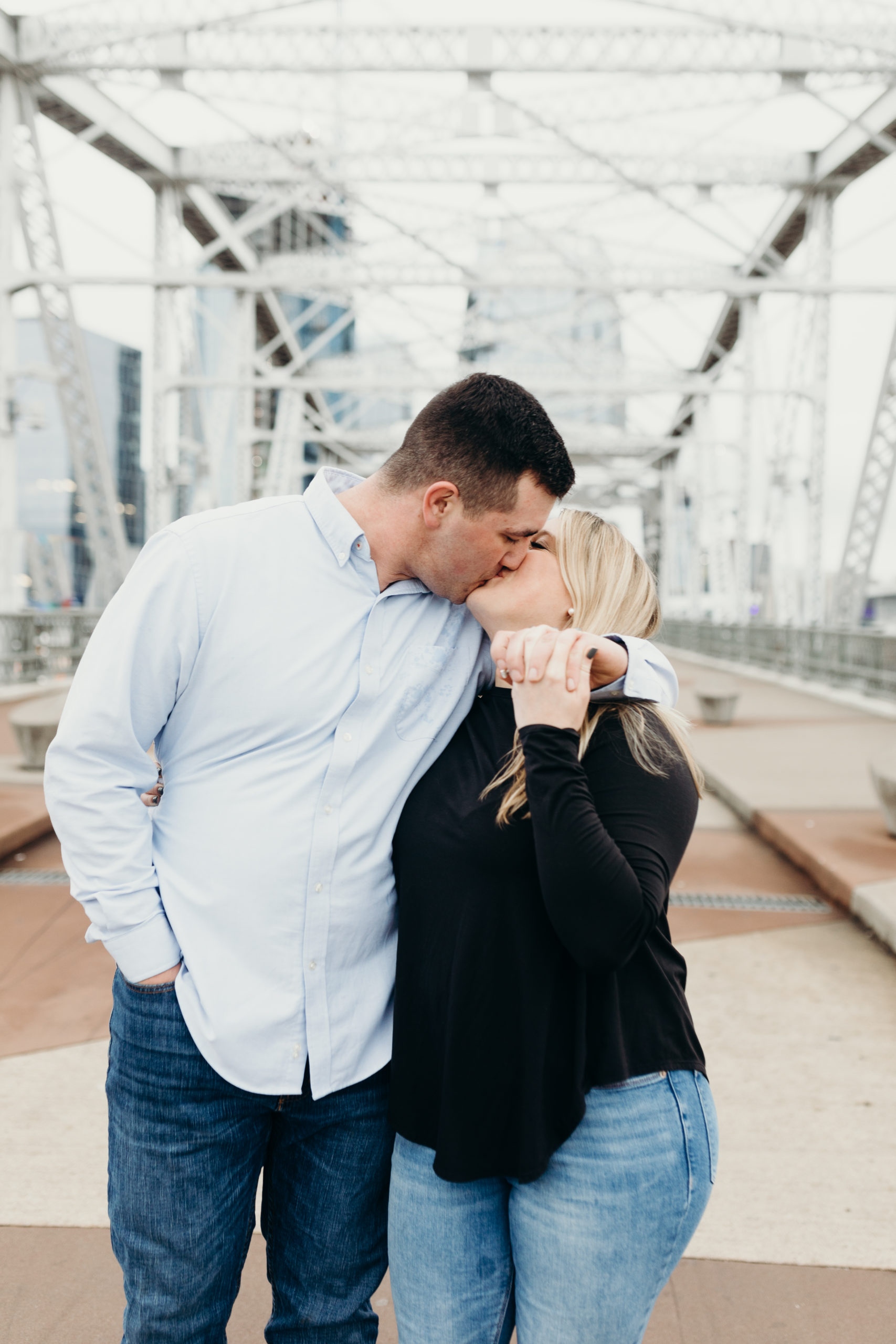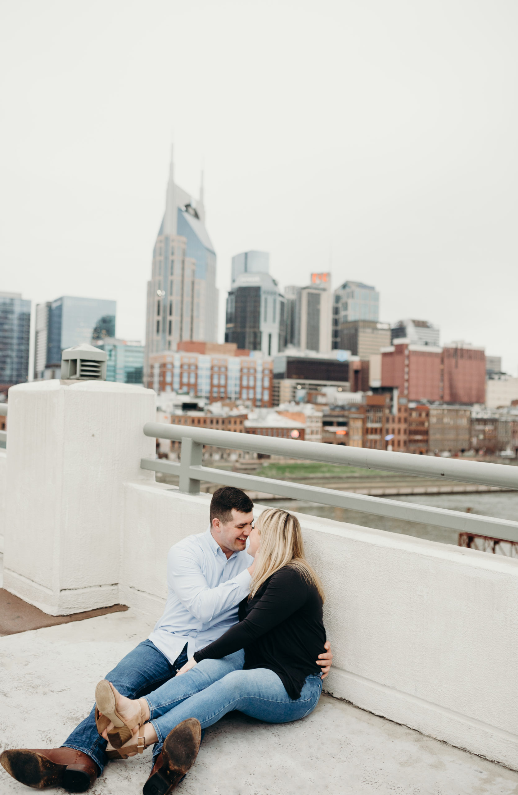 This Nashville Skyline engagement session has been one I have been waiting a long time for, but defiantly not as long as Angus & Shelby. When you meet someone in Middle School, you would never think 16 years later you would be planning a wedding! Angus & Shelby met in the Maryville High School gym & have known each other for overhalf their lives. After a little off & on going through all the seasons of life throughout Middle, High School & College Angus took Shelby to the Titans game in Nashville & the rest is history. Shelby may have been too cool for him in school, but Angus always knew she was the one.