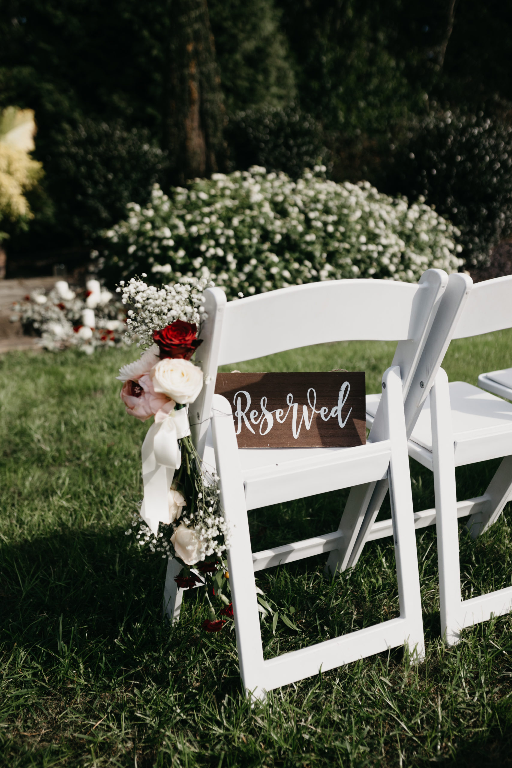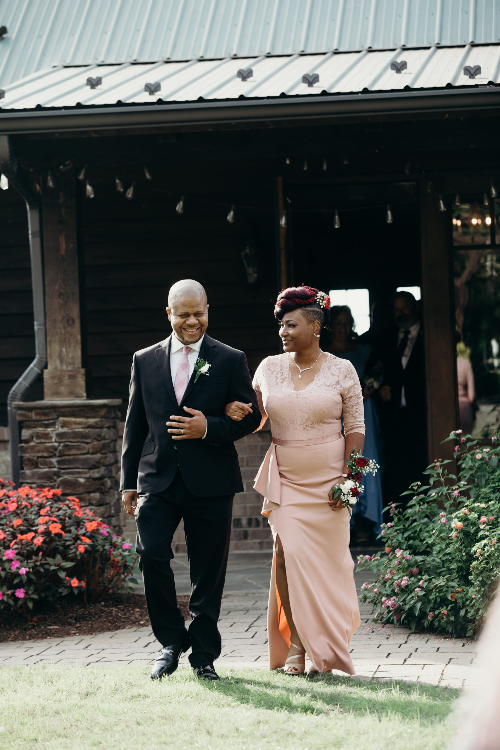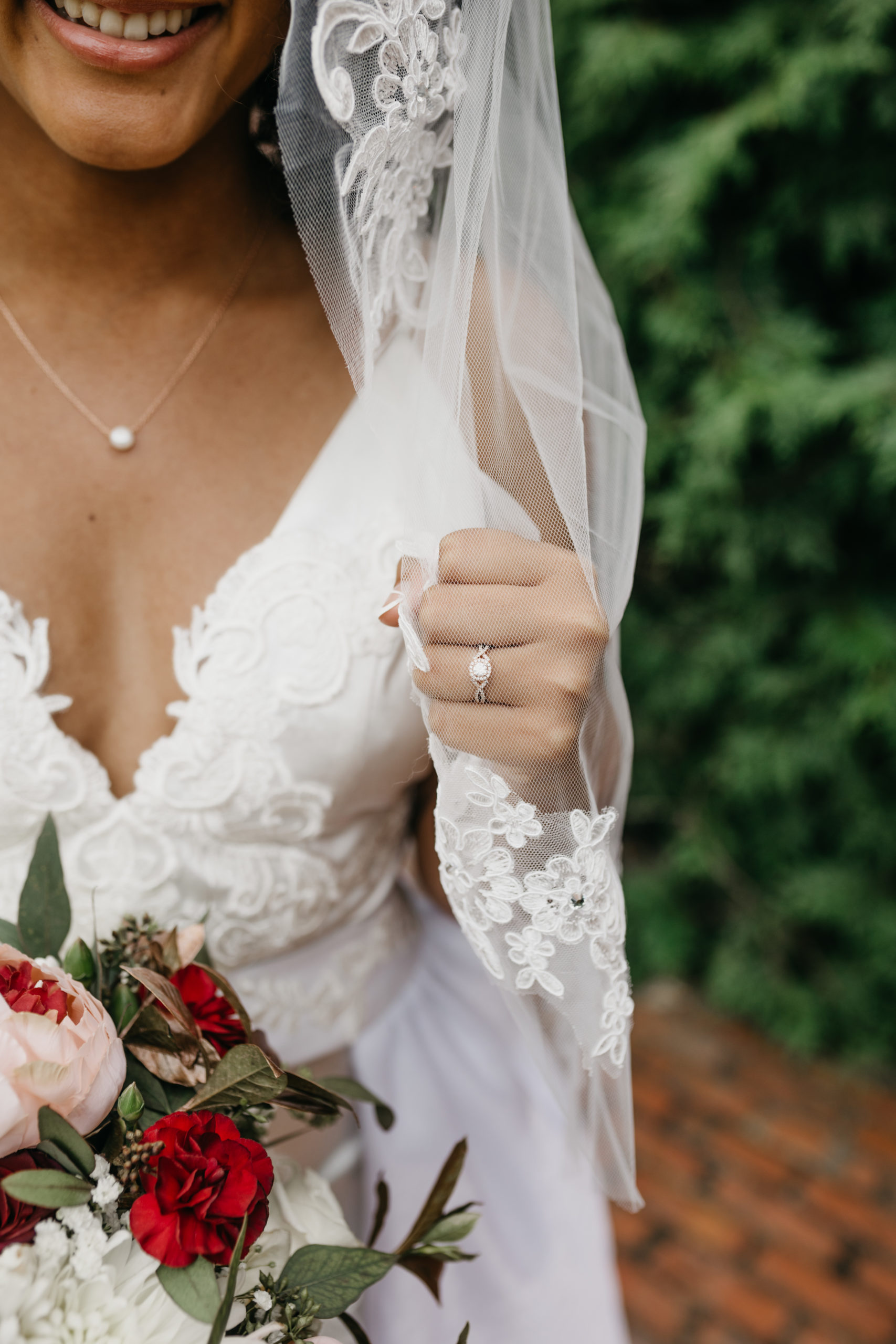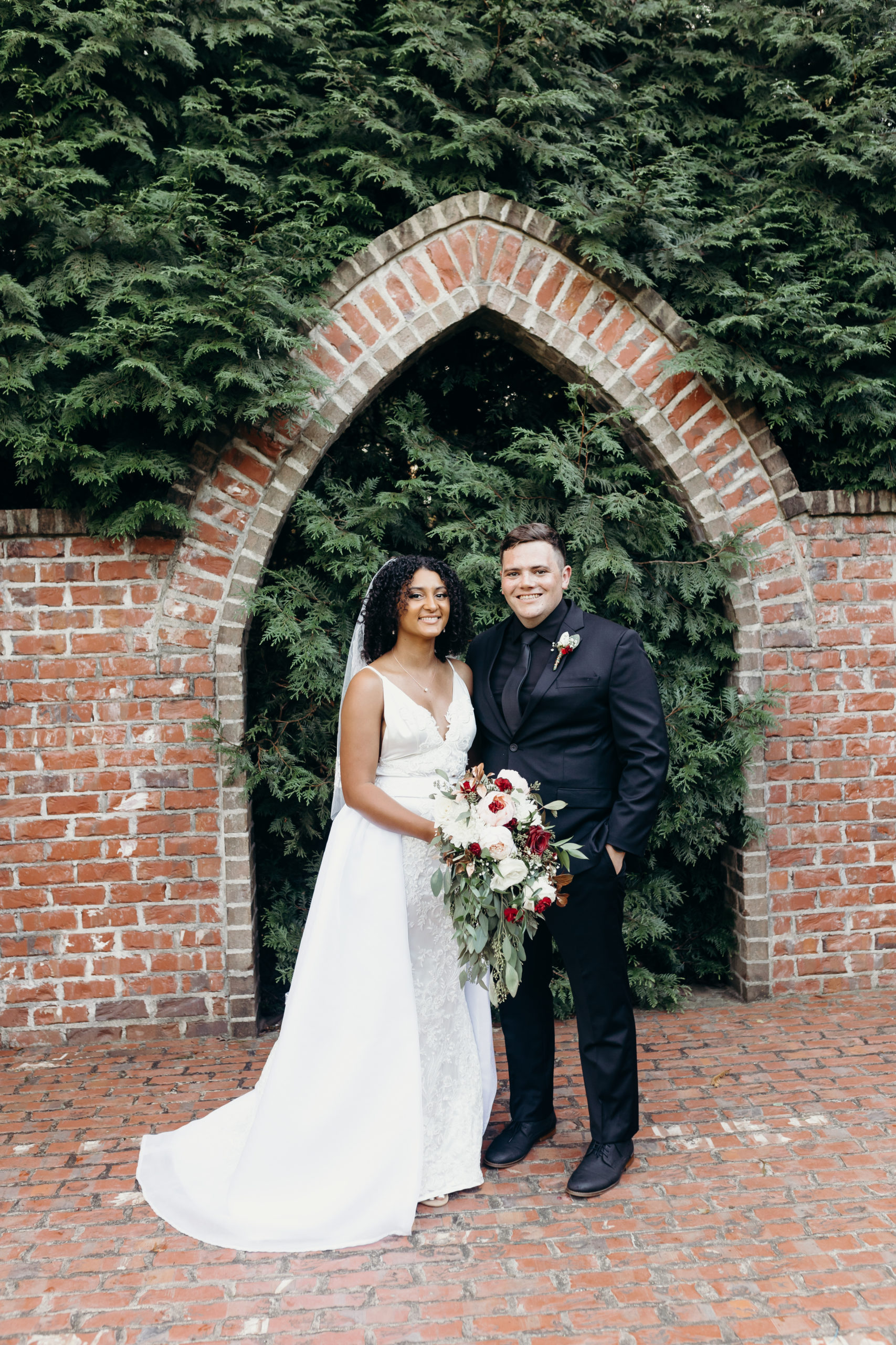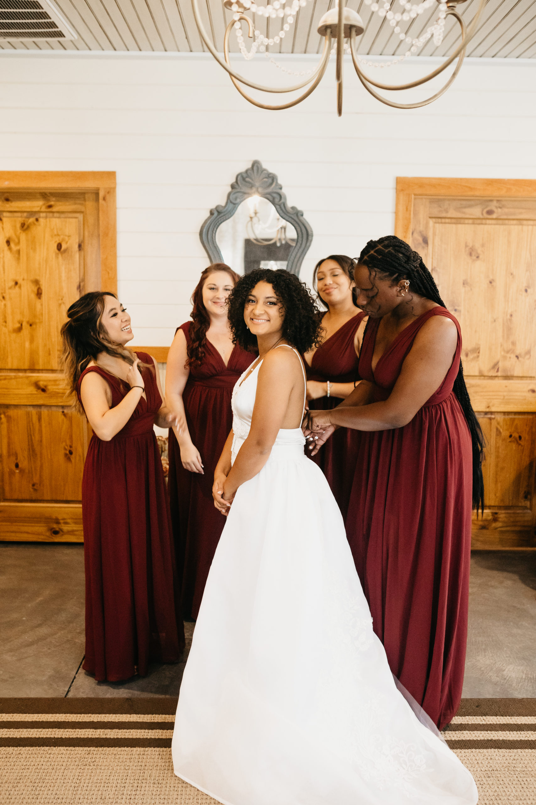 Joey & Raven chose the most beautiful fall color palette with rich Burgundy & pops of pink in the florals. This evoked such elegance that looked perfectly intentional yet totally effortless. The organic floral design was one of the highlights of the day, featuring lots of lush greenery. Altogether, the details were visually captivating. But none as much as Ravens’s stunning dress, made by her grandmother!