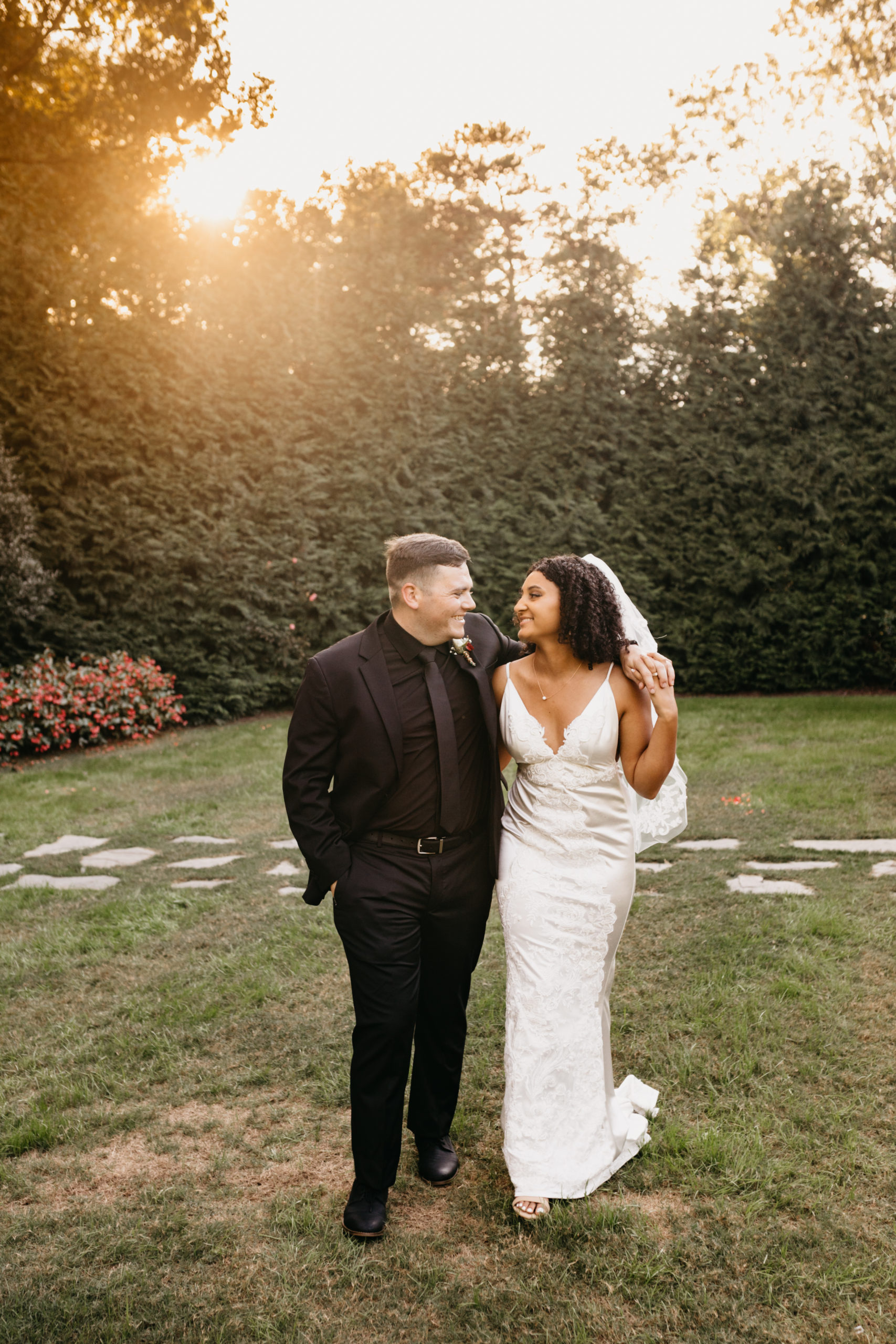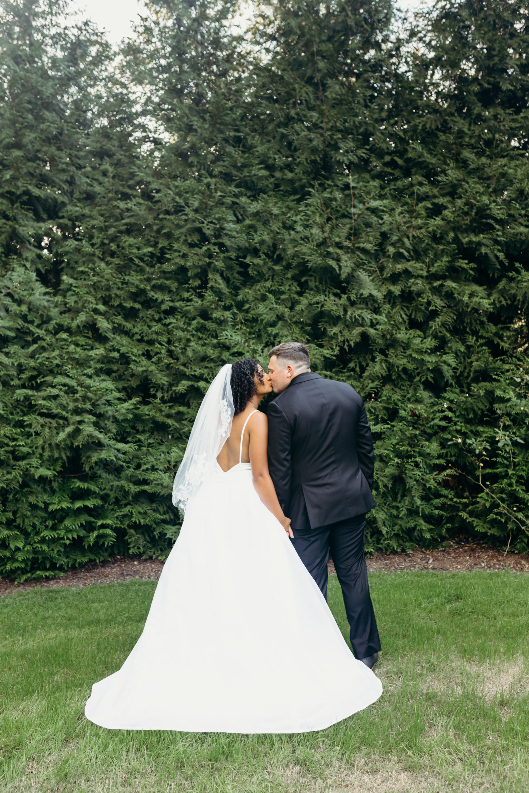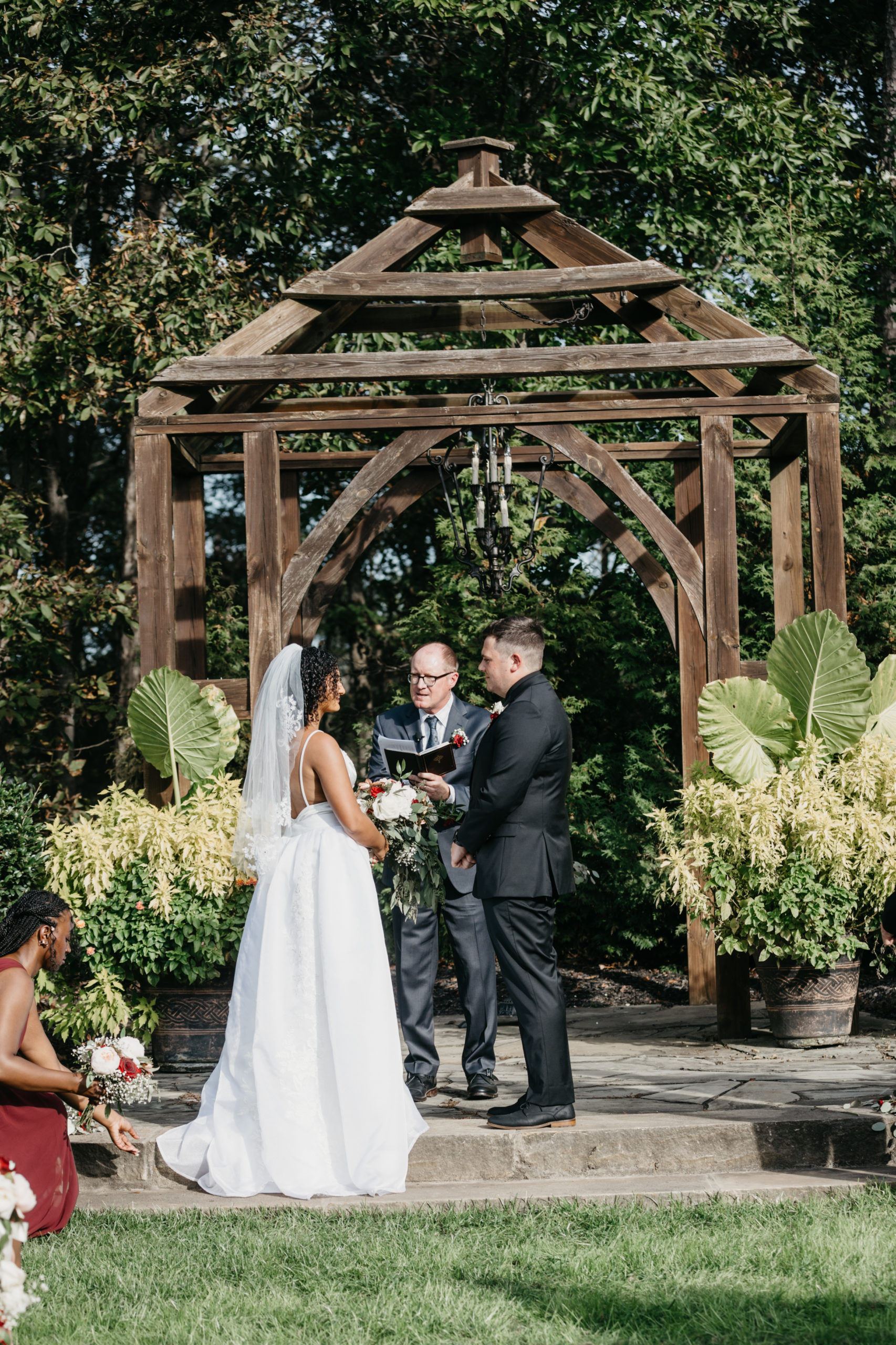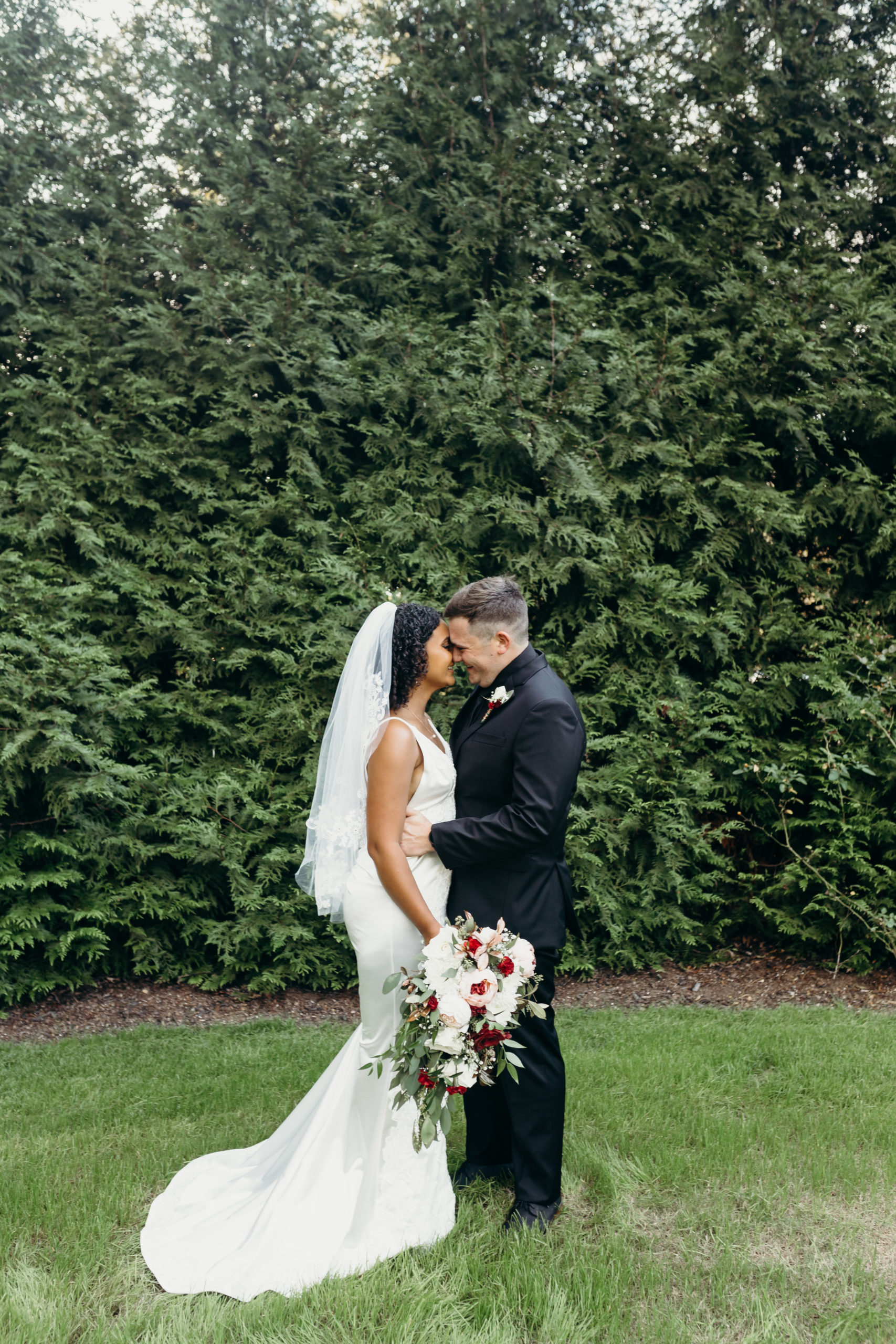 Joey & Raven chose the most beautiful fall color palette with rich Burgundy & pops of pink in the florals. This evoked such elegance that looked perfectly intentional yet totally effortless. The organic floral design was one of the highlights of the day, featuring lots of lush greenery. Altogether, the details were visually captivating. But none as much as Ravens’s stunning dress, made by her grandmother!