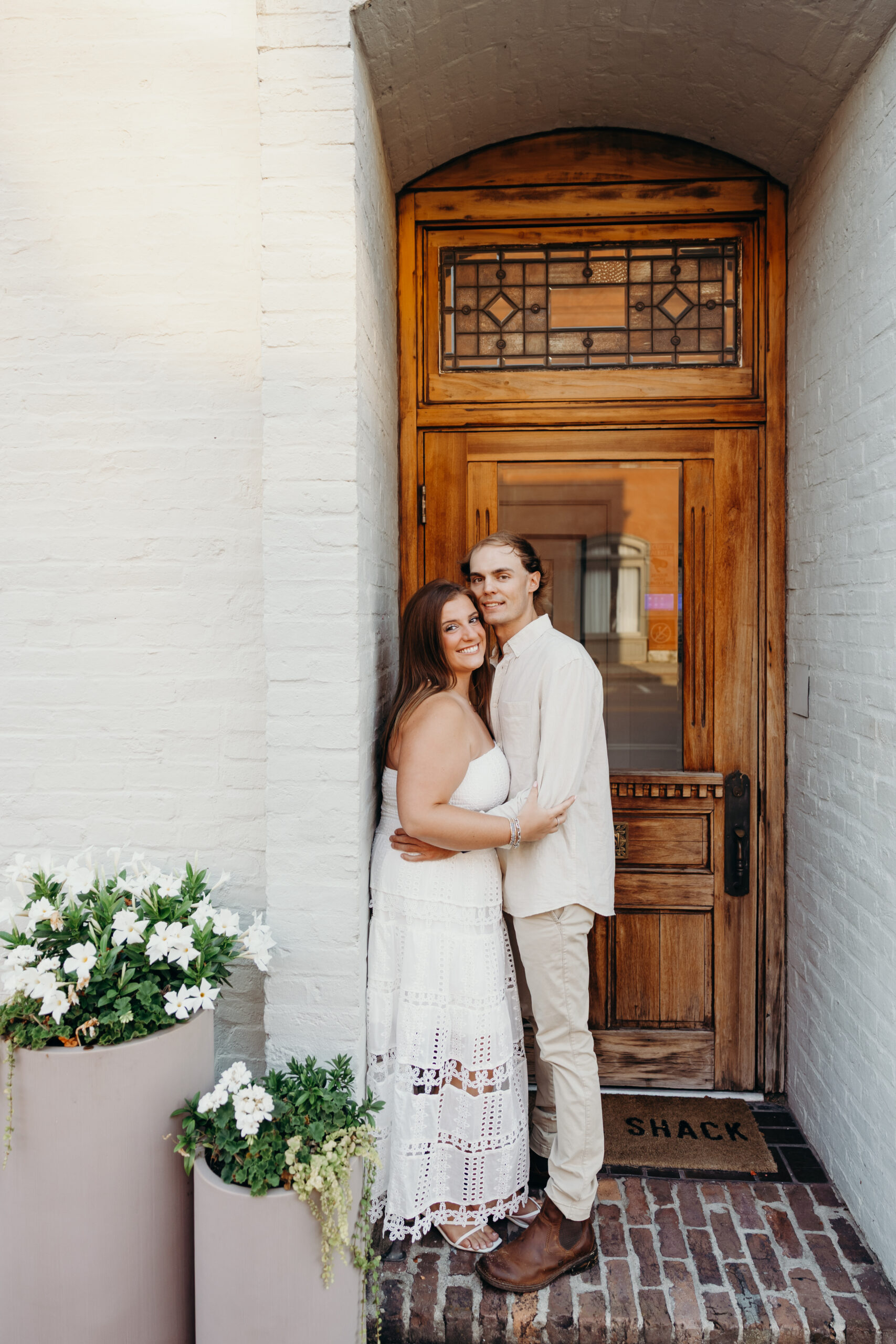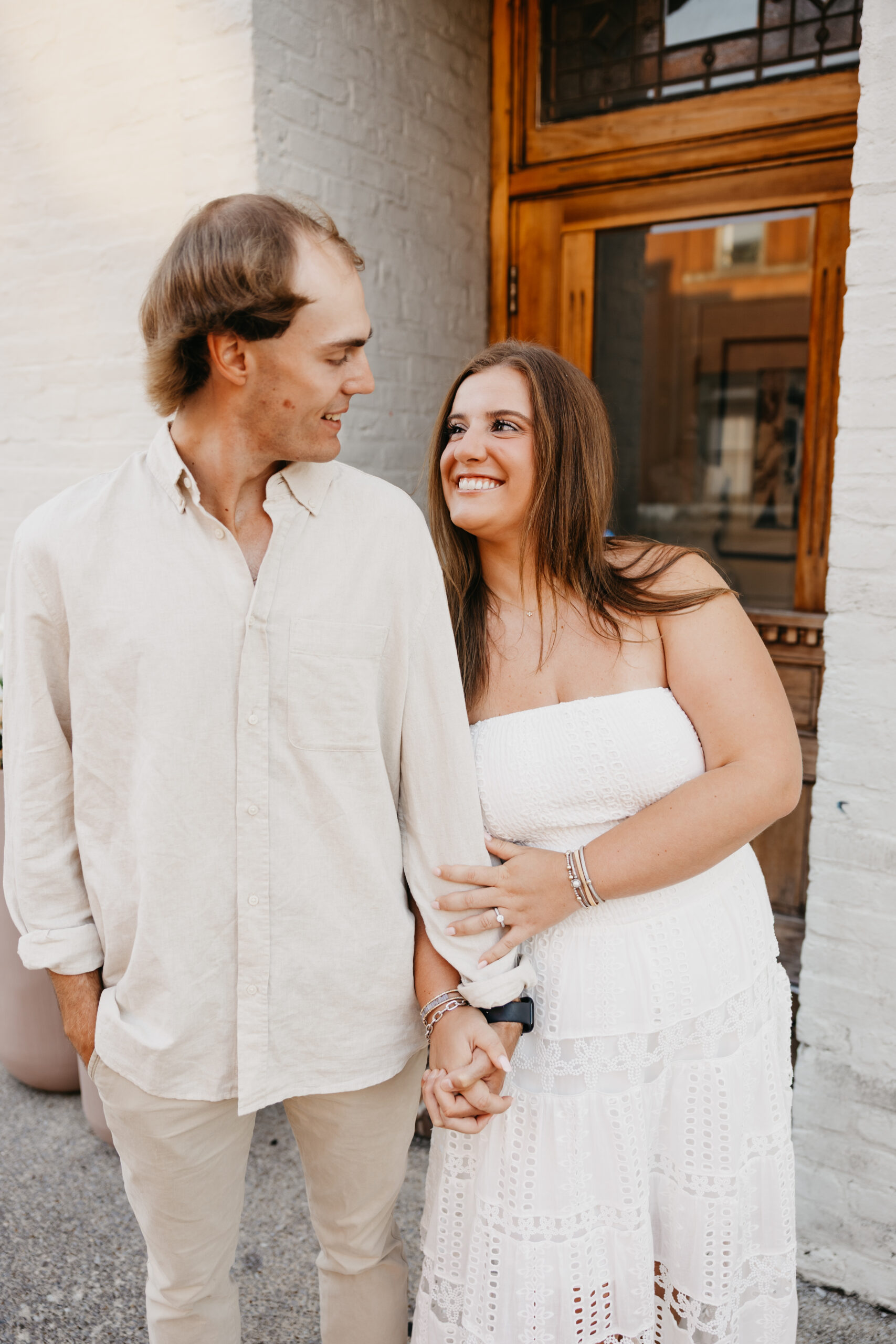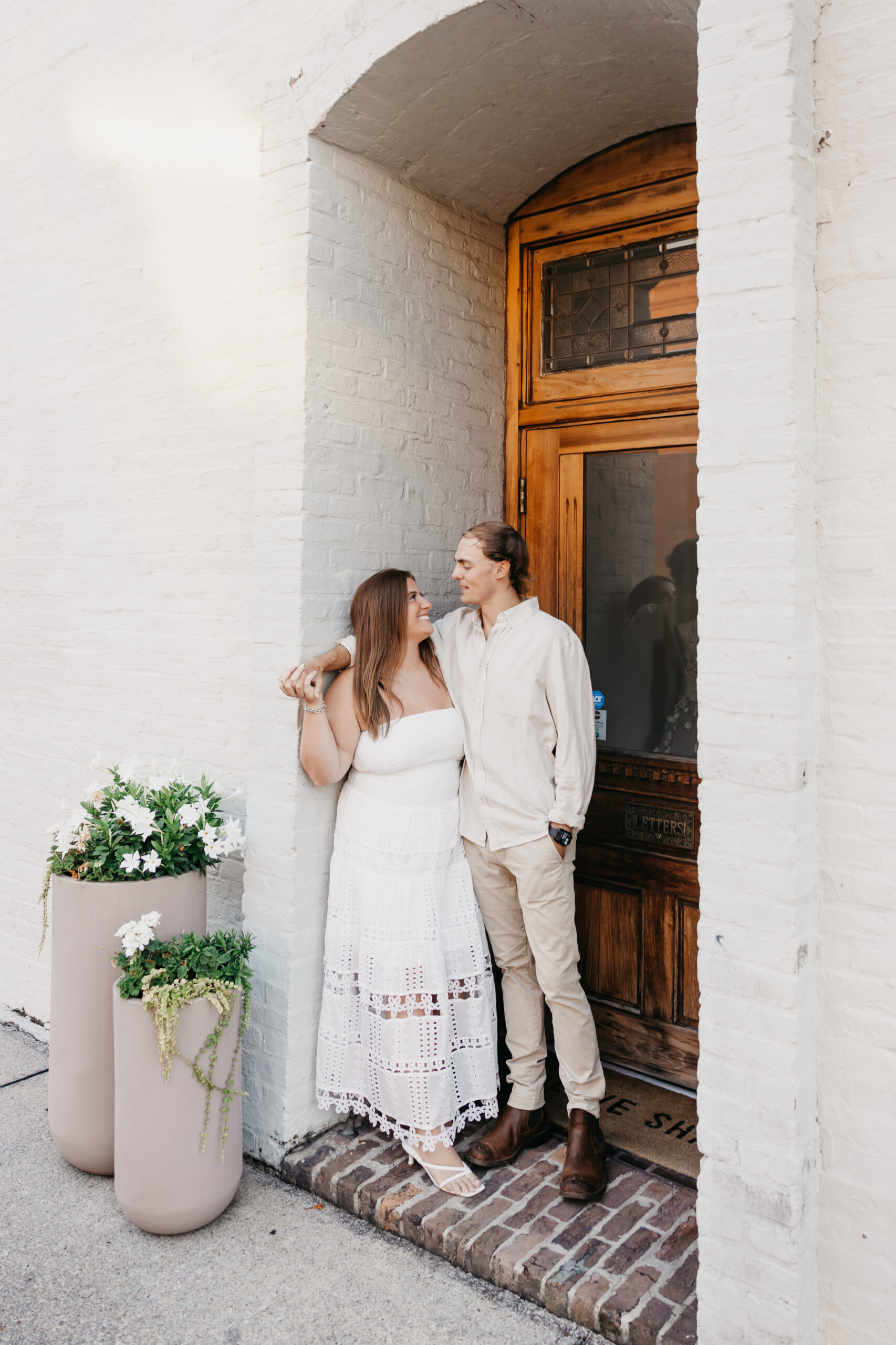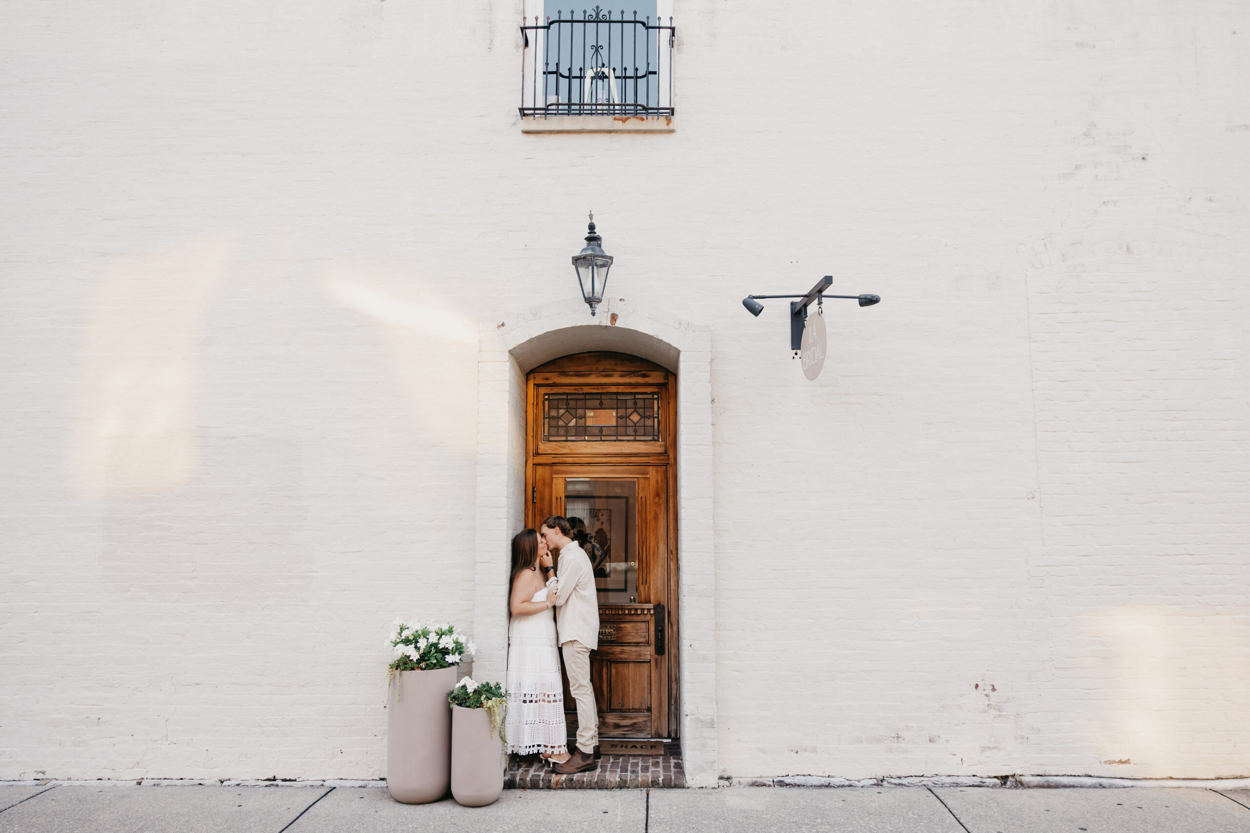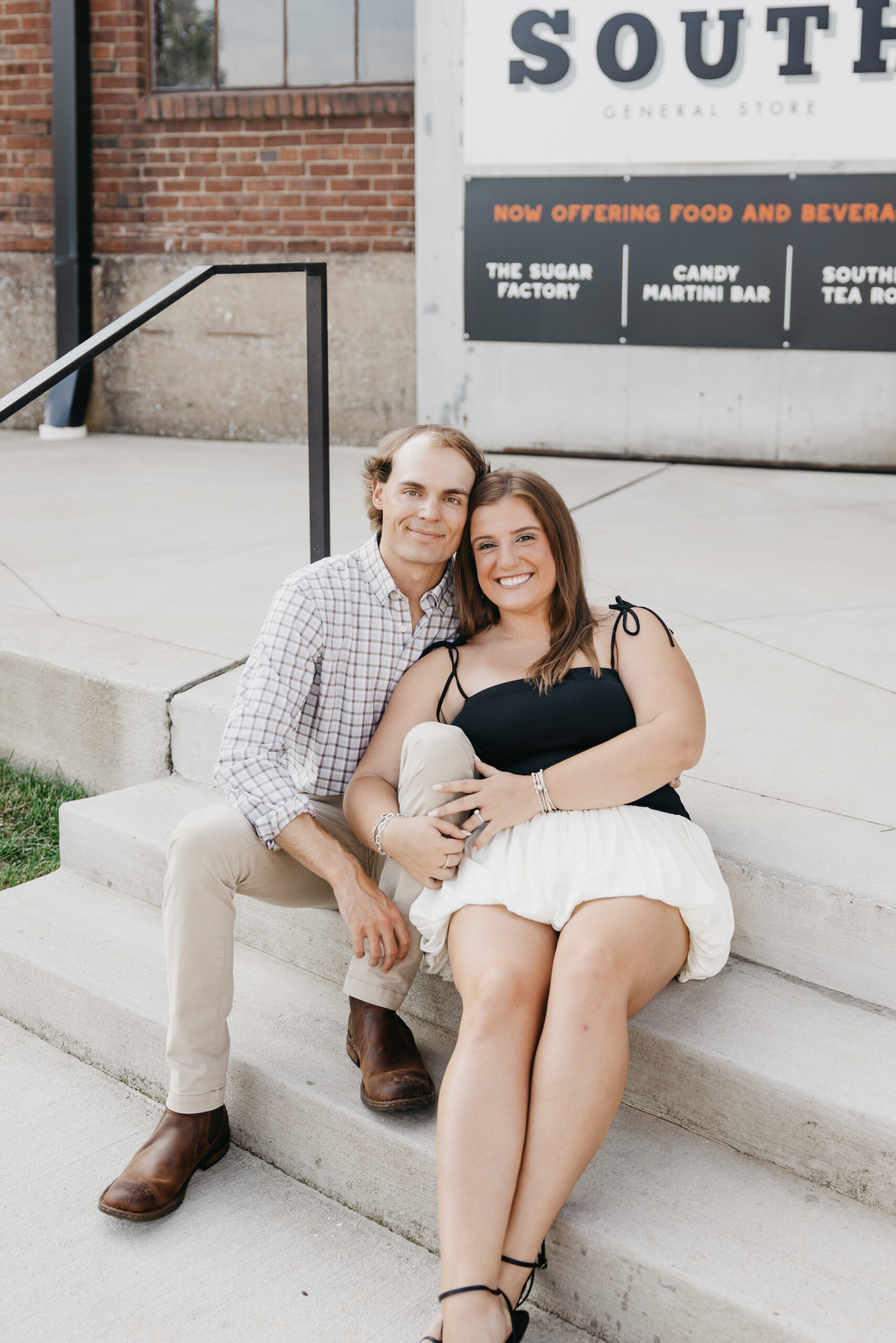 Chase and Khaki were absolute naturals in front of the camera, laughing between poses, holding hands, and soaking in that calm, just-us-two feeling before the city woke up. Afterward, we wandered over to The Factory at Franklin, where the empty walkways and industrial charm gave them even more space to just be together. No crowds, no rush — just two best friends in love.