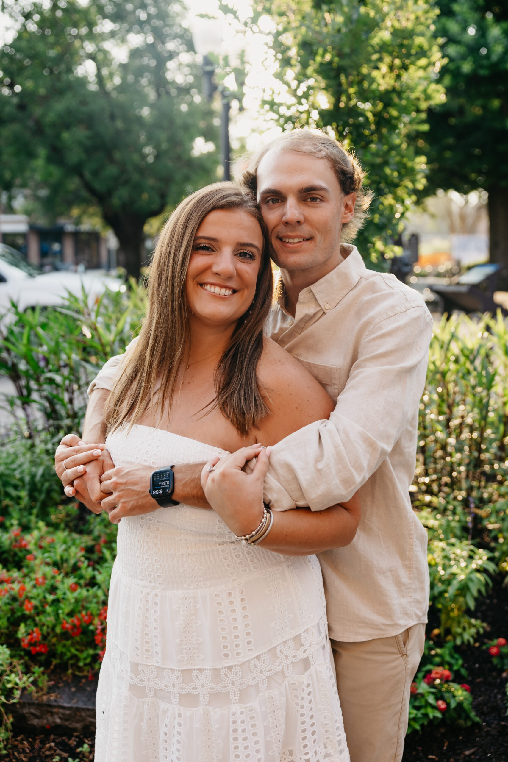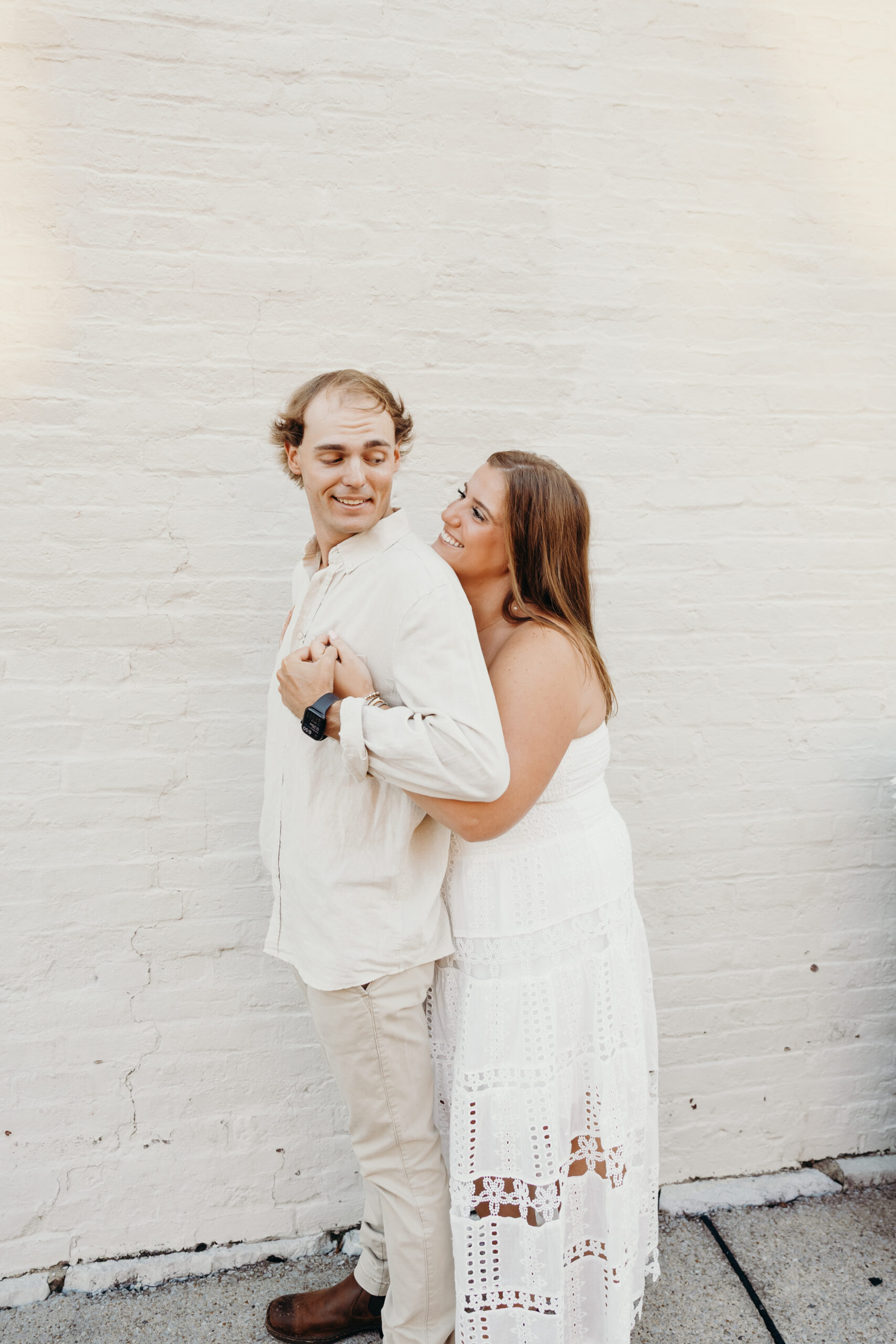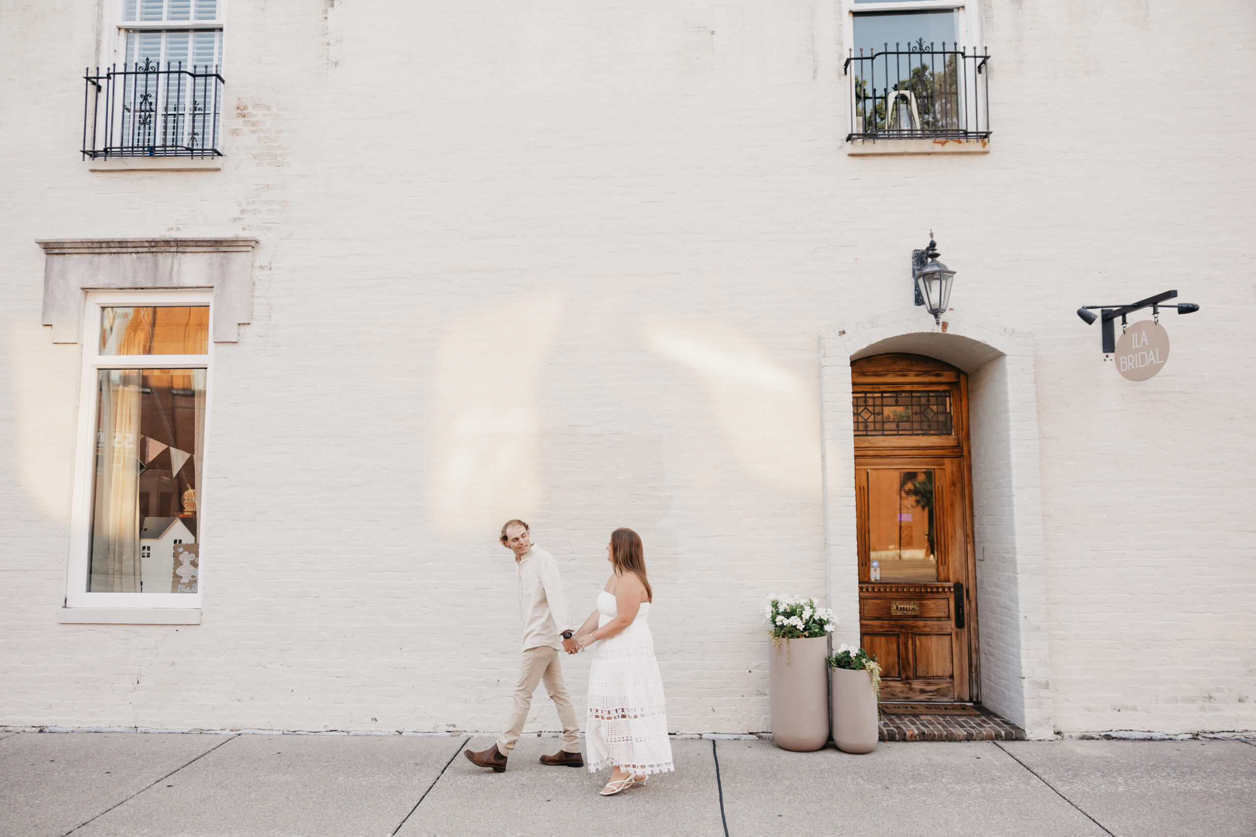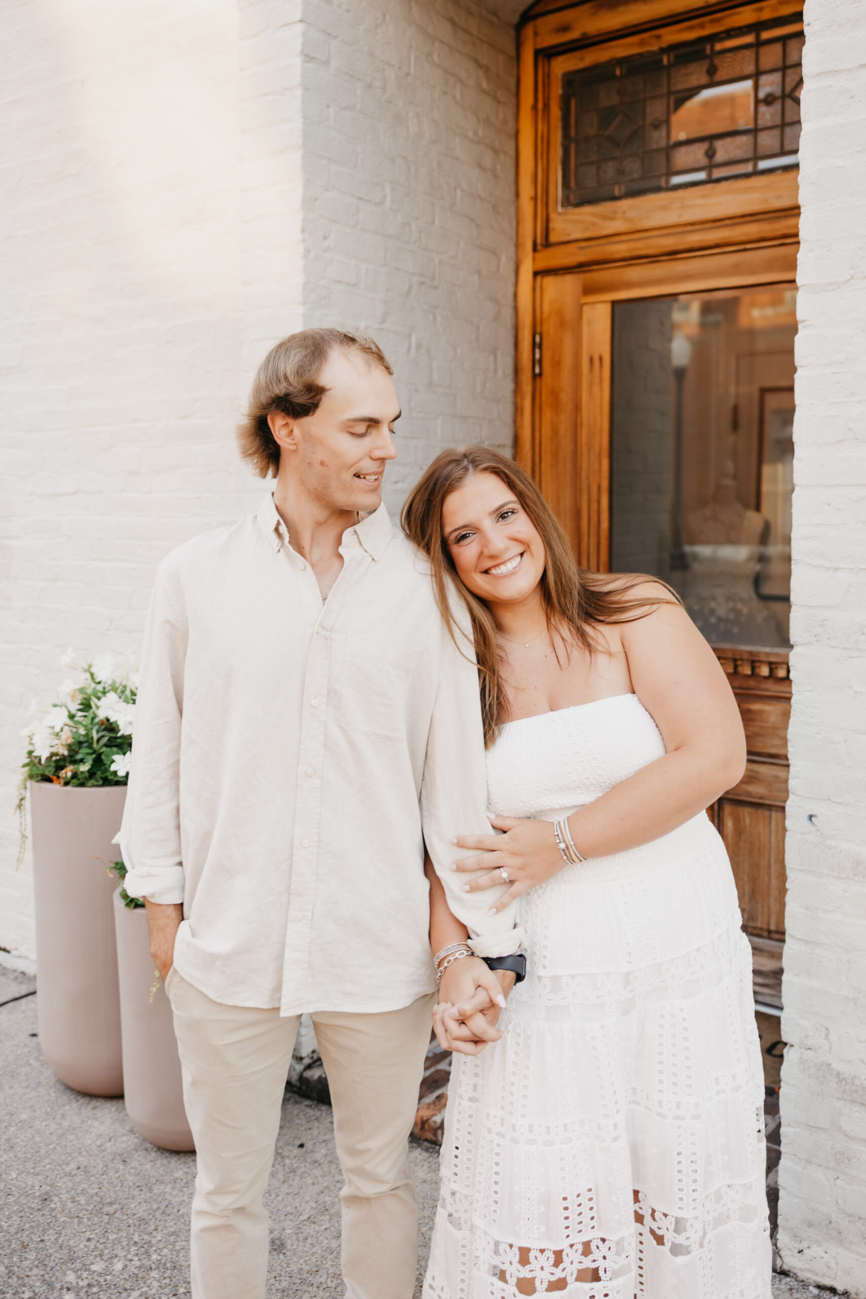 Chase and Khaki were absolute naturals in front of the camera, laughing between poses, holding hands, and soaking in that calm, just-us-two feeling before the city woke up. Afterward, we wandered over to The Factory at Franklin, where the empty walkways and industrial charm gave them even more space to just be together. No crowds, no rush — just two best friends in love.