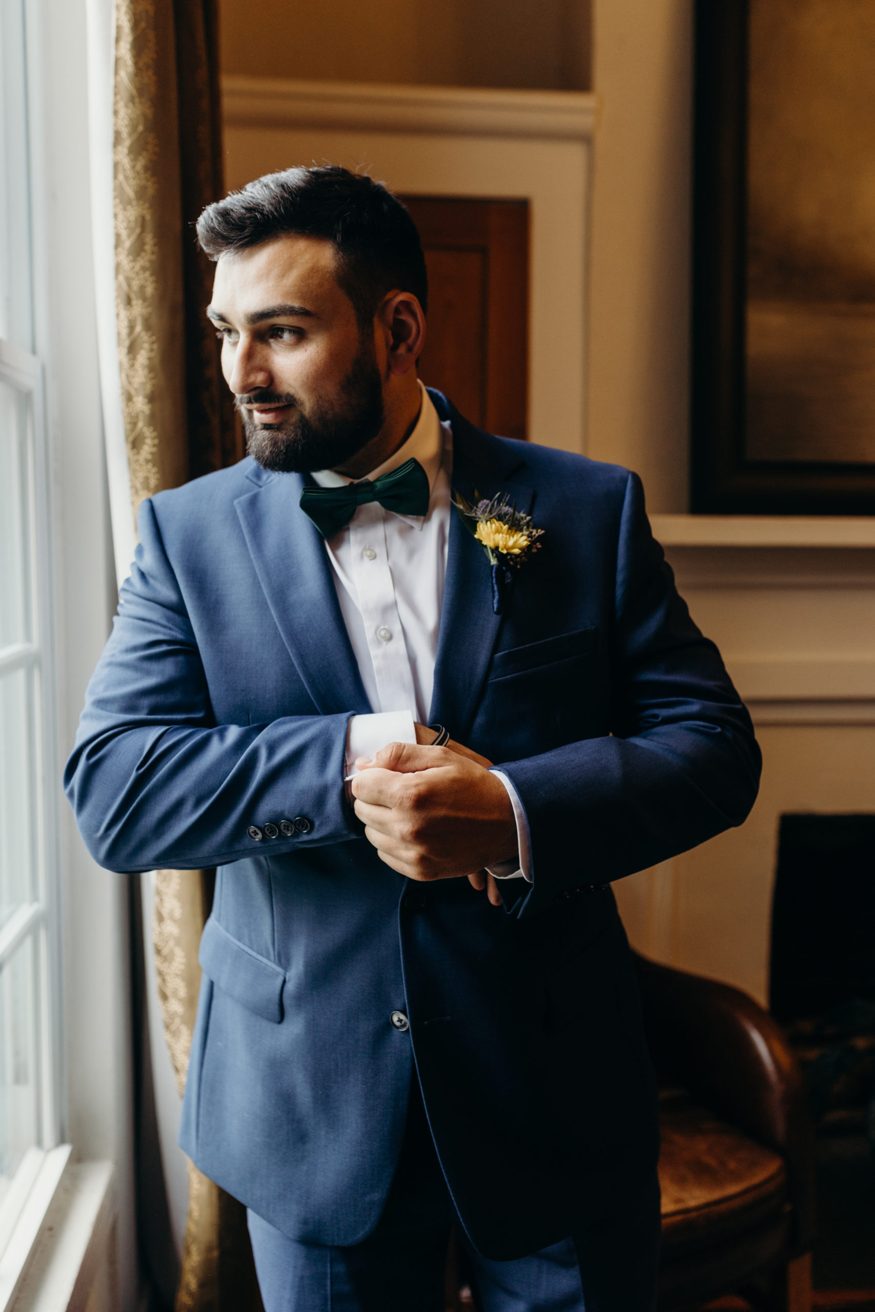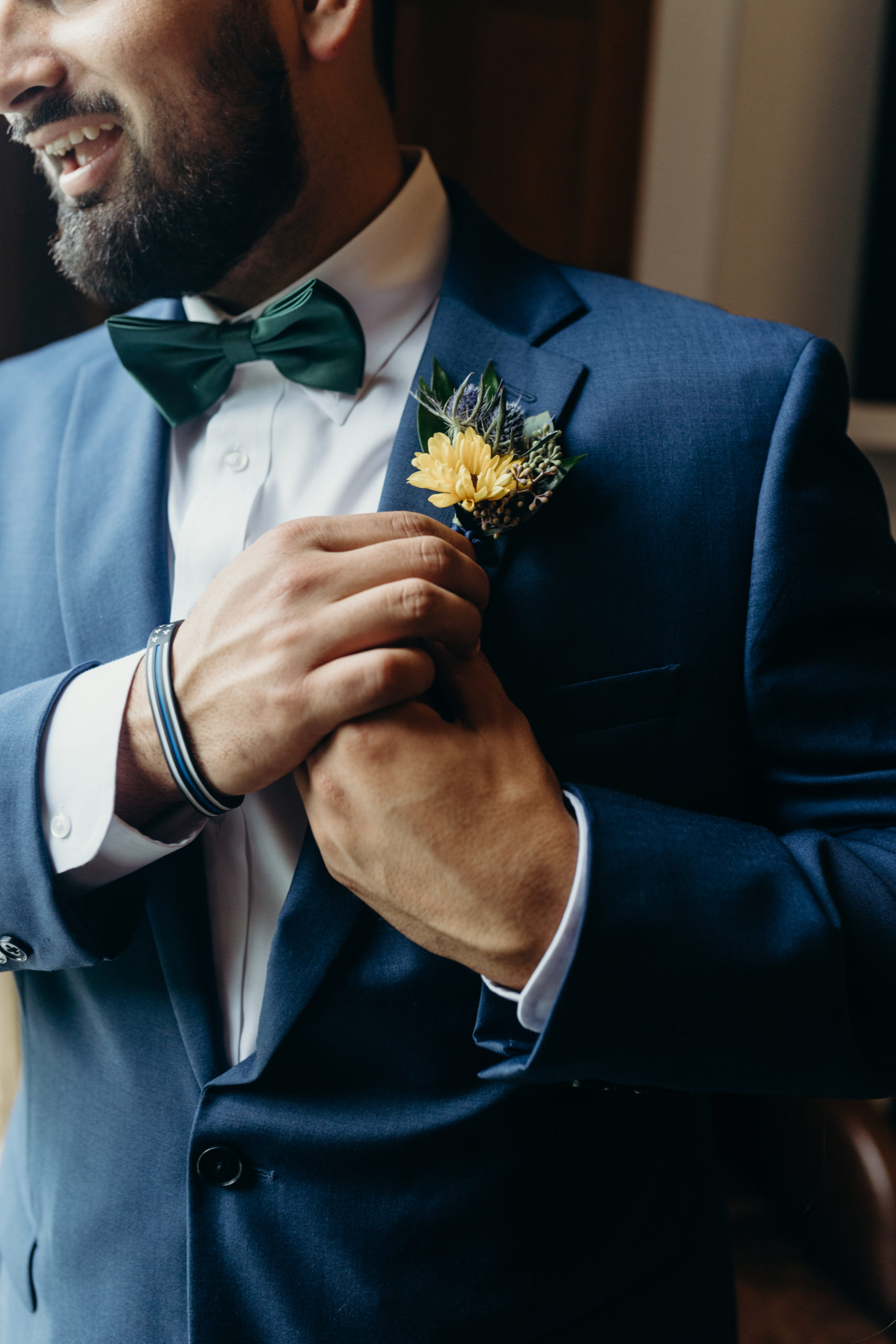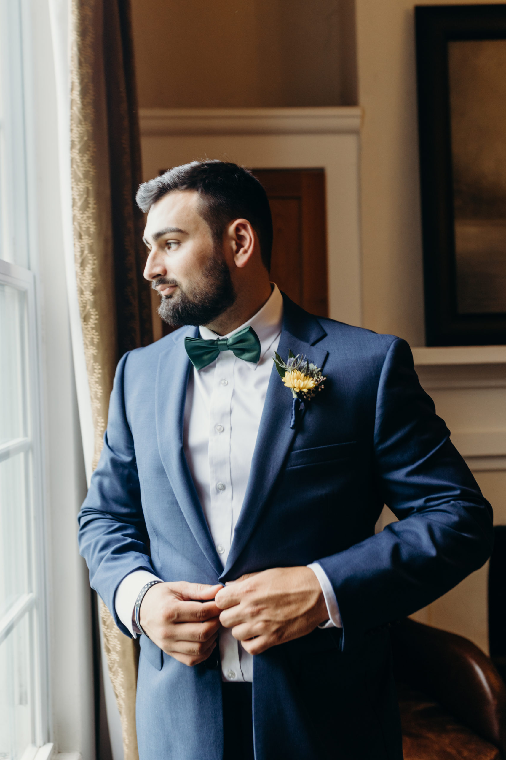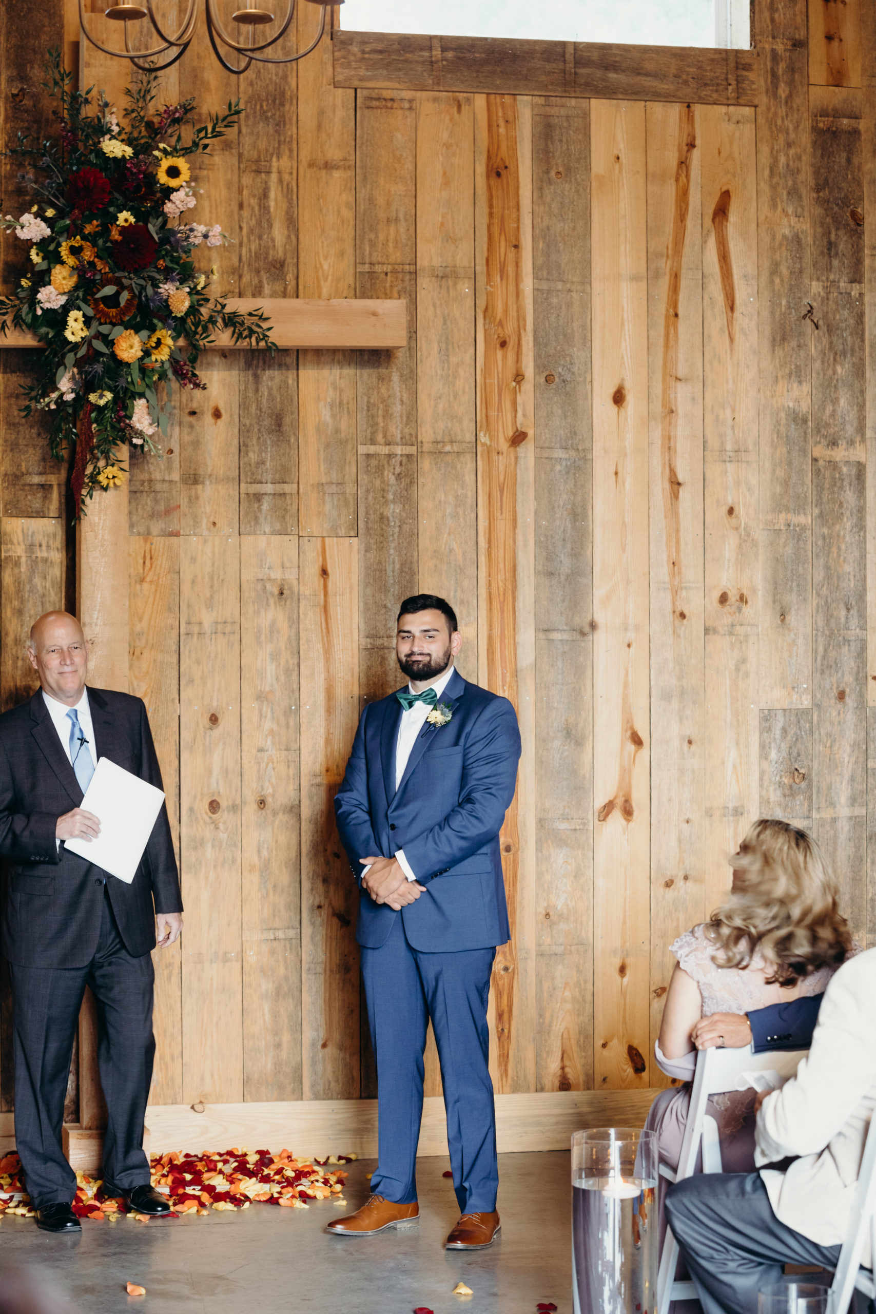 Dom & Ellie chose a classic natural color palette with greens & navy with a pop of color here & there. This evoked such elegance that looked perfectly intentional yet totally effortless. The organic floral design was one of the highlights of the day, featuring lots of florals. Altogether, the details were visually captivating, but none so much as Ellie glam bridal look, which featured the most stunning gown. The best part of the day was seeing Doms face when Ellie walked down the aisle. Their love is so evident & it was a prefect glimpse into their love story!