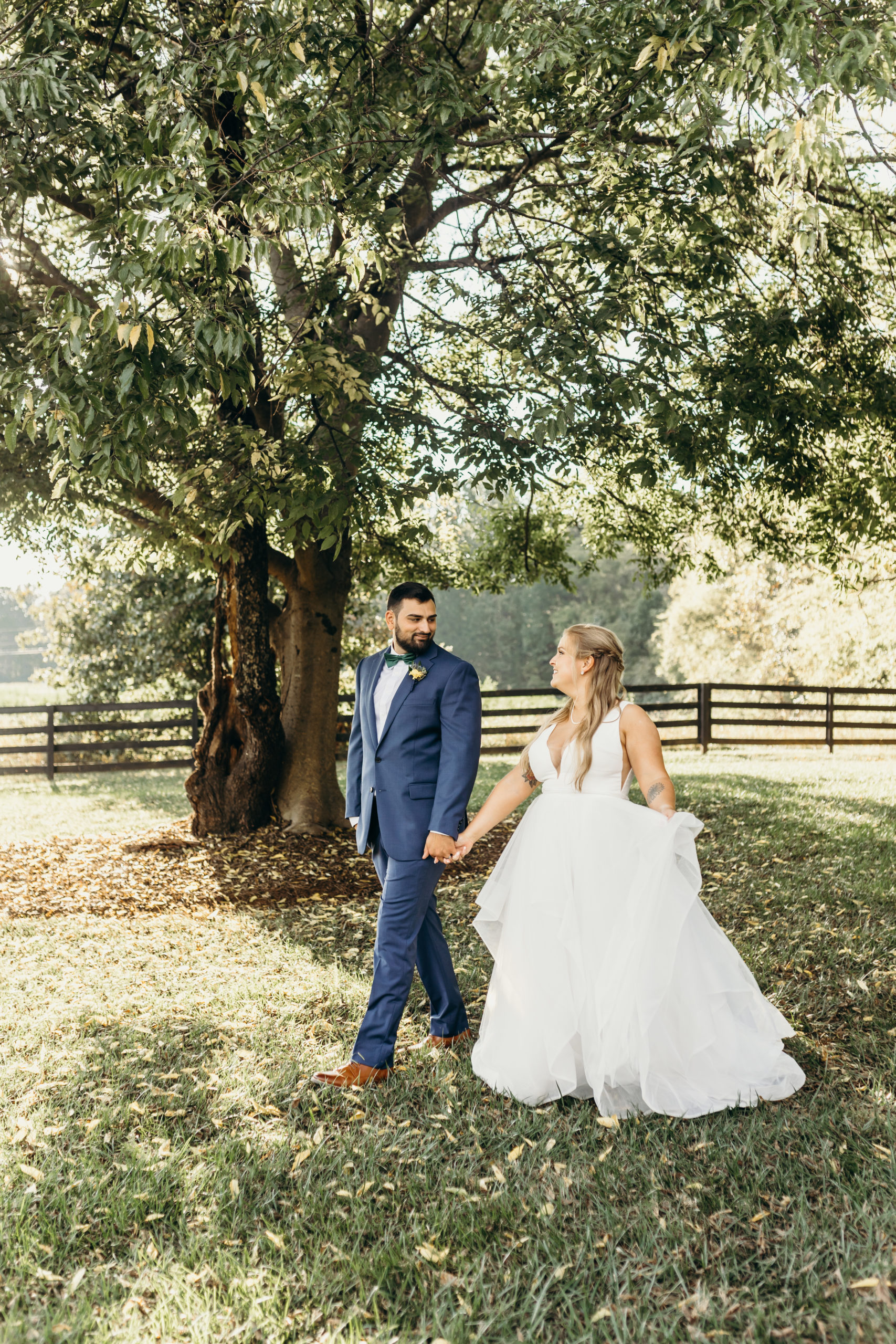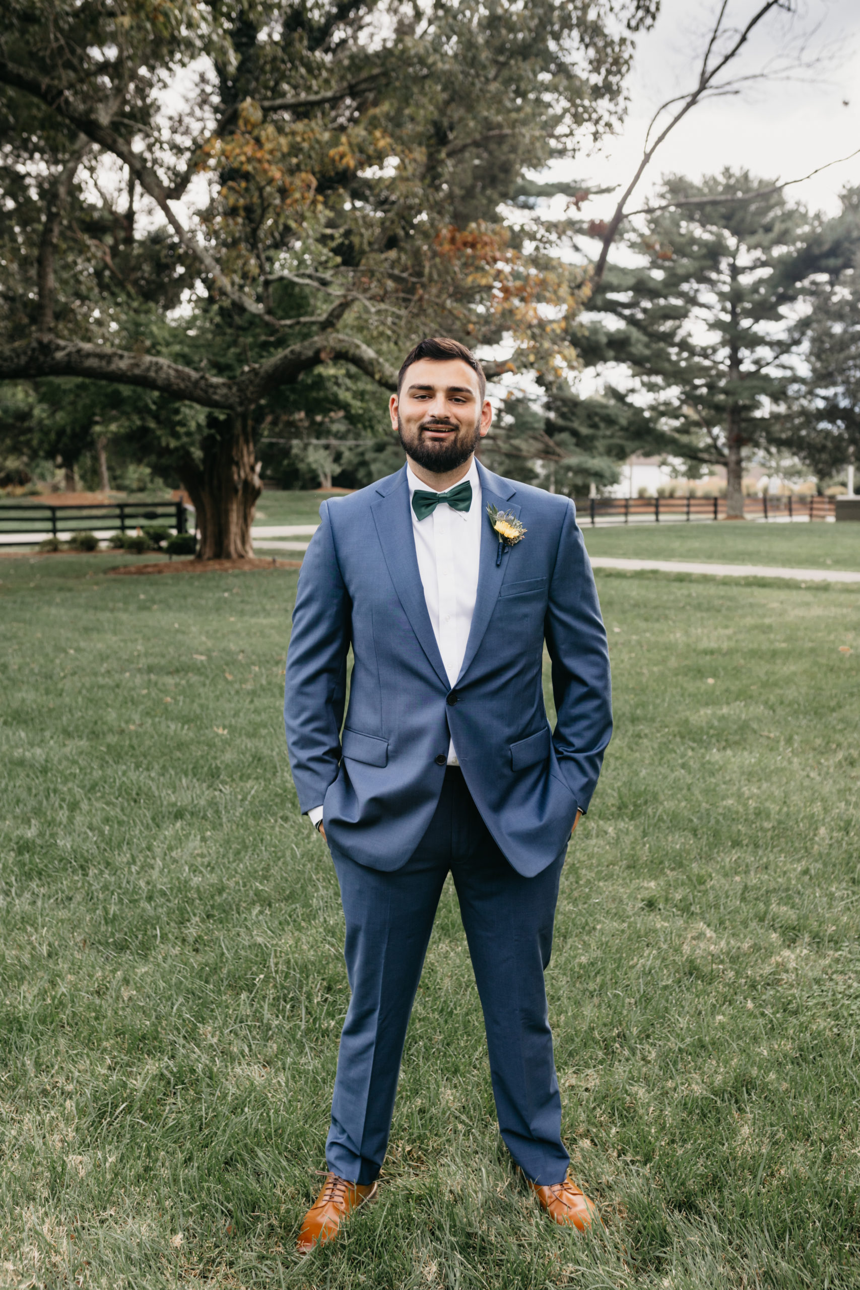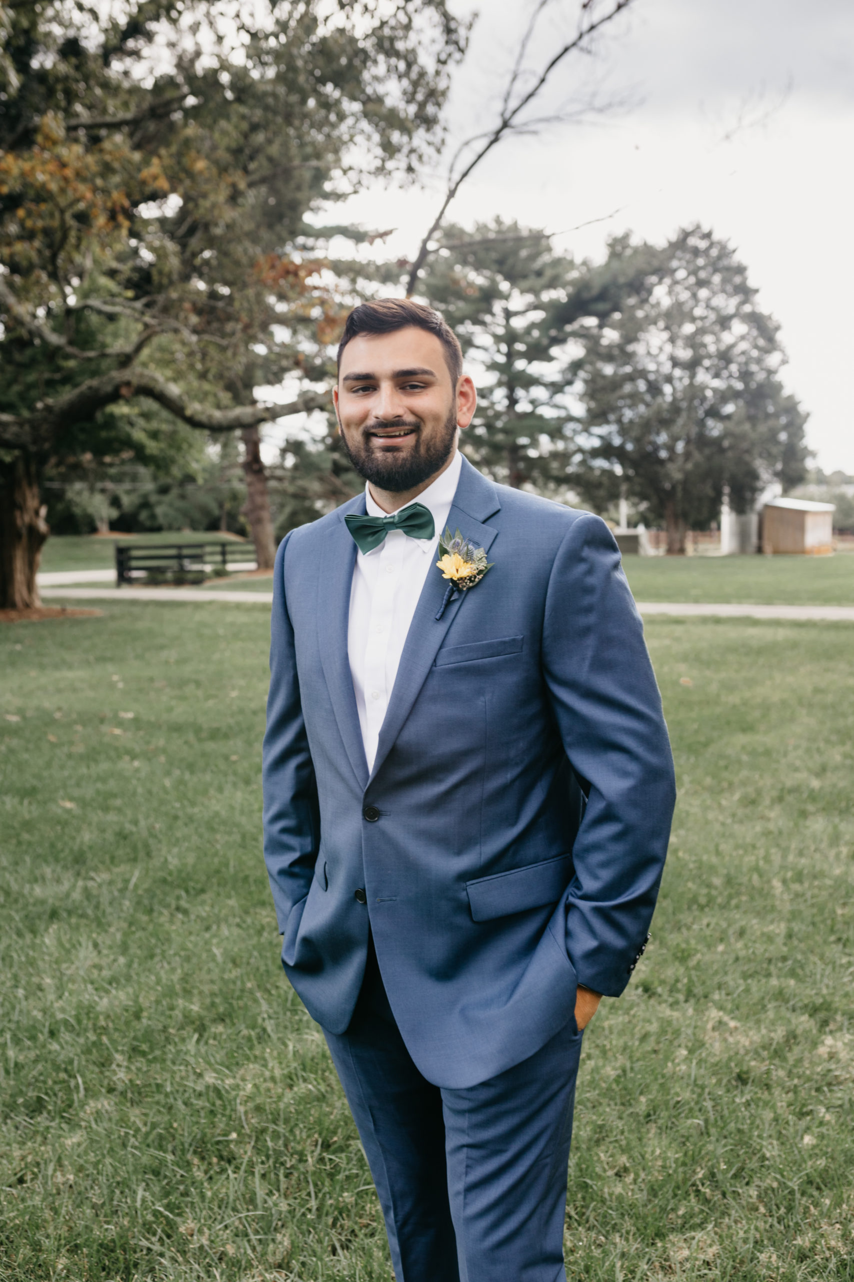 Dom & Ellie chose a classic natural color palette with greens & navy with a pop of color here & there. This evoked such elegance that looked perfectly intentional yet totally effortless. The organic floral design was one of the highlights of the day, featuring lots of florals. Altogether, the details were visually captivating, but none so much as Ellie glam bridal look, which featured the most stunning gown. The best part of the day was seeing Doms face when Ellie walked down the aisle. Their love is so evident & it was a prefect glimpse into their love story!
