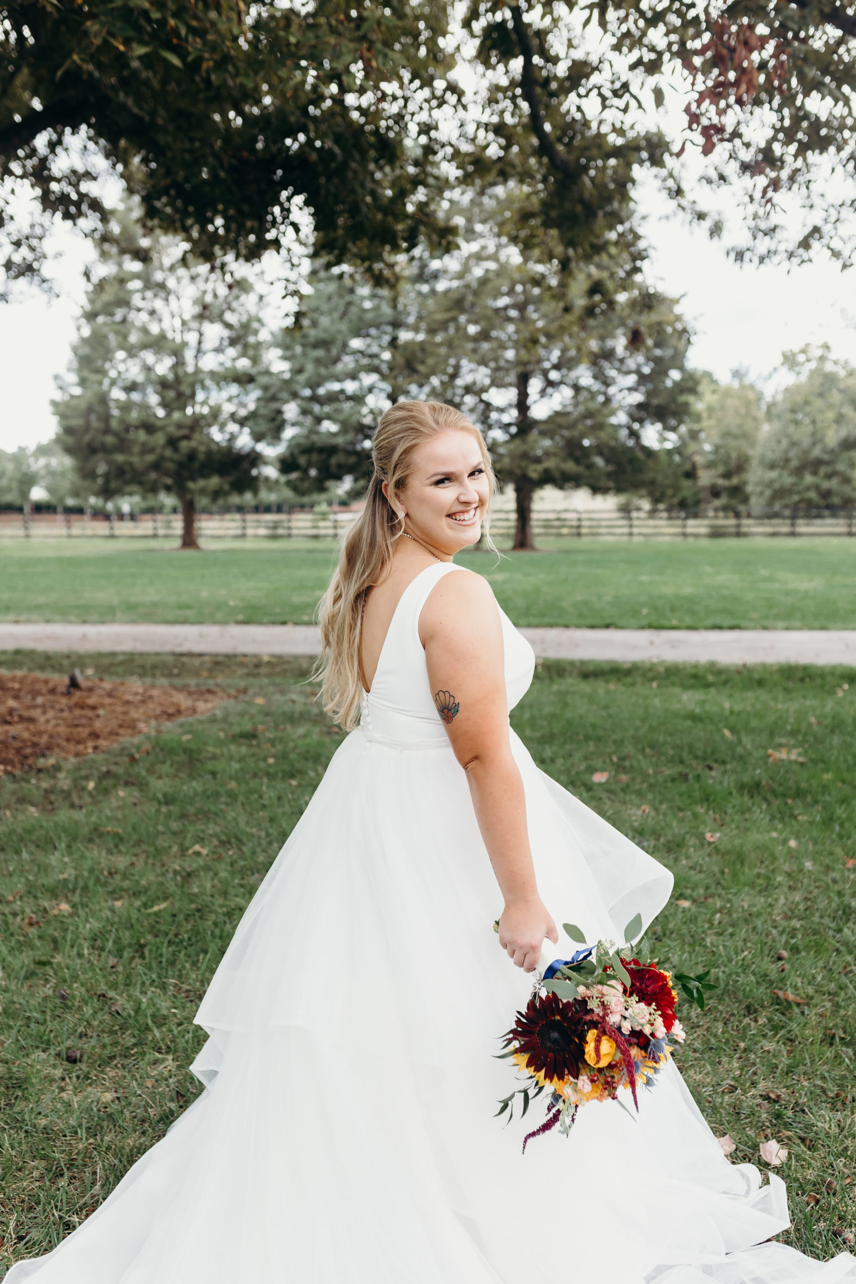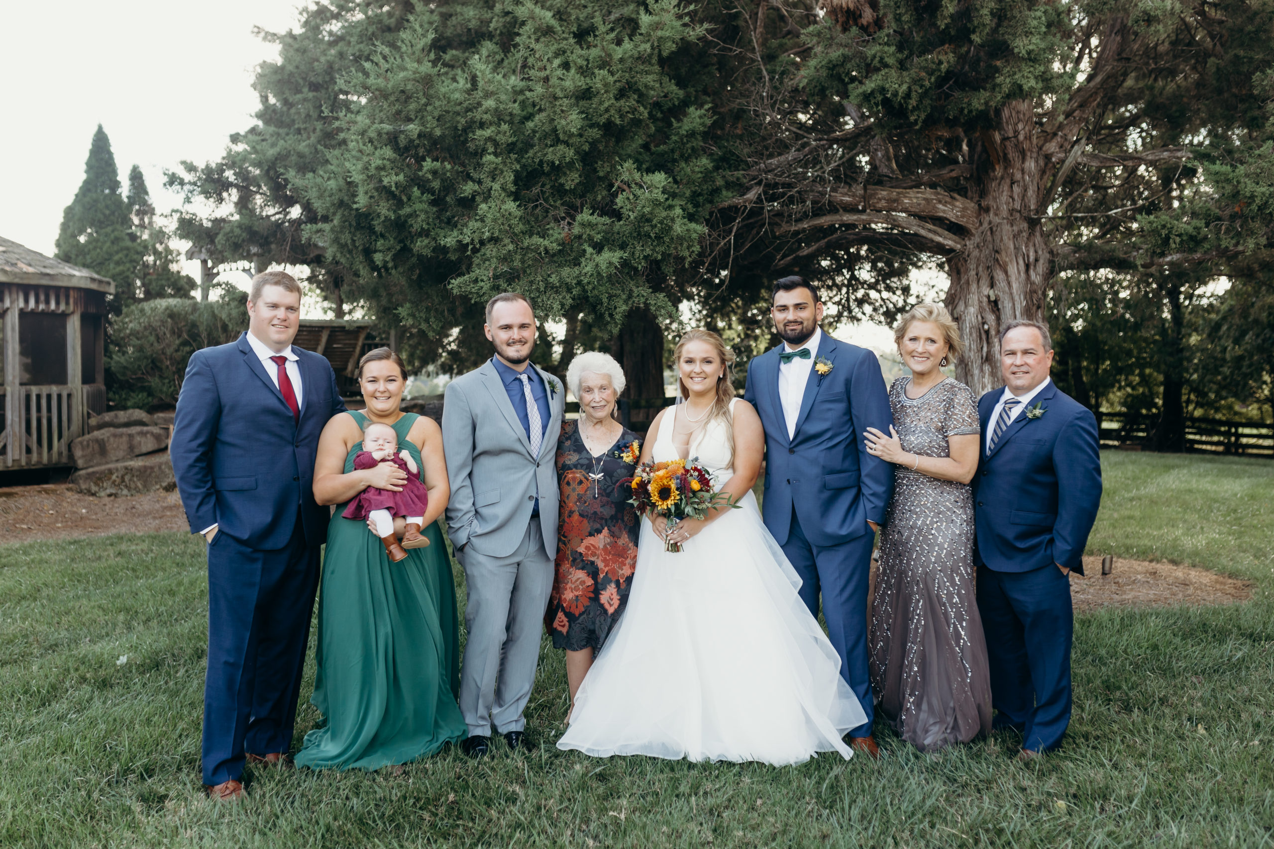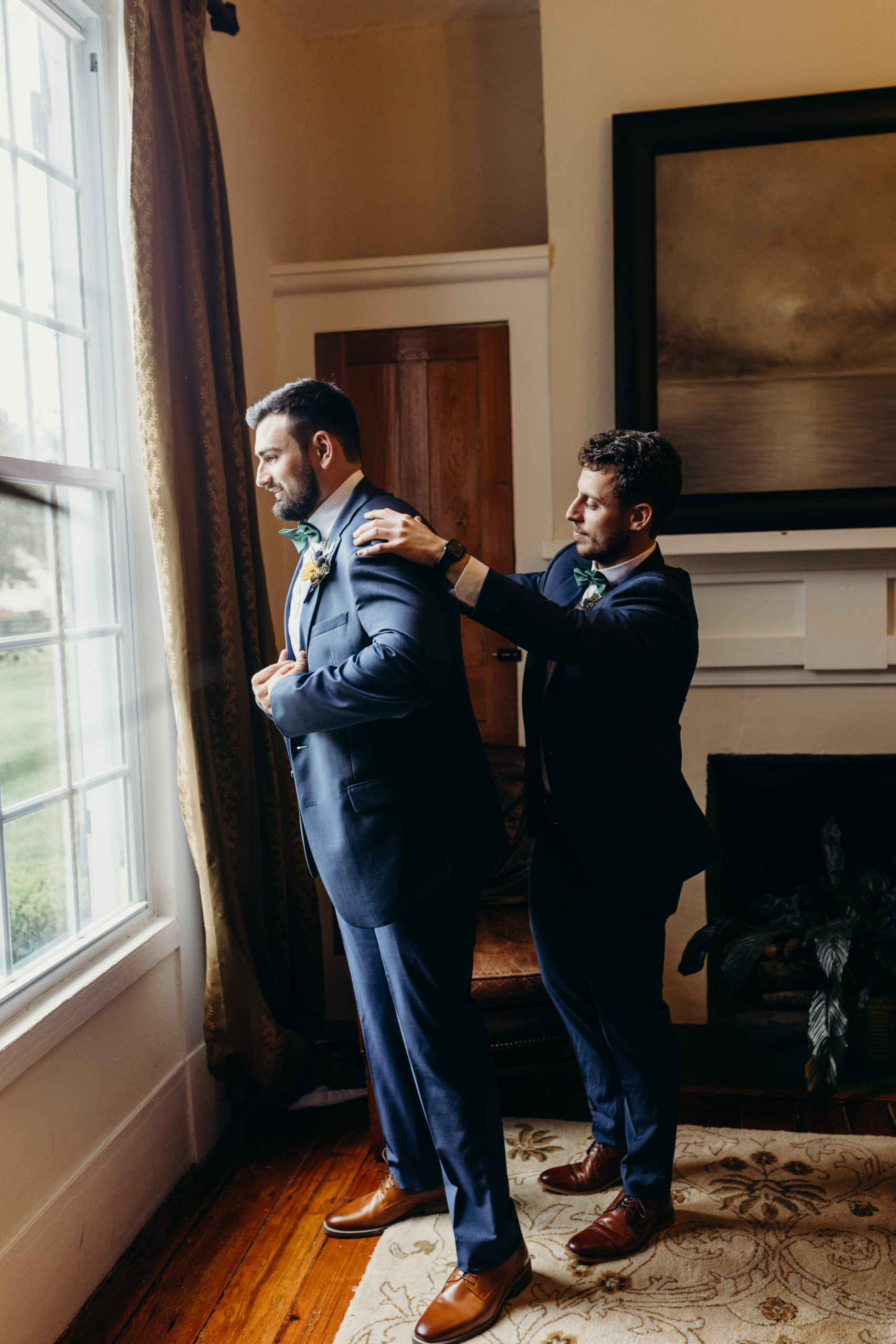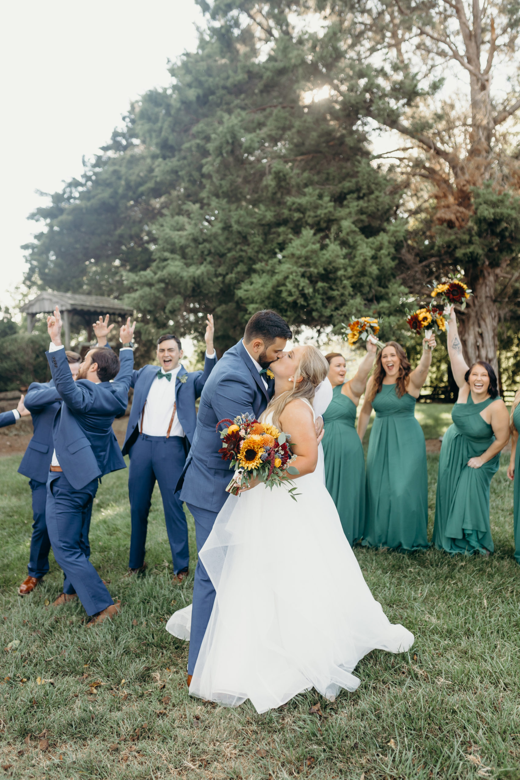 Dom & Ellie chose a classic natural color palette with greens & navy with a pop of color here & there. This evoked such elegance that looked perfectly intentional yet totally effortless. The organic floral design was one of the highlights of the day, featuring lots of florals. Altogether, the details were visually captivating, but none so much as Ellie glam bridal look, which featured the most stunning gown. The best part of the day was seeing Doms face when Ellie walked down the aisle. Their love is so evident & it was a prefect glimpse into their love story!