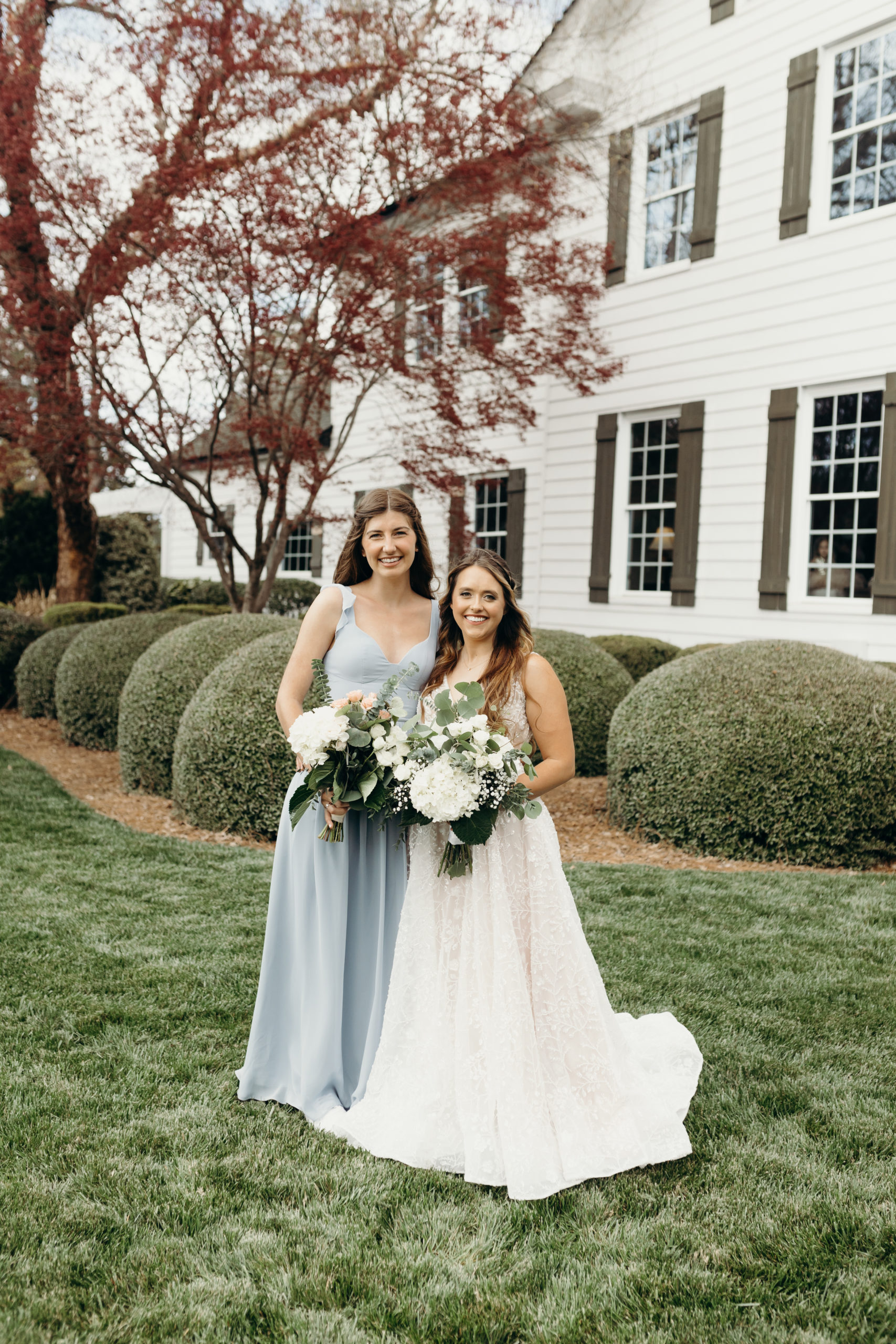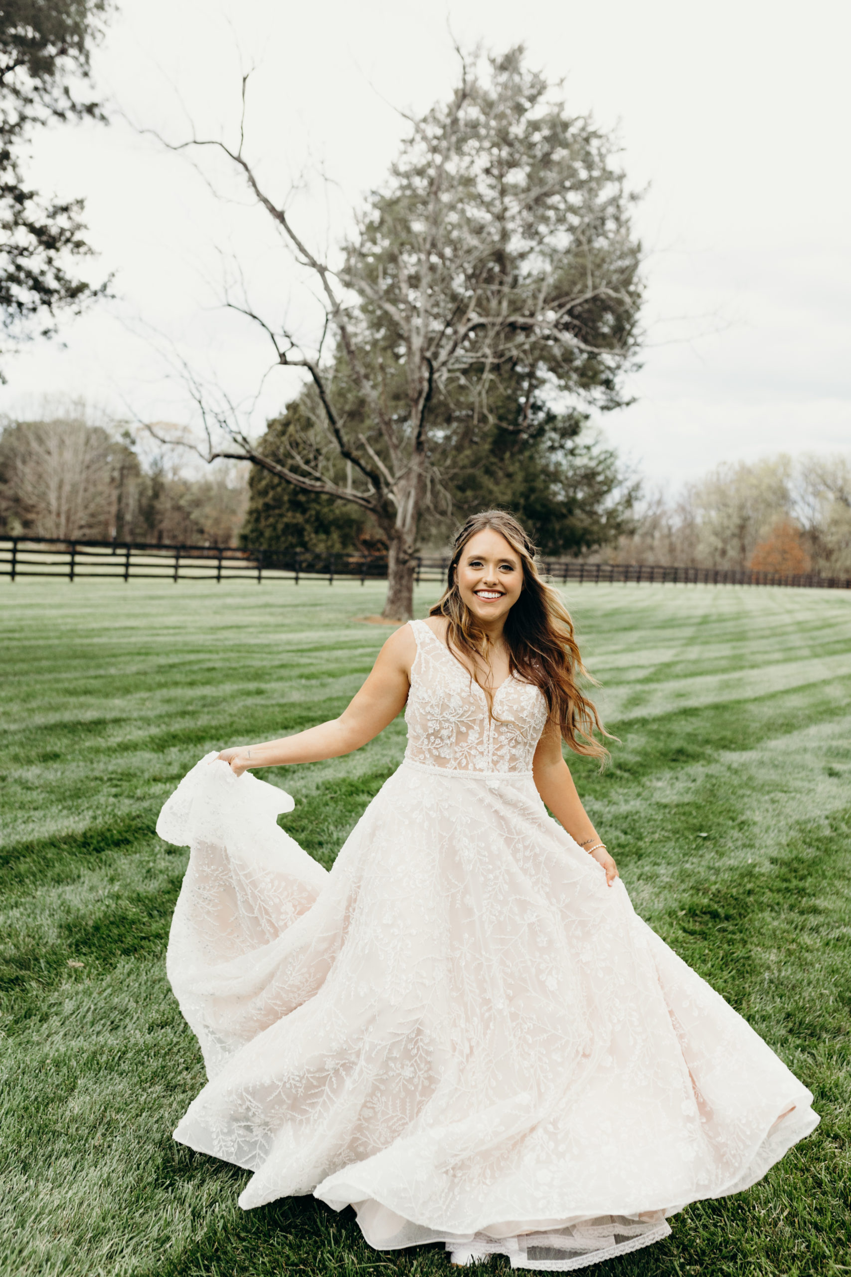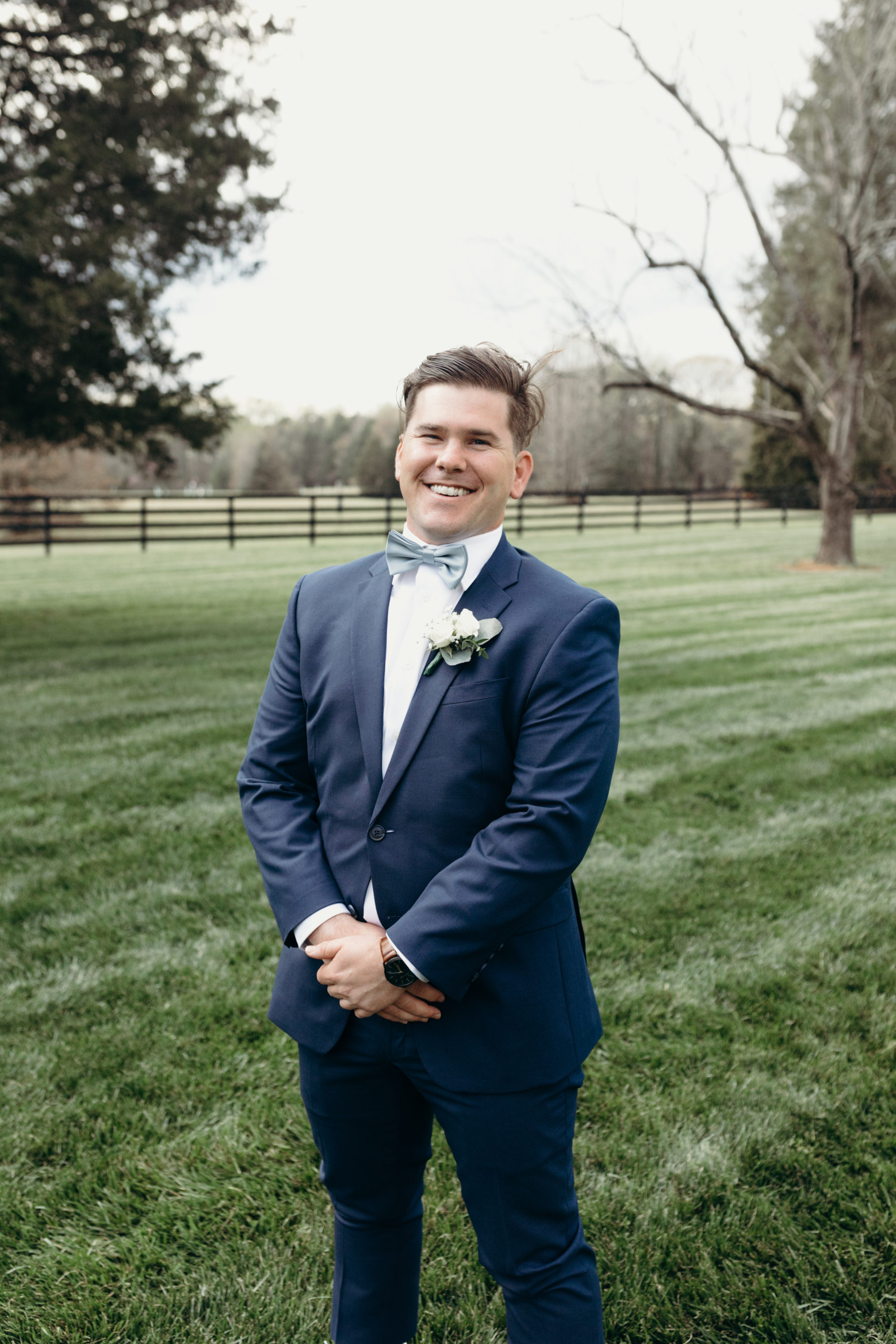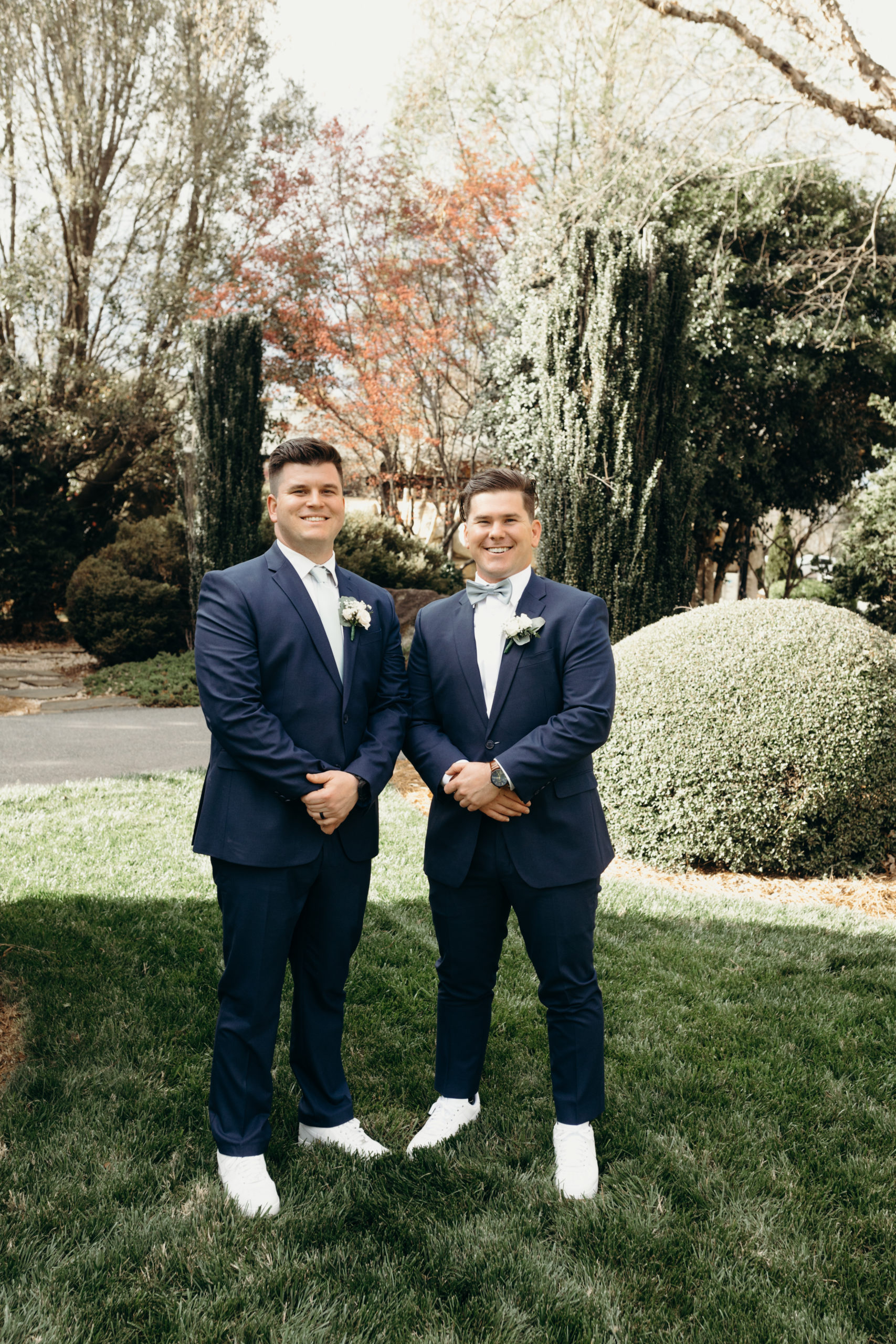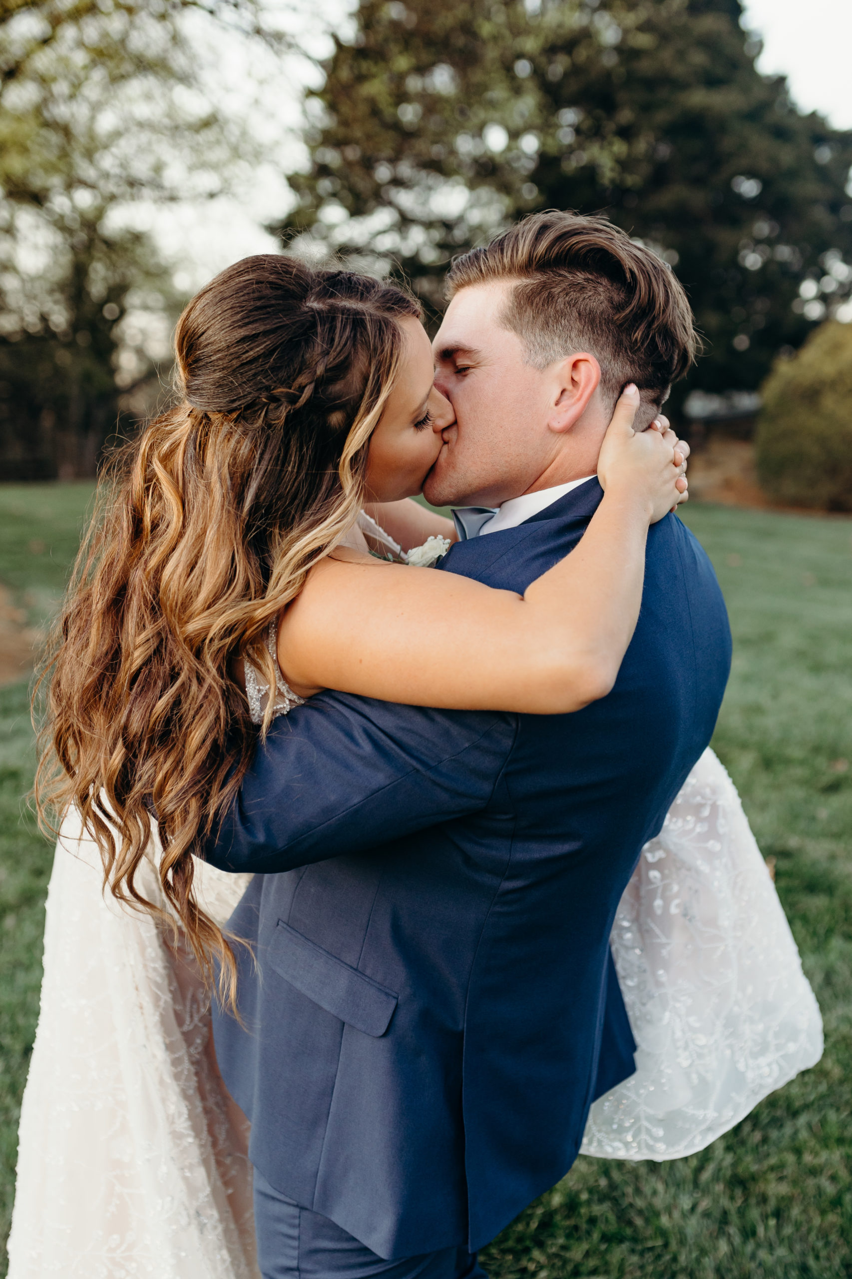Danny & Sammi Jo chose a classic natural color palette with blues & navy. This evoked such elegance that looked perfectly intentional yet totally effortless. The organic floral design was one of the highlights of the day, featuring lots of lush greenery. Altogether, the details were visually captivating, but none so much as Sammi’s glam bridal look, which featured the most stunning gown & the cutest Air Force 1’s.