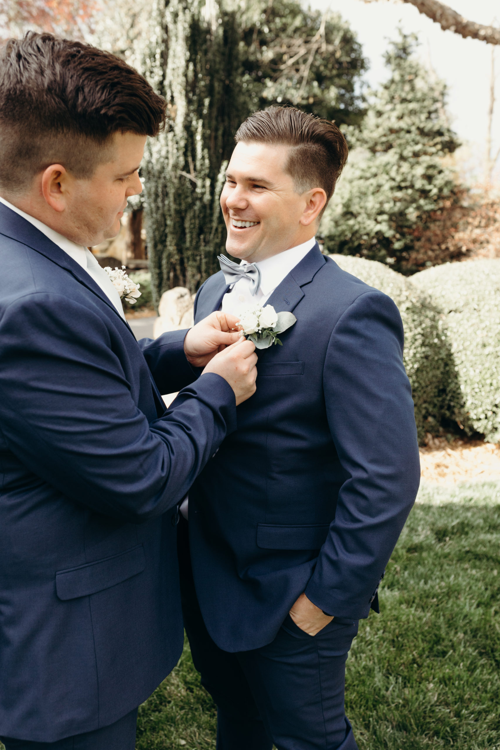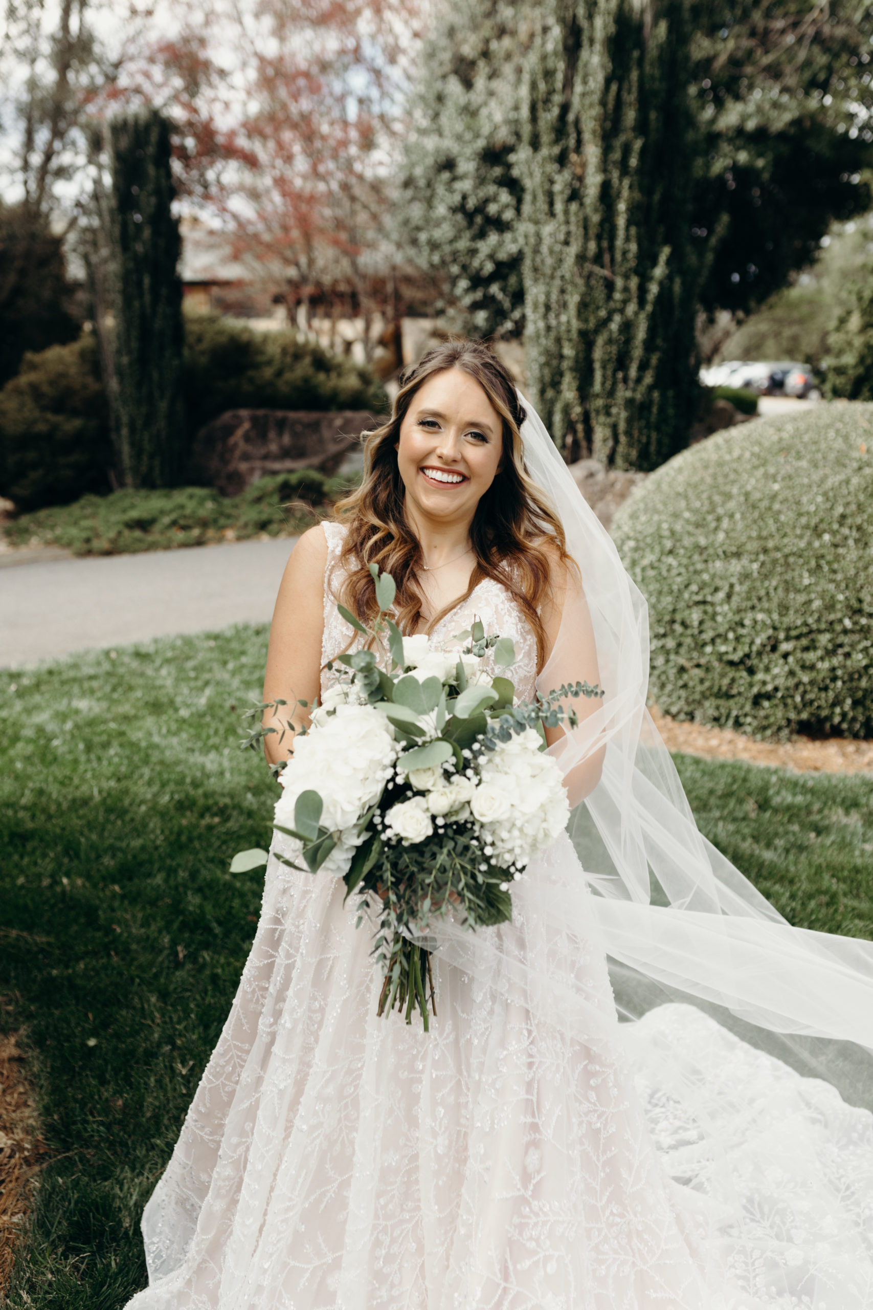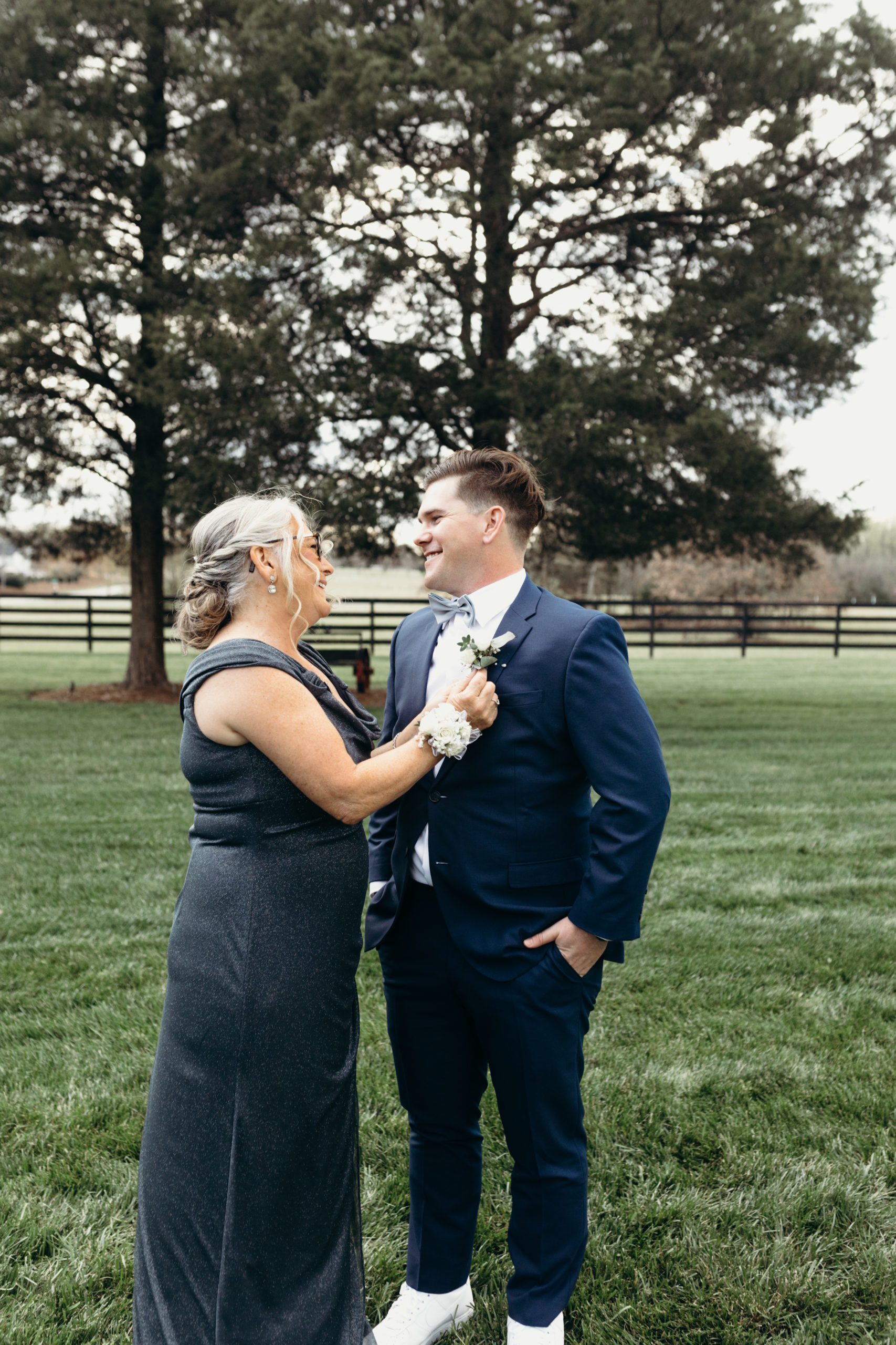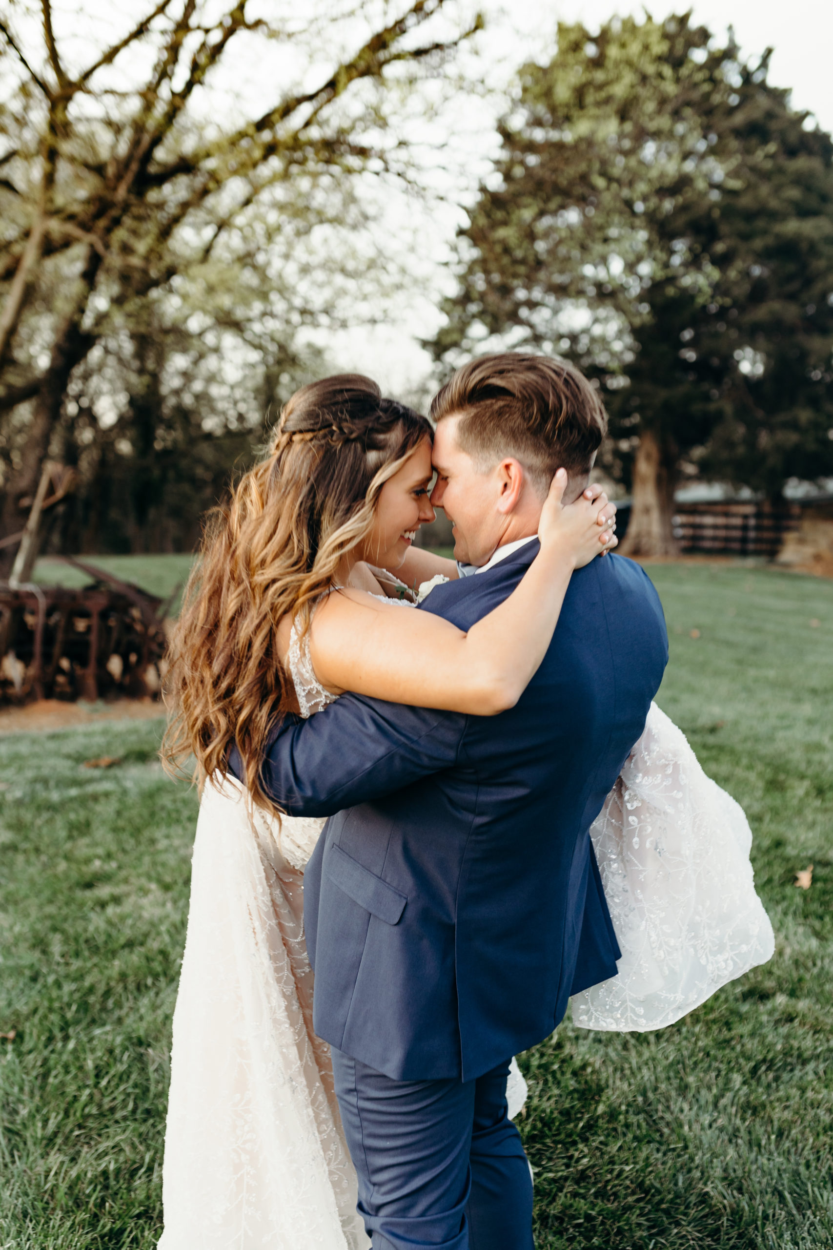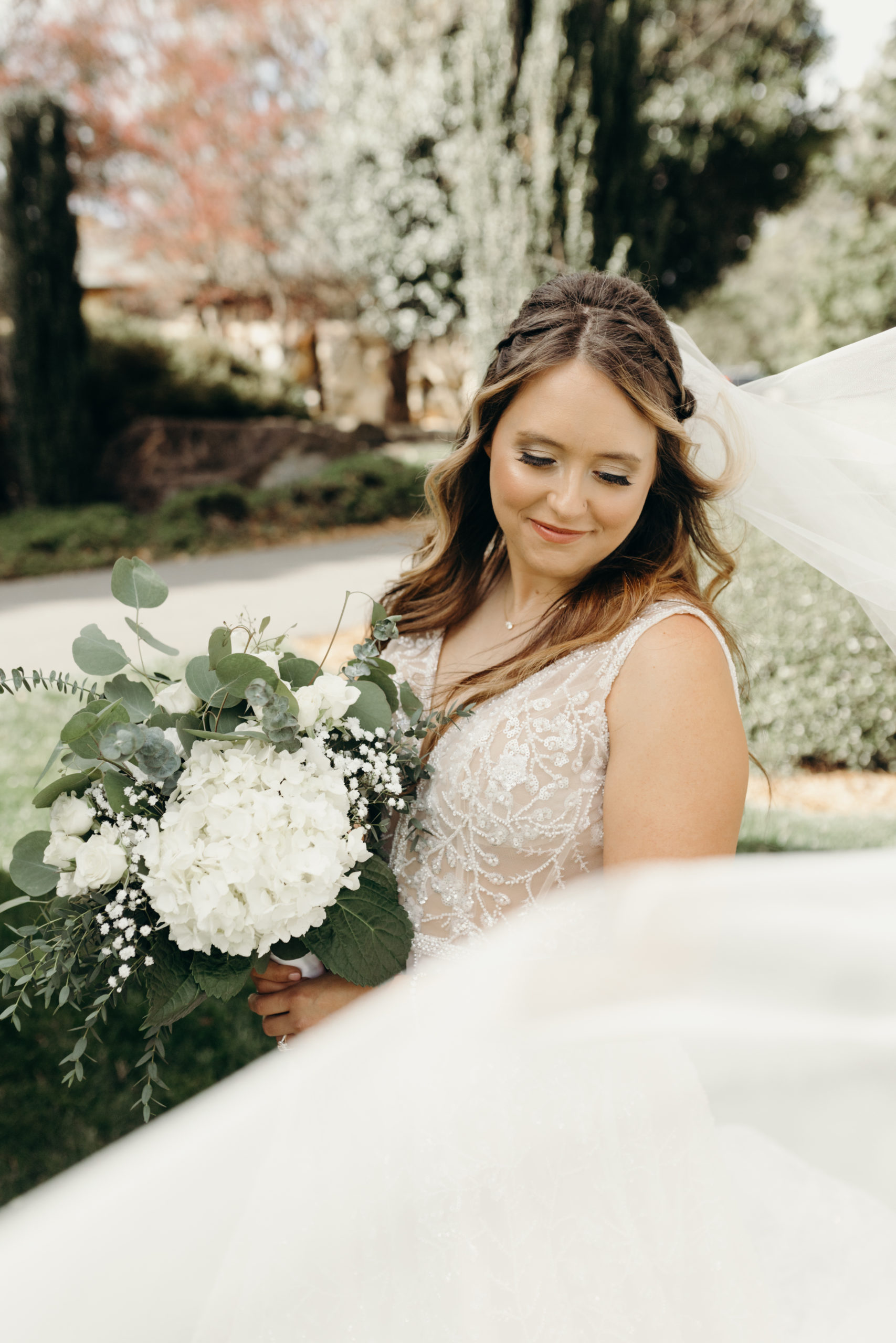 Danny & Sammi Jo chose a classic natural color palette with blues & navy. This evoked such elegance that looked perfectly intentional yet totally effortless. The organic floral design was one of the highlights of the day, featuring lots of lush greenery. Altogether, the details were visually captivating, but none so much as Sammi’s glam bridal look, which featured the most stunning gown & the cutest Air Force 1’s.