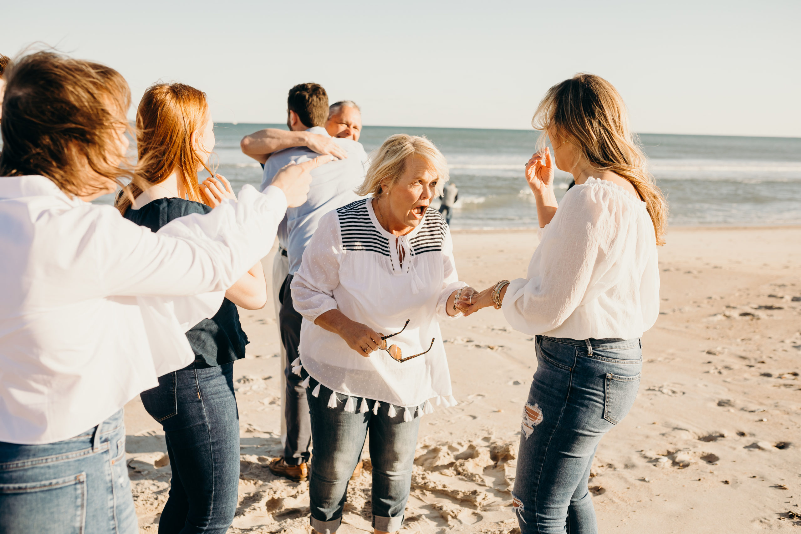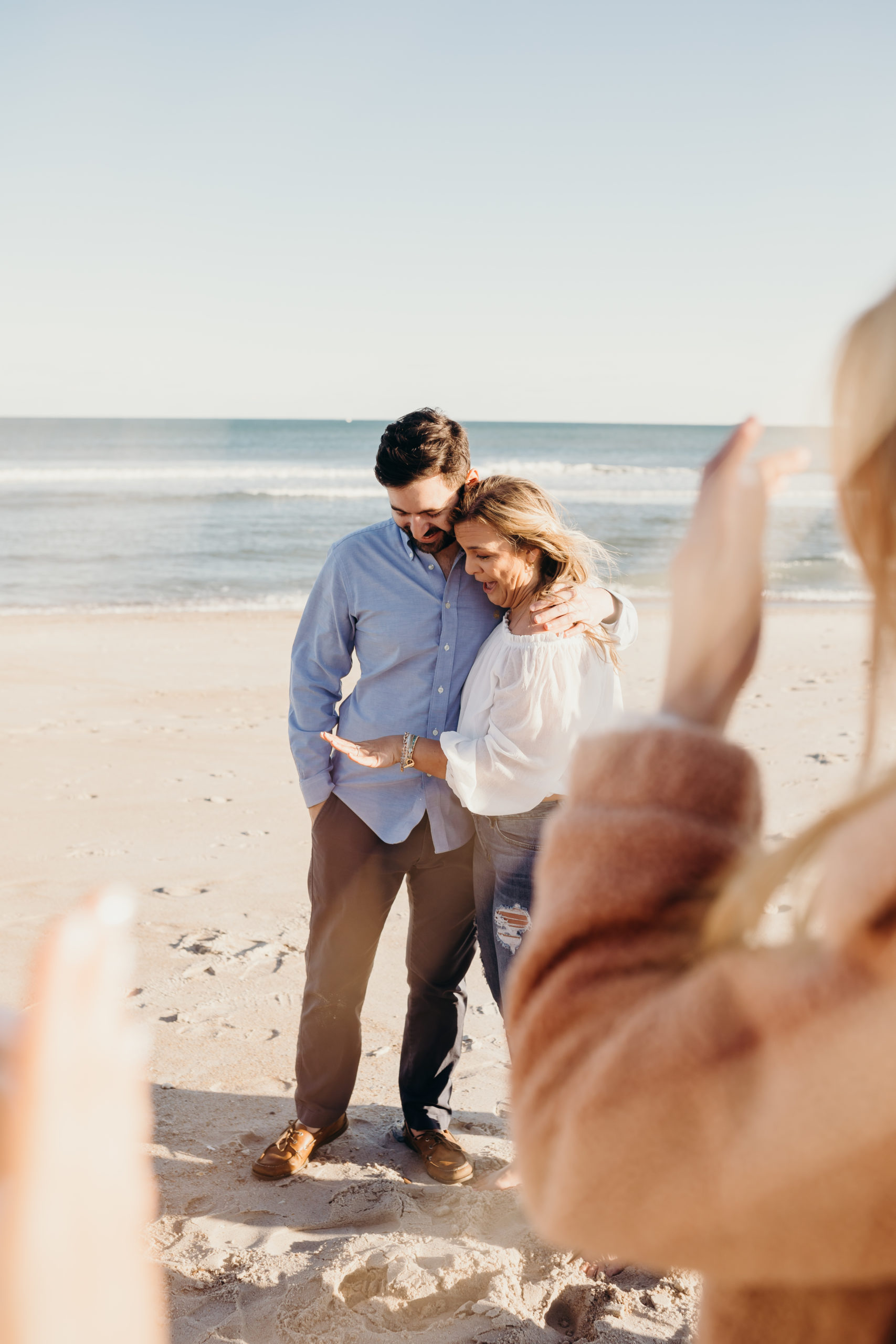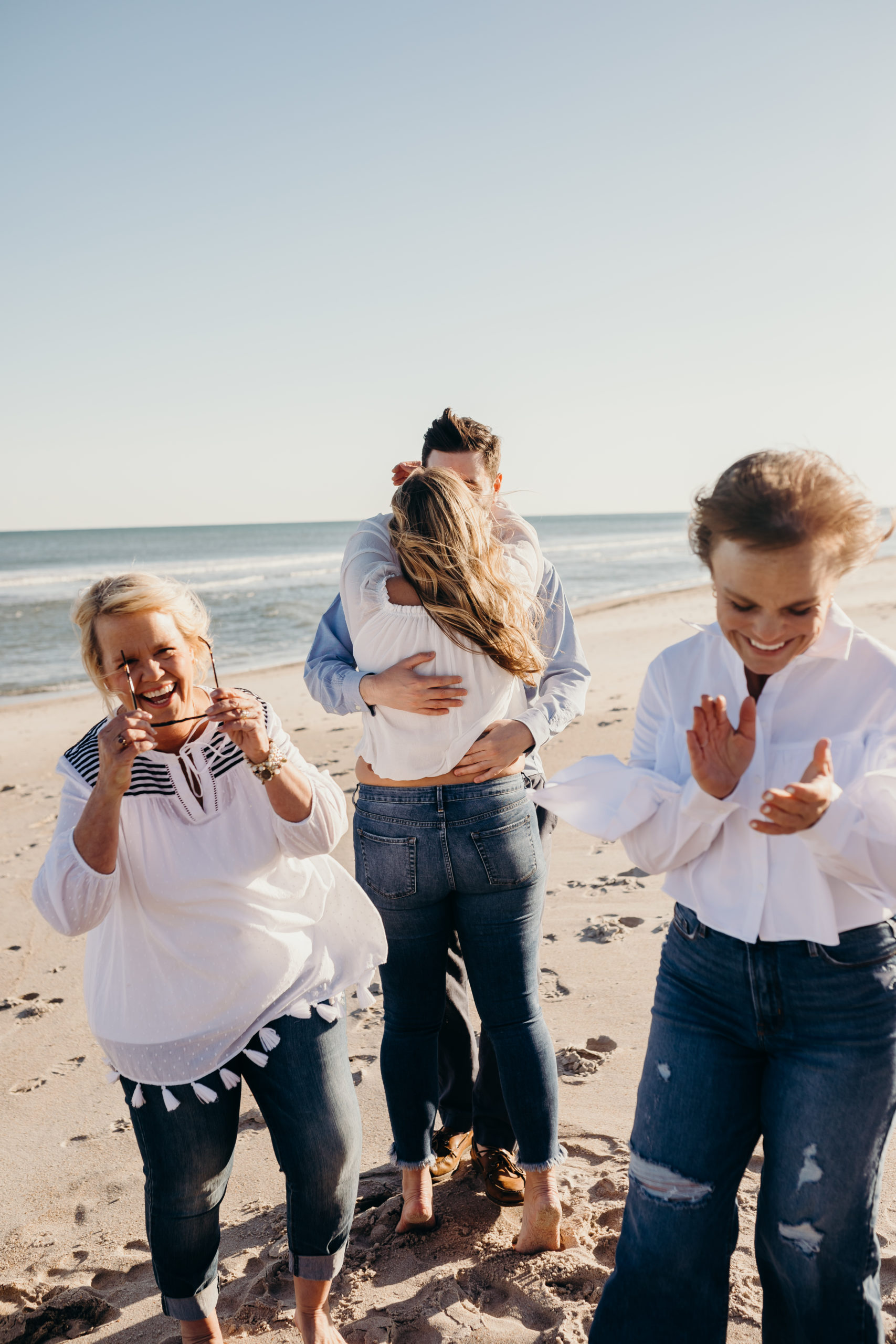 I loved photographing these surprise proposal pictures on Topsail Beach for Matt & Chelsey. Matt did an amazing job putting together a sweet surprise for his fiancé! He coordinated to propose on the beach where their families spend a lot of time, which made it extra special! Following a photoshoot with the Dodson Family. With all of their family watching from a distance, I had Matt & Chelsey walk down the beach & then Matt got down on one knee & ask Chelsey to spend forever with him. It was incredible & so exciting!