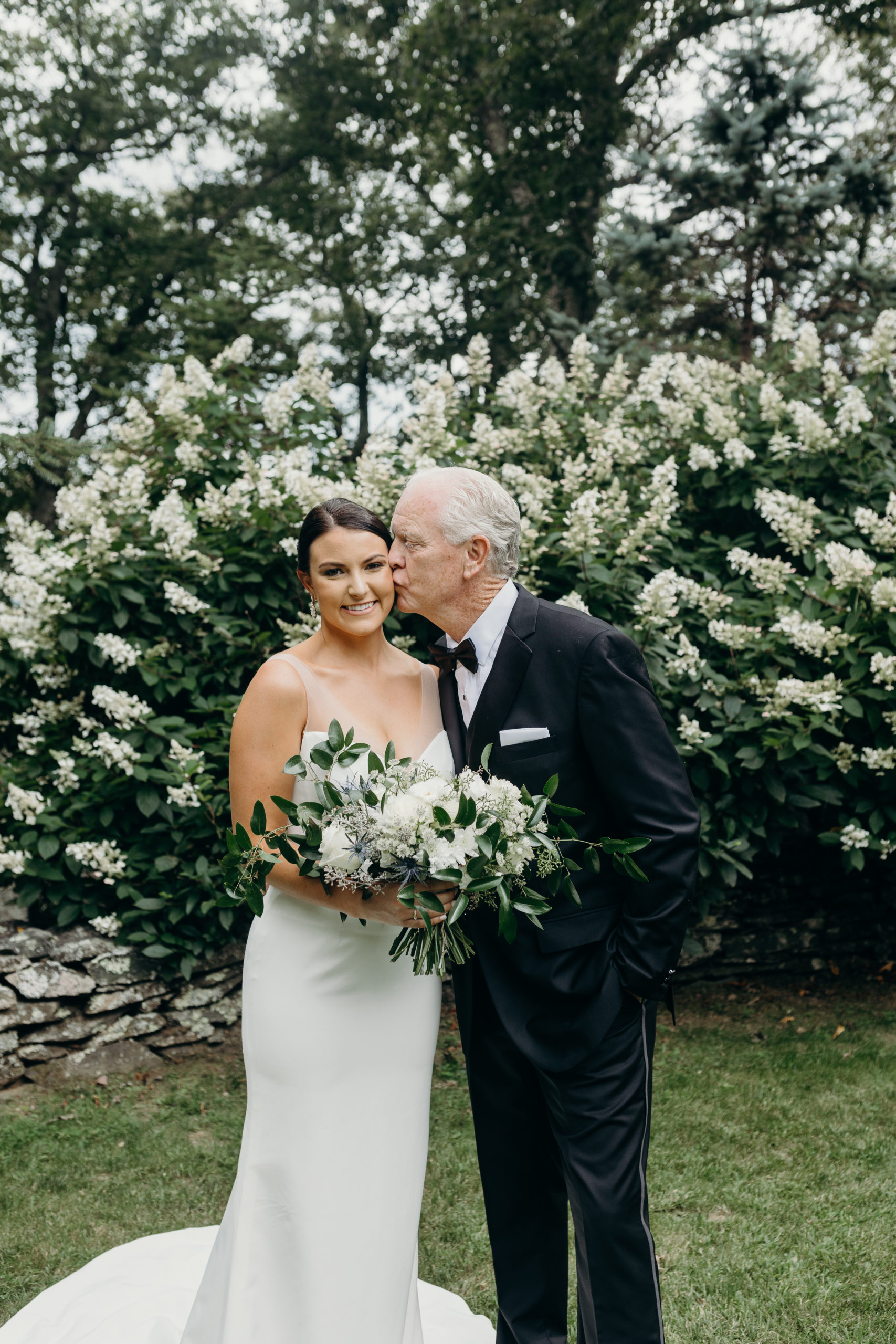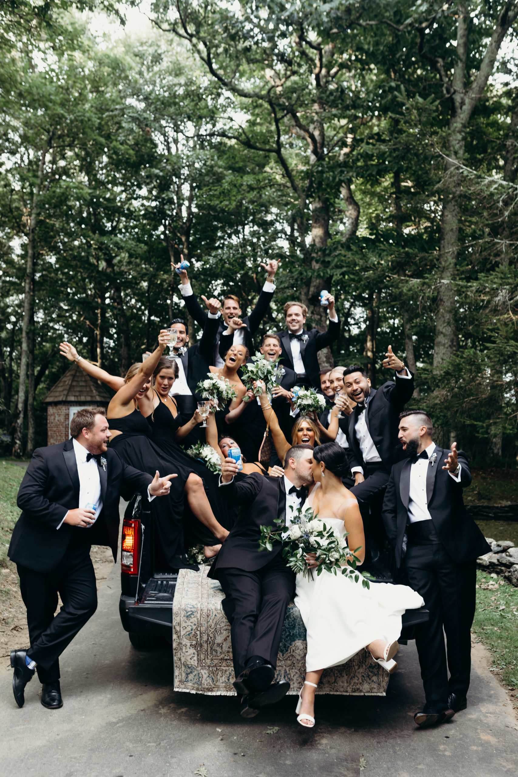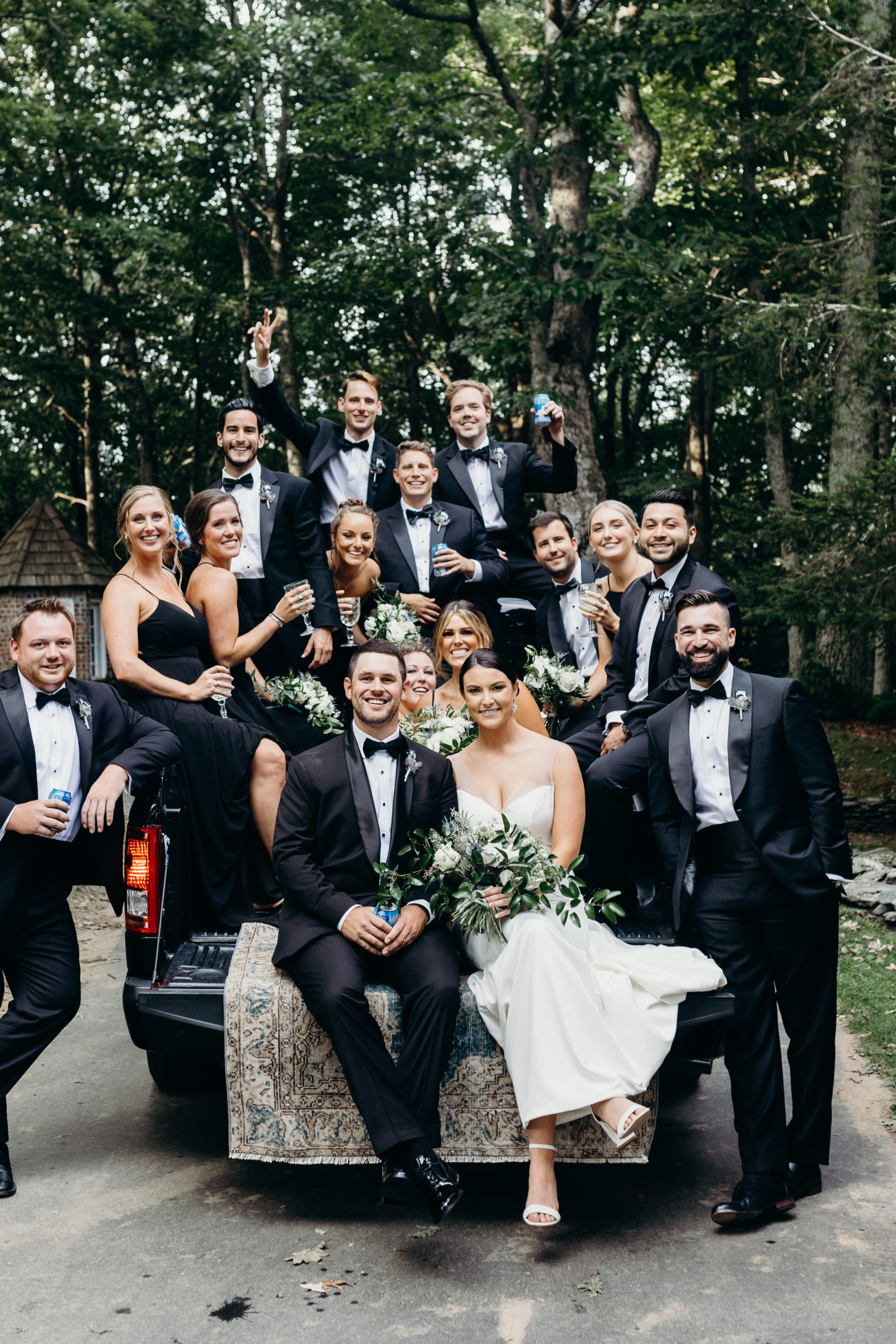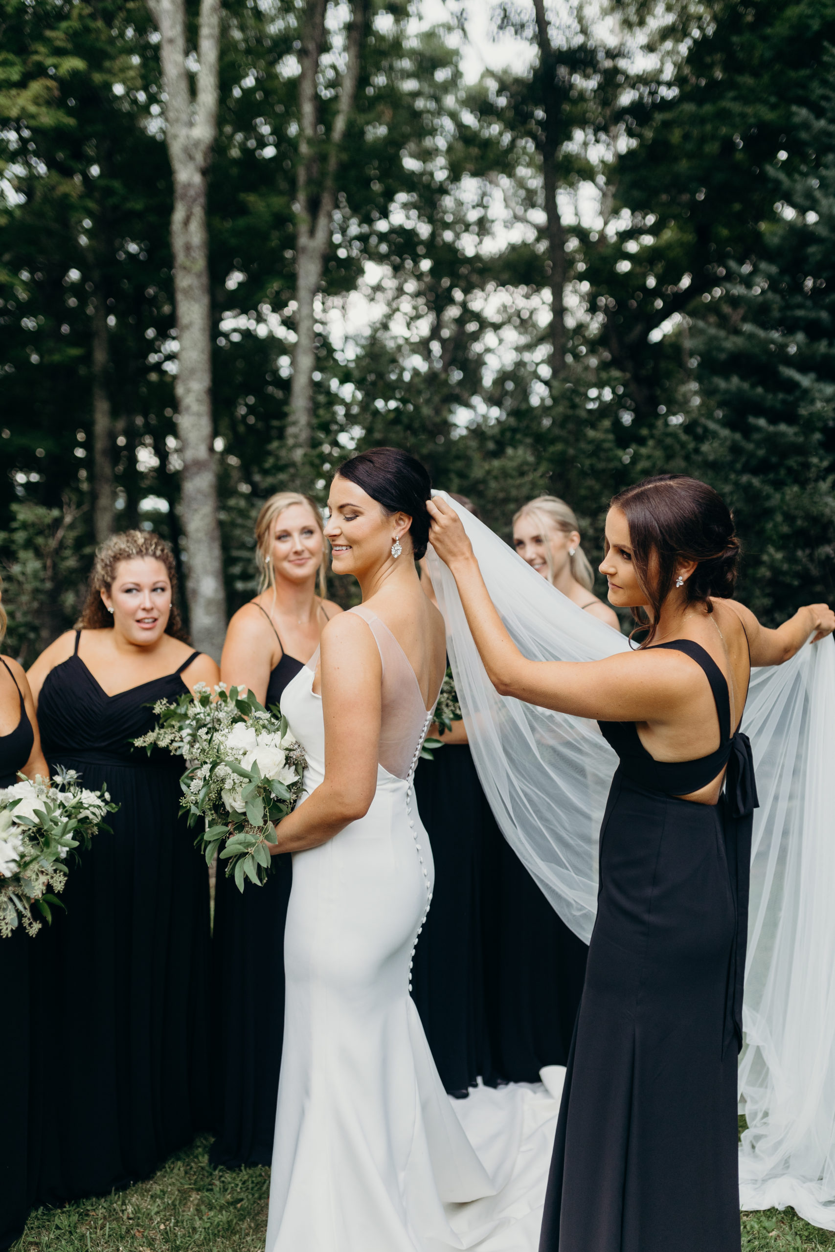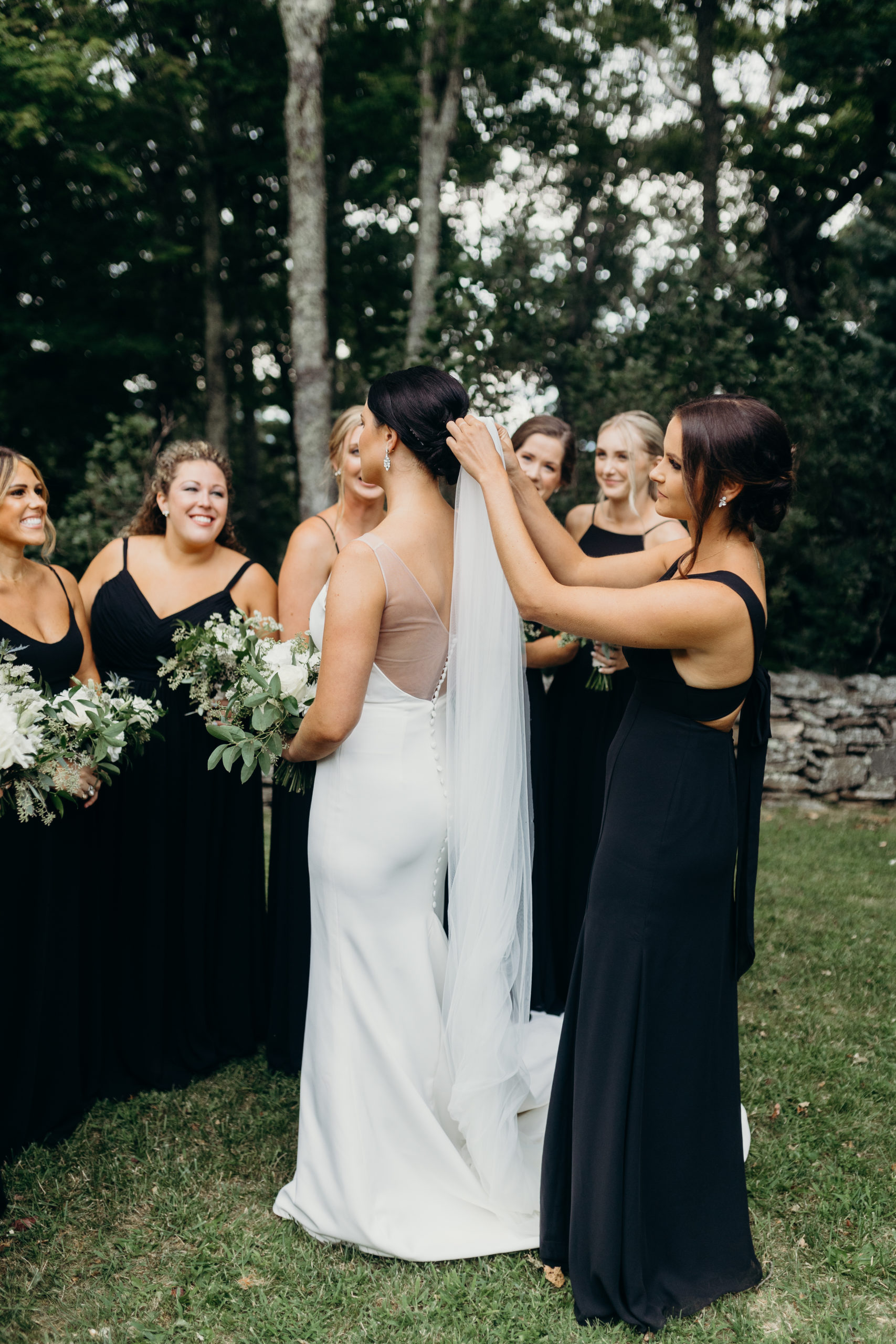Davis & Natalie chose the classic Black & White color palette & lots of greenery with the florals. This evoked such elegance that looked perfectly intentional yet totally effortless. The organic floral design was one of the highlights of the day, featuring lots of lush greenery. Altogether, the details were visually captivating. But none as much as Natalies glam bridal look, which featured the most stunning gown. Her bridesmaids were so full of emotion when they saw Natalie for the first time. This will be a moment that is remembered forever.
