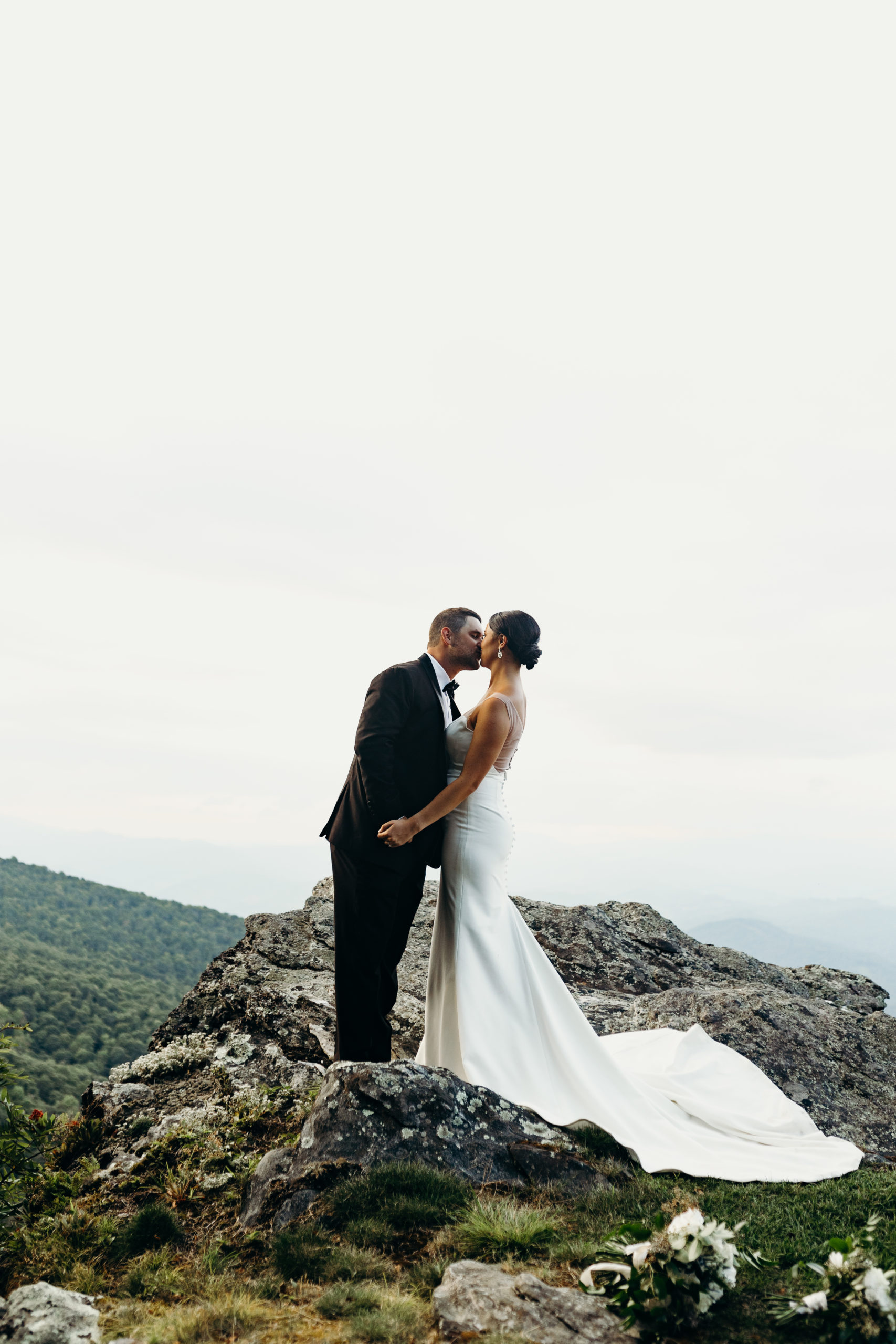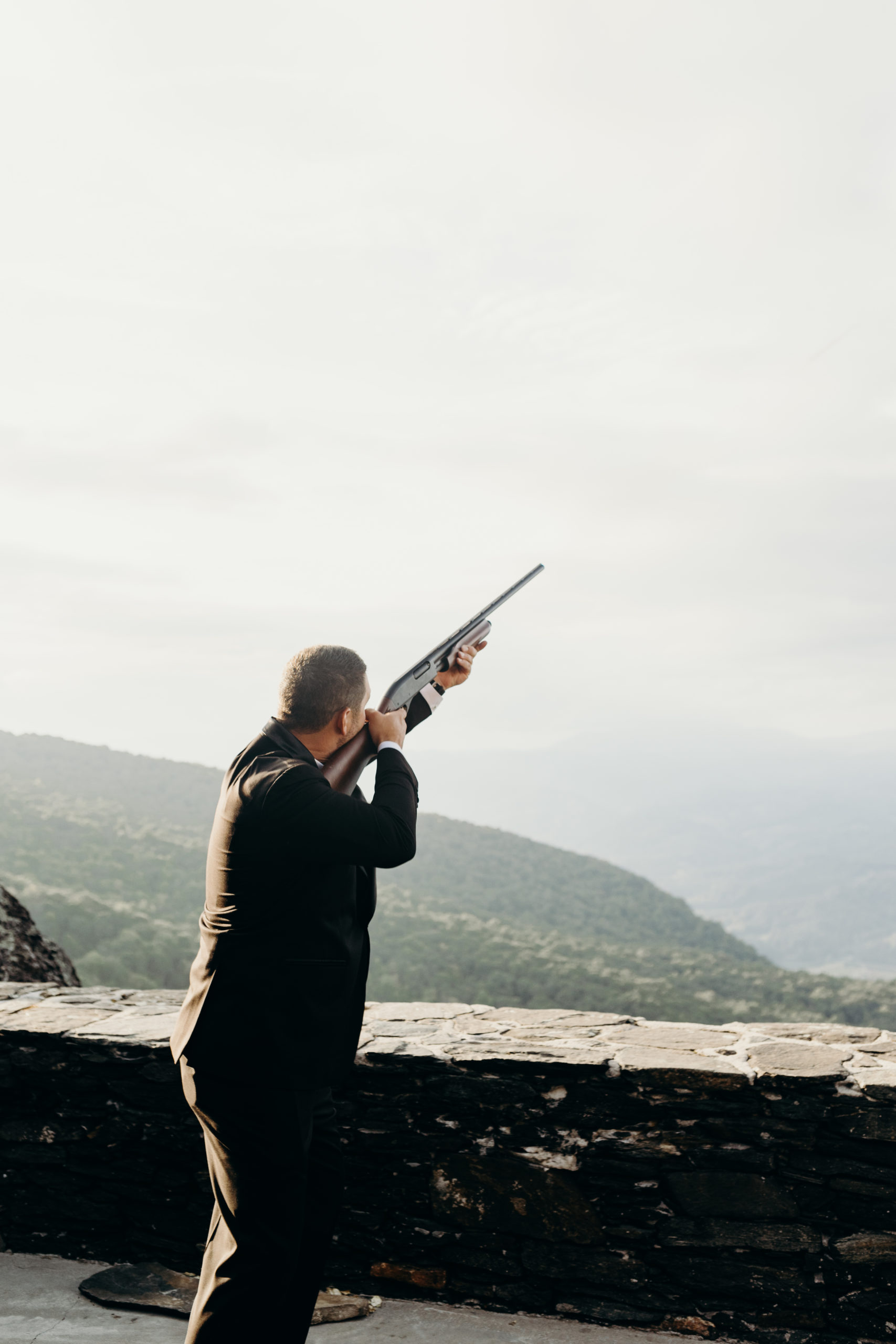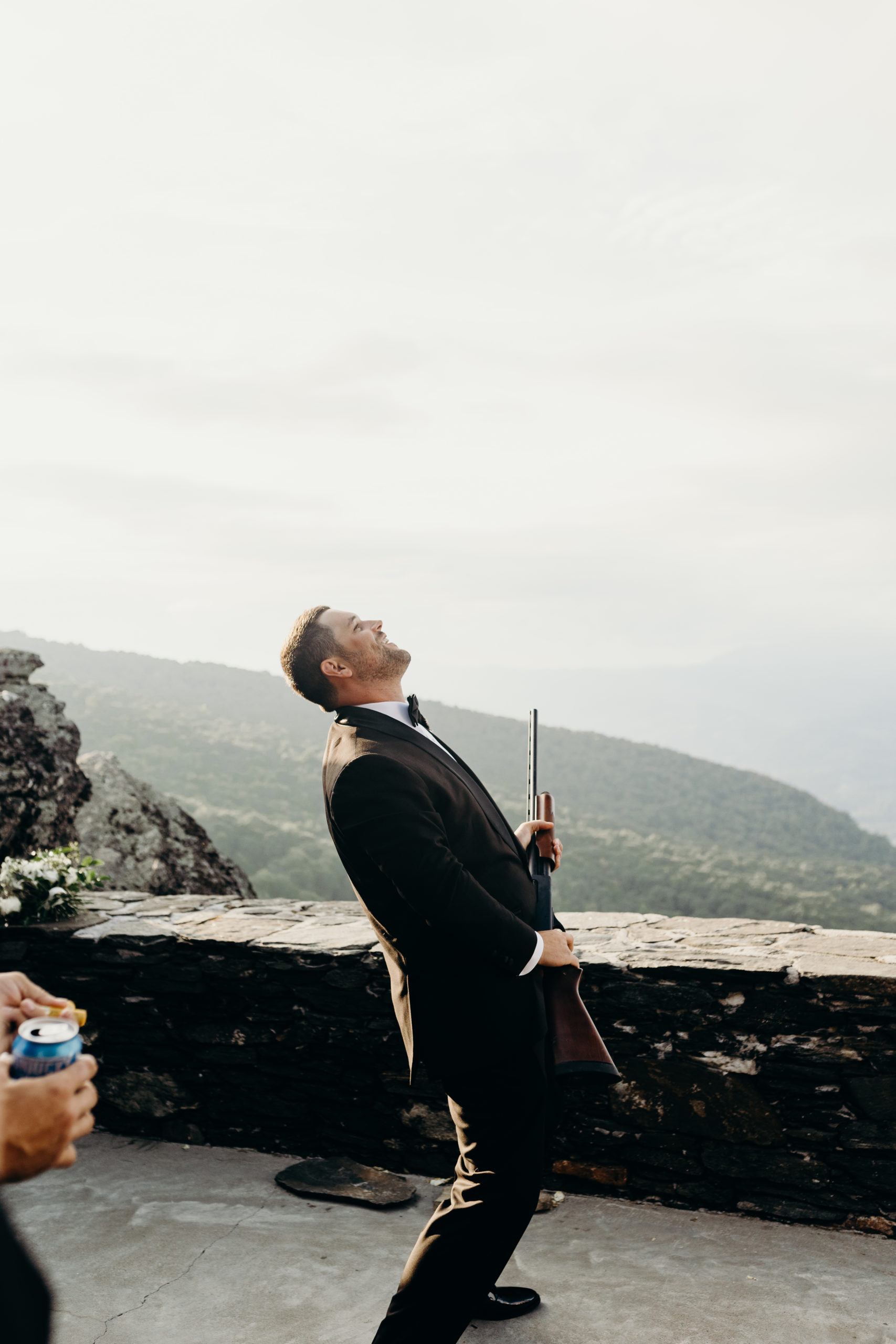 The best part of their day was when Natalie walked down the aisle. Davis & Natalie planned to do a first look but then decided to wait. Which made the moment Davis saw Natalie so sweet. Their reception was beautiful full of emotion from family & such a dance party with their live band! They had the chance where guest could walk up to the overlook & that was great. Then Davis & Natalie shot a couple clays over the mountain which was so them & such a fun moment!