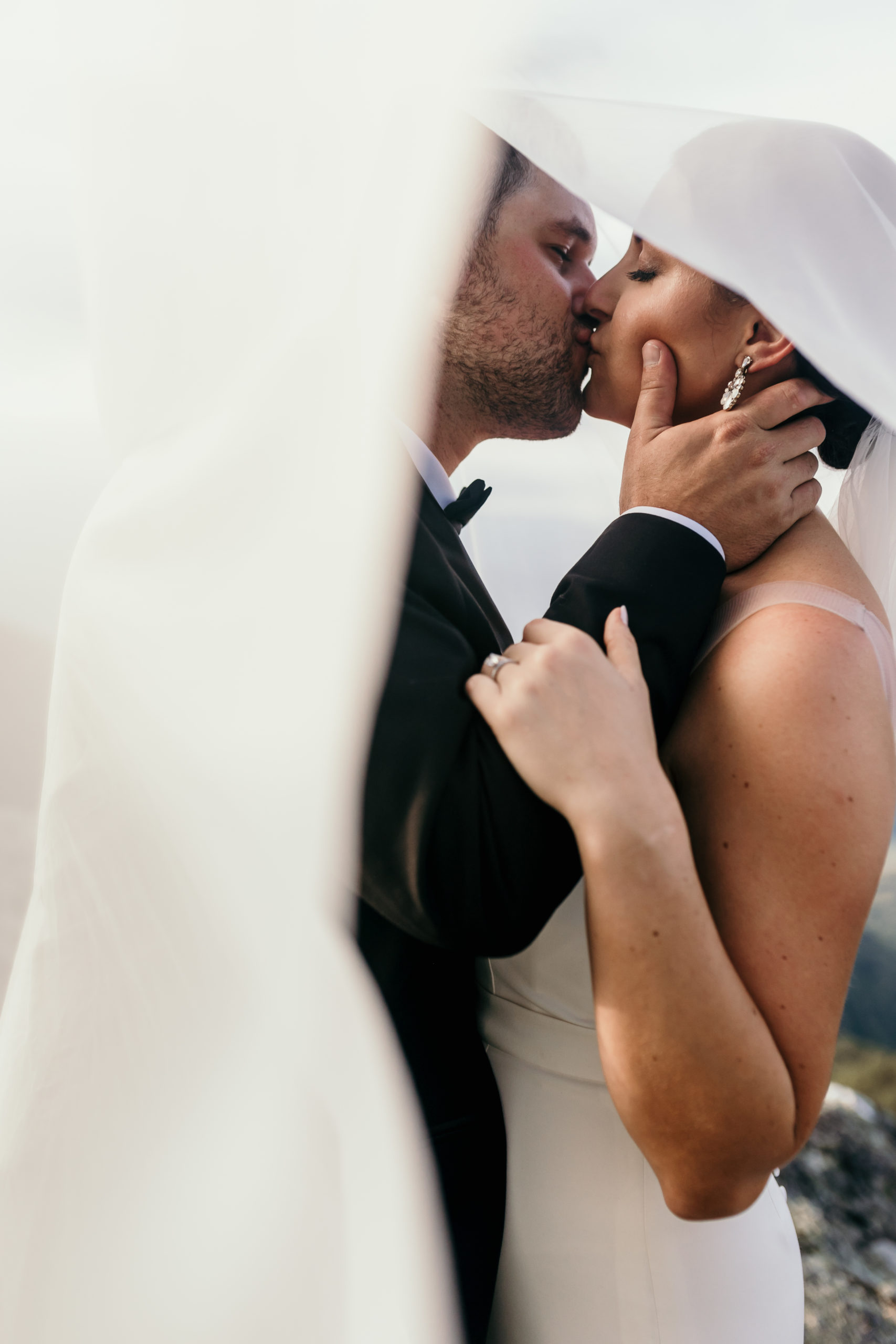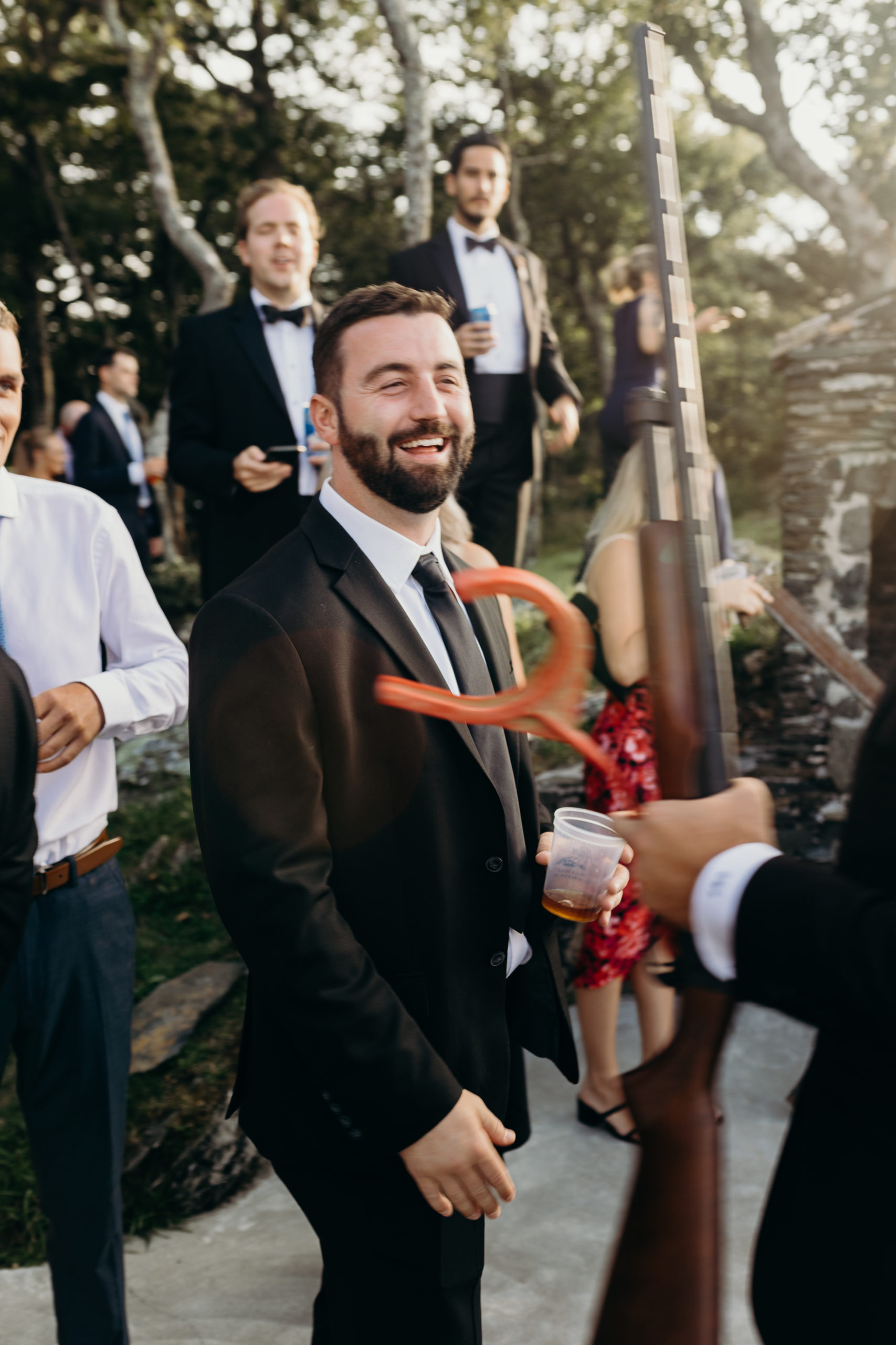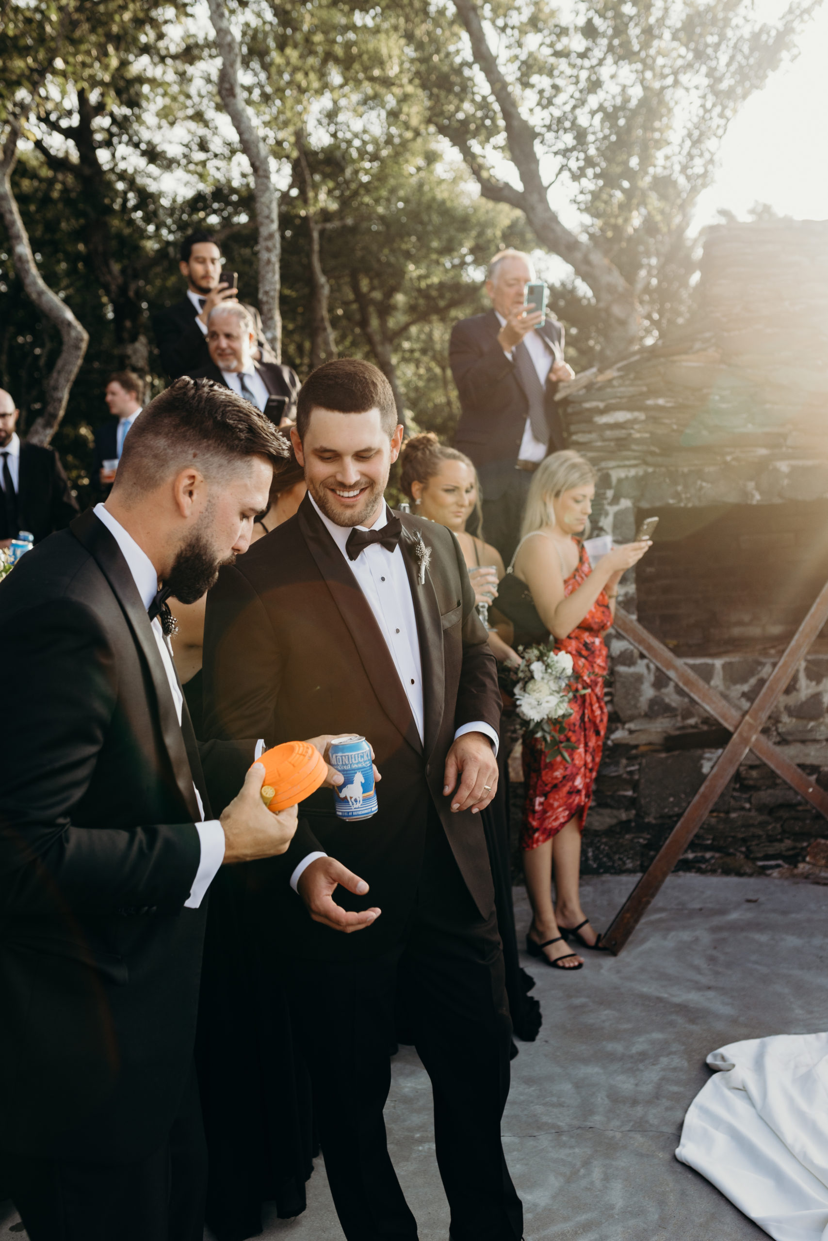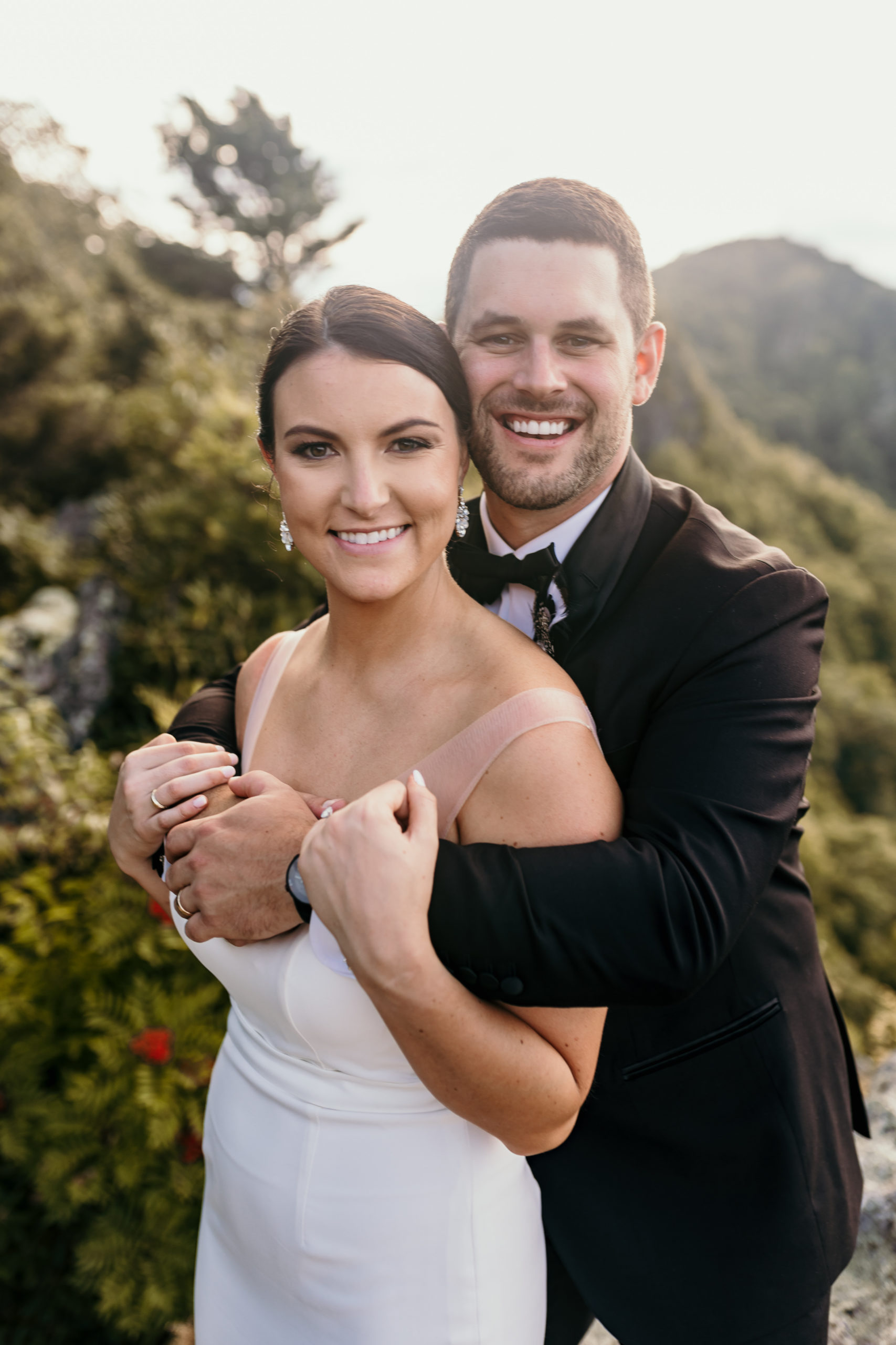 The best part of their day was when Natalie walked down the aisle. Davis & Natalie planned to do a first look but then decided to wait. Which made the moment Davis saw Natalie so sweet. Their reception was beautiful full of emotion from family & such a dance party with their live band! They had the chance where guest could walk up to the overlook & that was great. Then Davis & Natalie shot a couple clays over the mountain which was so them & such a fun moment!