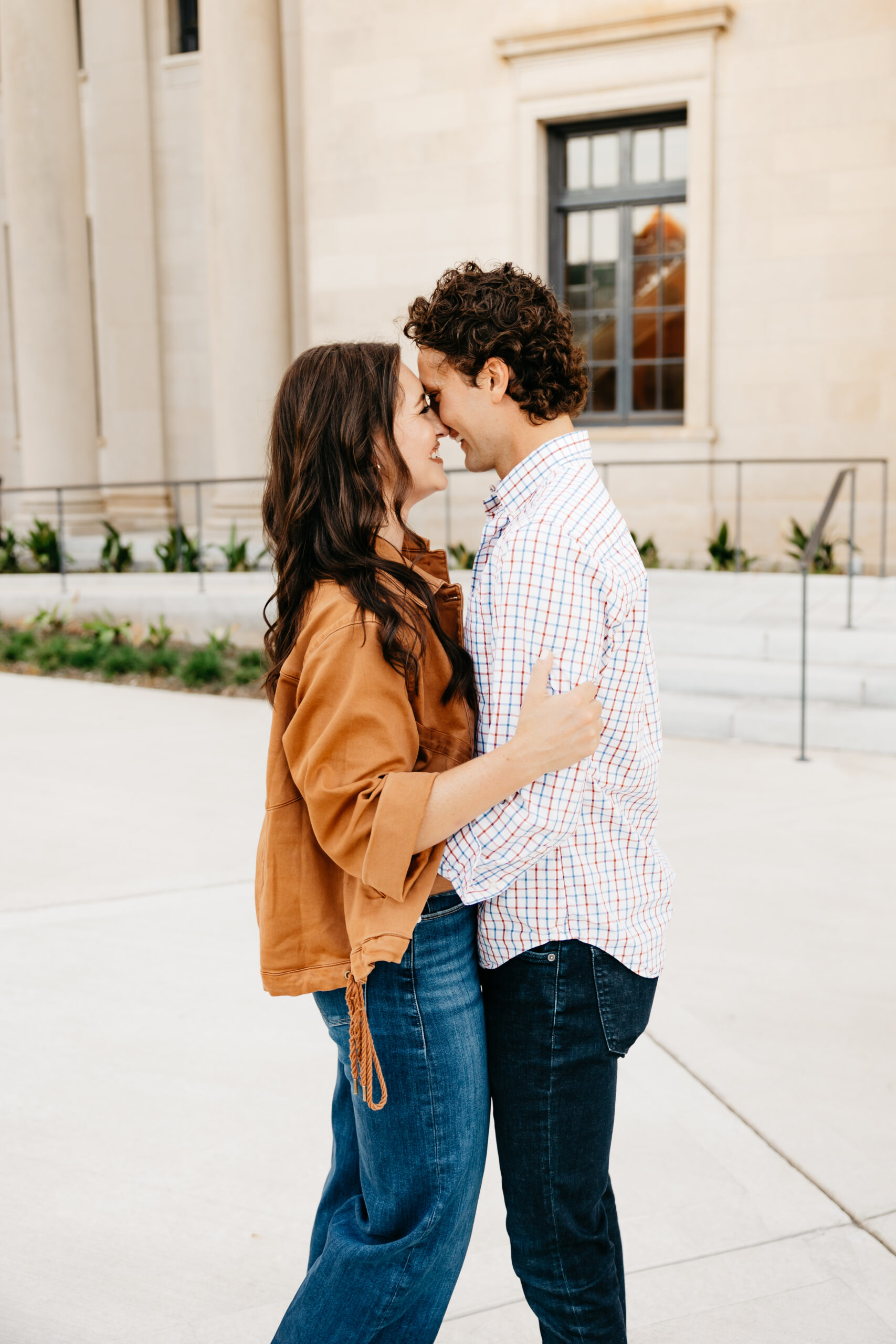 Recently, I had the honor of photographing a sweet symphony between Connor and Nicole in the heart of Charlotte, North Carolina. From Midtown Park’s lush embrace to Uptown’s post office columns, their engagement shoot was pure magic. We kicked things off at Midtown Park, where urban energy met serene nature. Amidst towering buildings, Connor and Nicole could not stop smiling & laughing. It made for the best shoot.