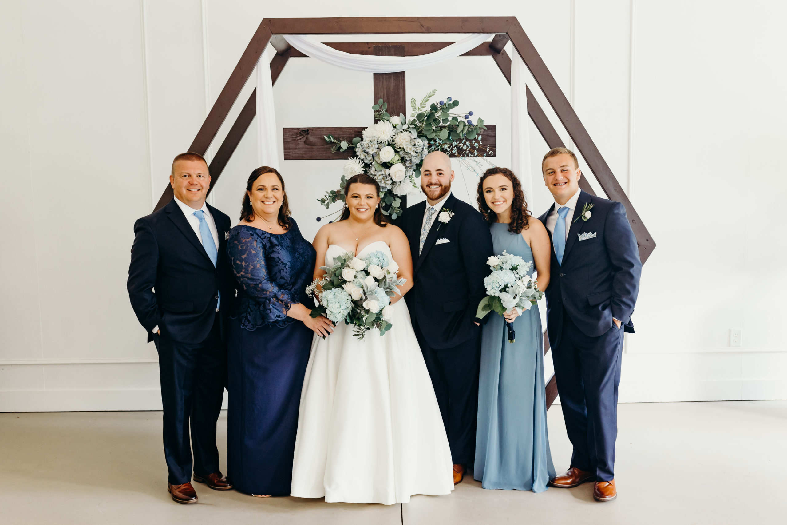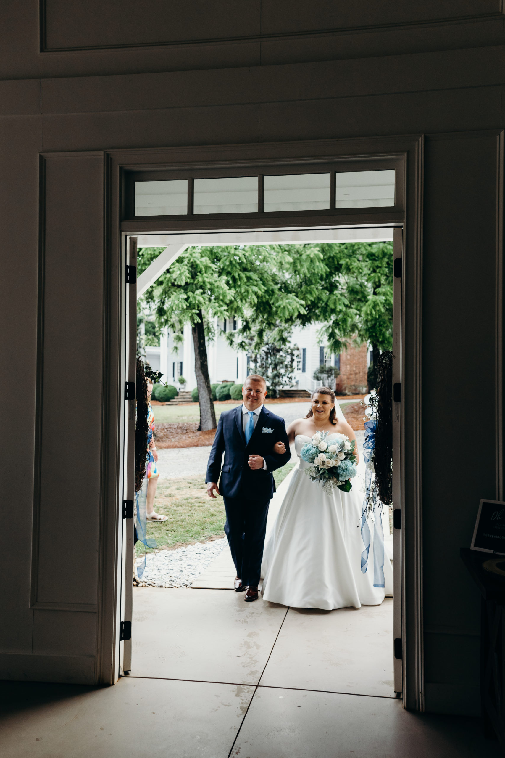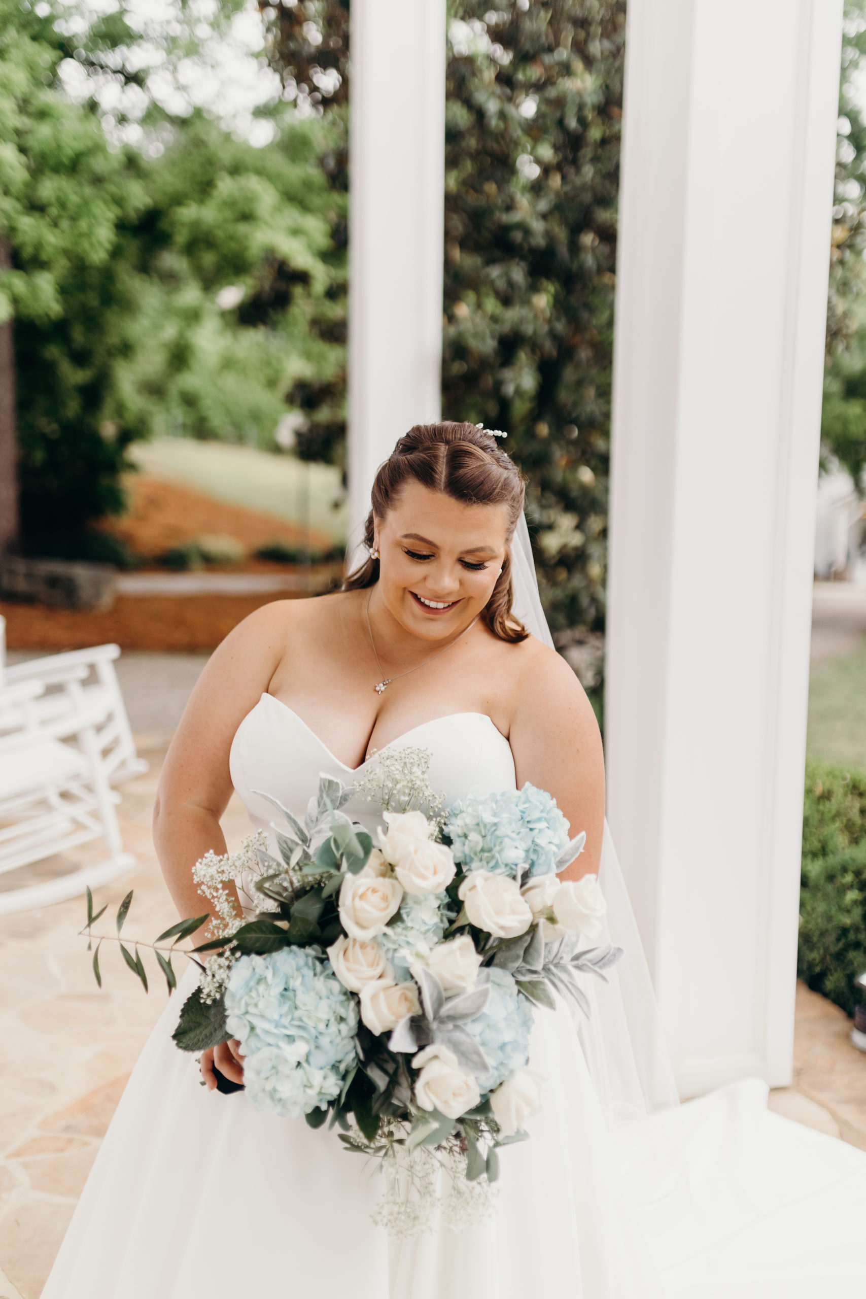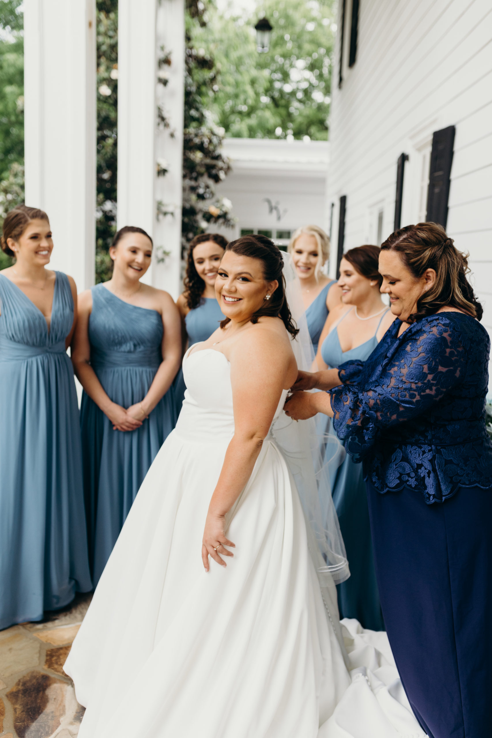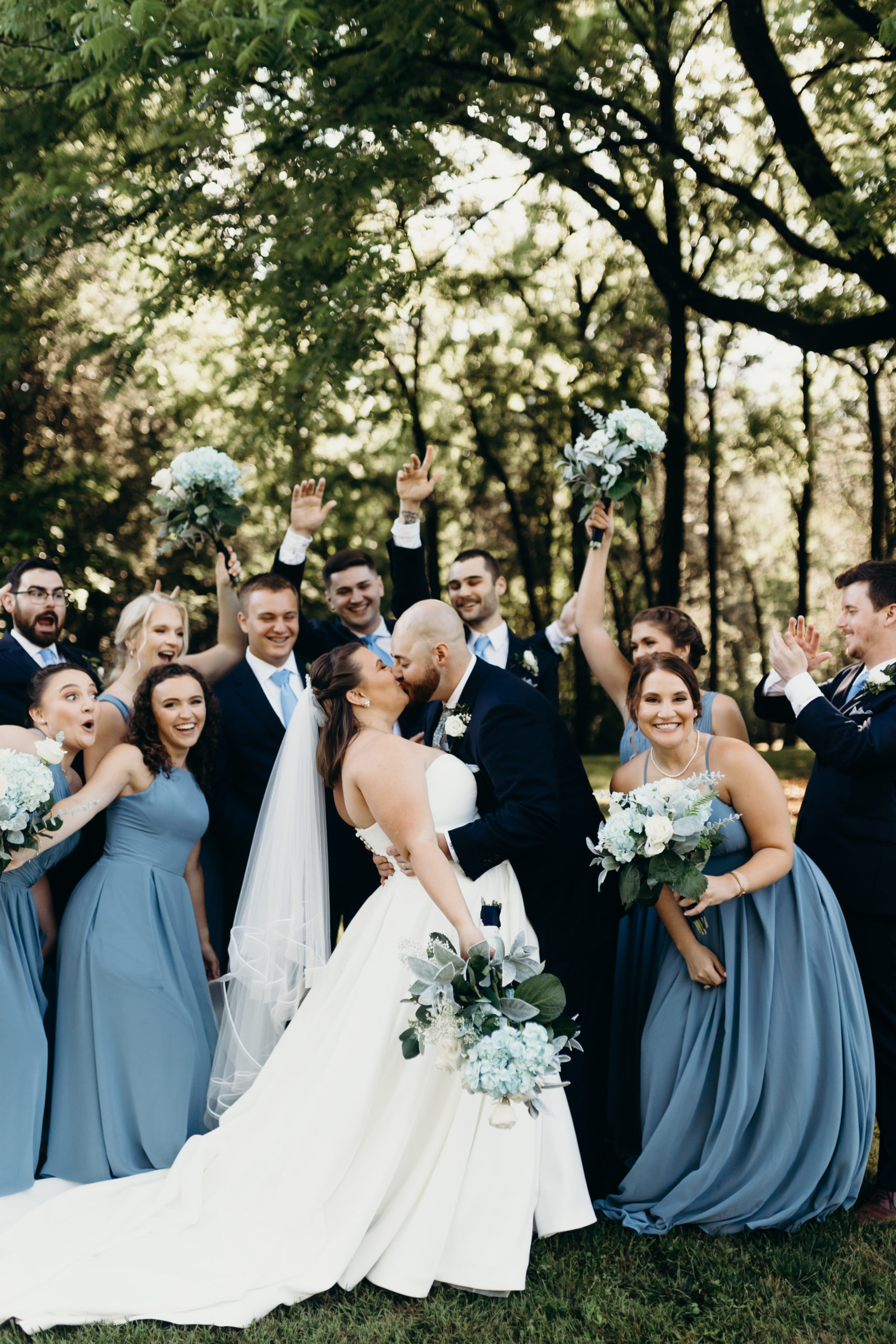 Grant & Katie chose the most beautiful color palette with a pretty blues. This gave such a stunning look, that looked perfectly intentional yet totally effortless. The organic floral design was one of the highlights of the day, featuring lots of wildflowers & greenery. Altogether, the details were visually captivating. But none as much as Katie’s glam bridal look, which featured the most stunning gown. Her bridesmaids were so full of emotion when they saw Katie get into her dress for the first time. This will be a moment that is remembered forever.