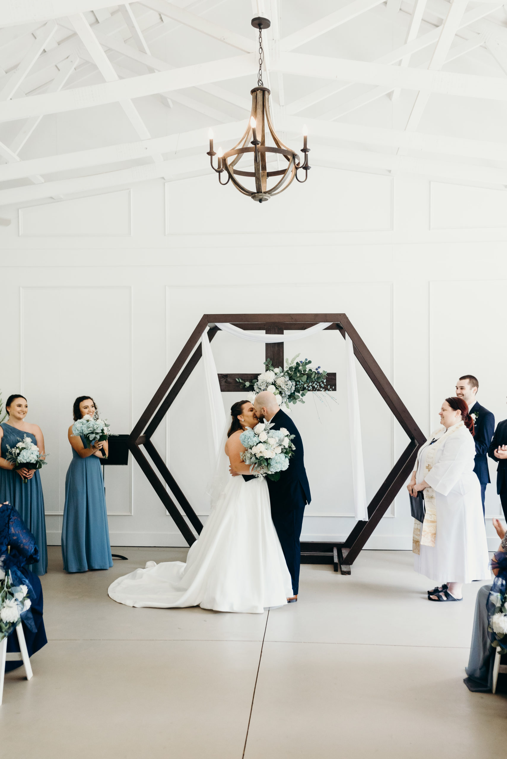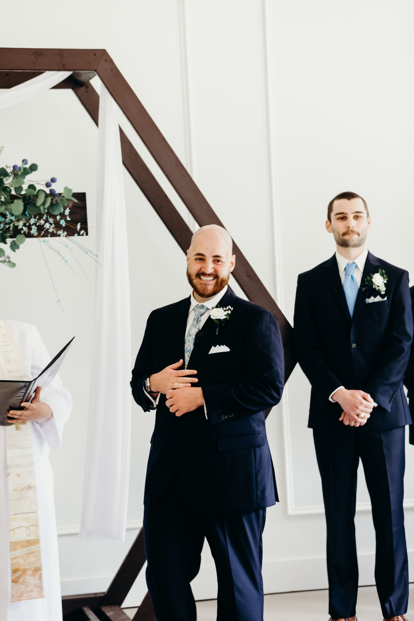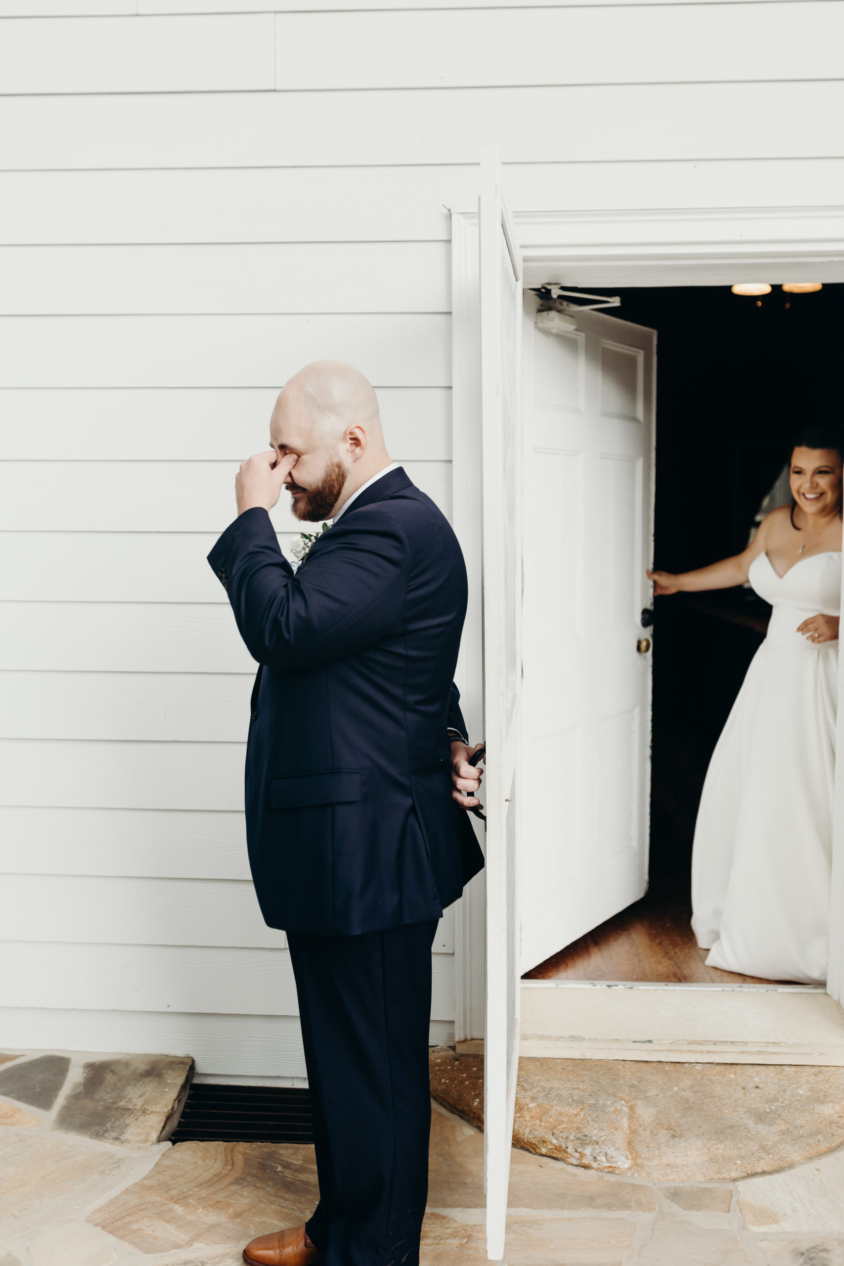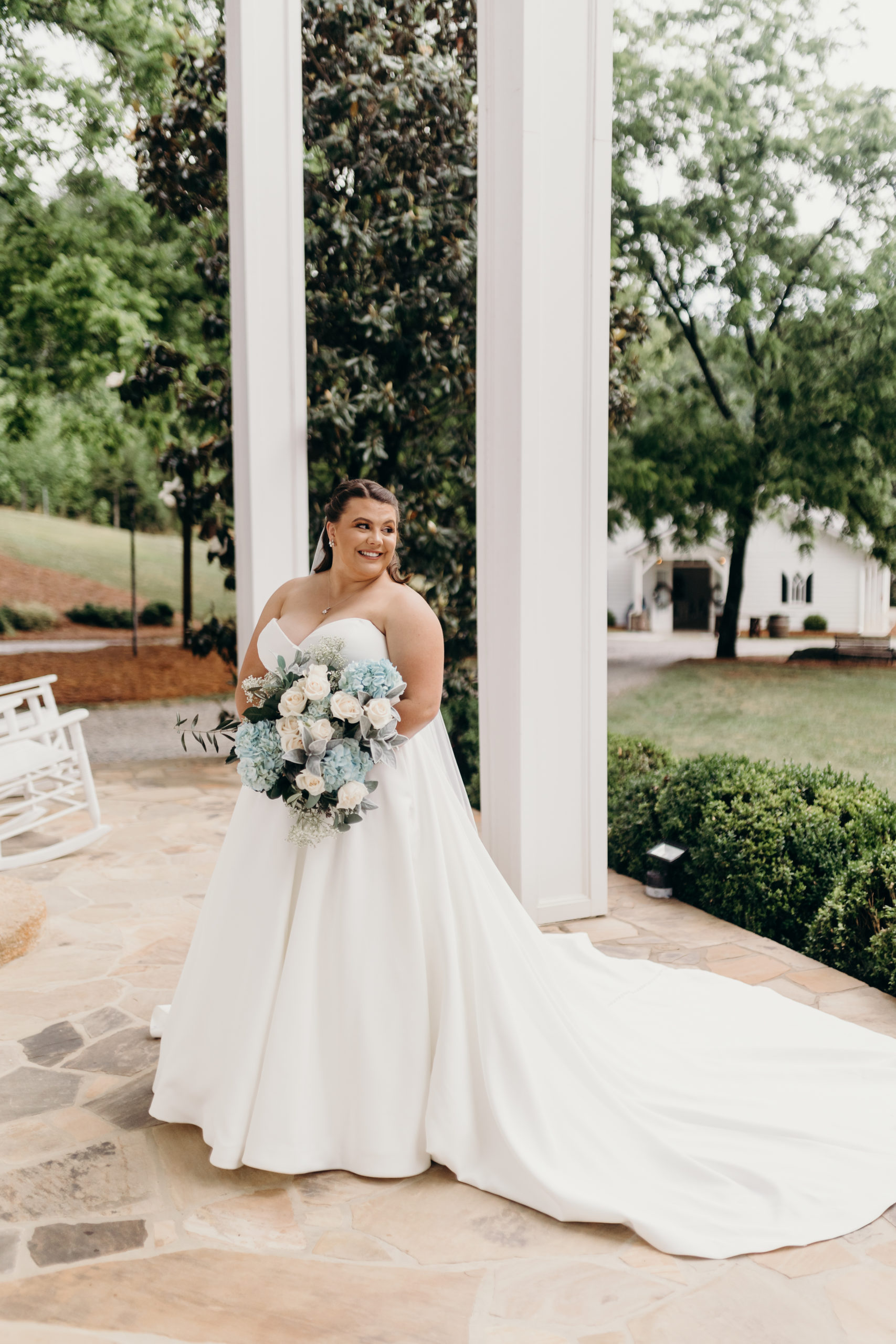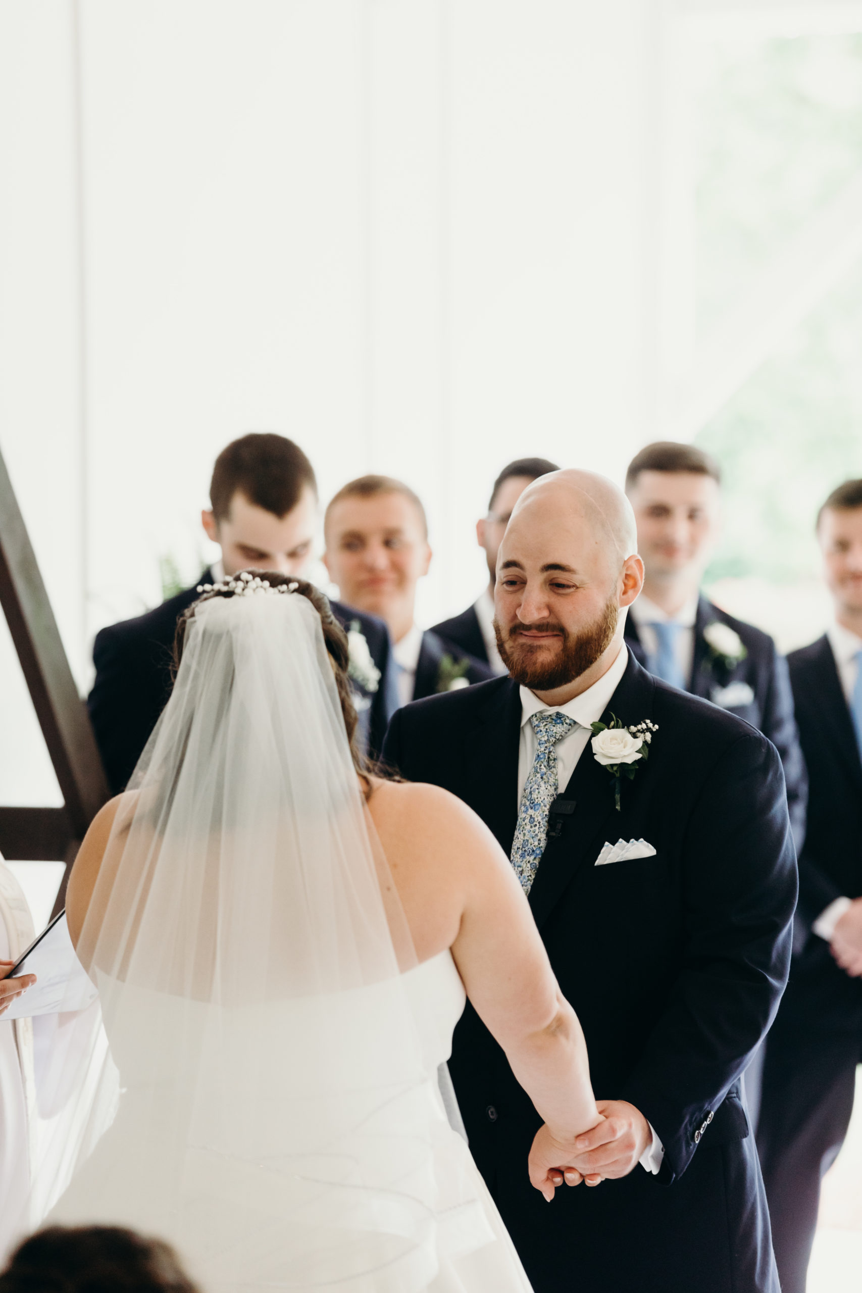 Grant & Katie chose the most beautiful color palette with a pretty blues. This gave such a stunning look, that looked perfectly intentional yet totally effortless. The organic floral design was one of the highlights of the day, featuring lots of wildflowers & greenery. Altogether, the details were visually captivating. But none as much as Katie’s glam bridal look, which featured the most stunning gown. Her bridesmaids were so full of emotion when they saw Katie get into her dress for the first time. This will be a moment that is remembered forever.