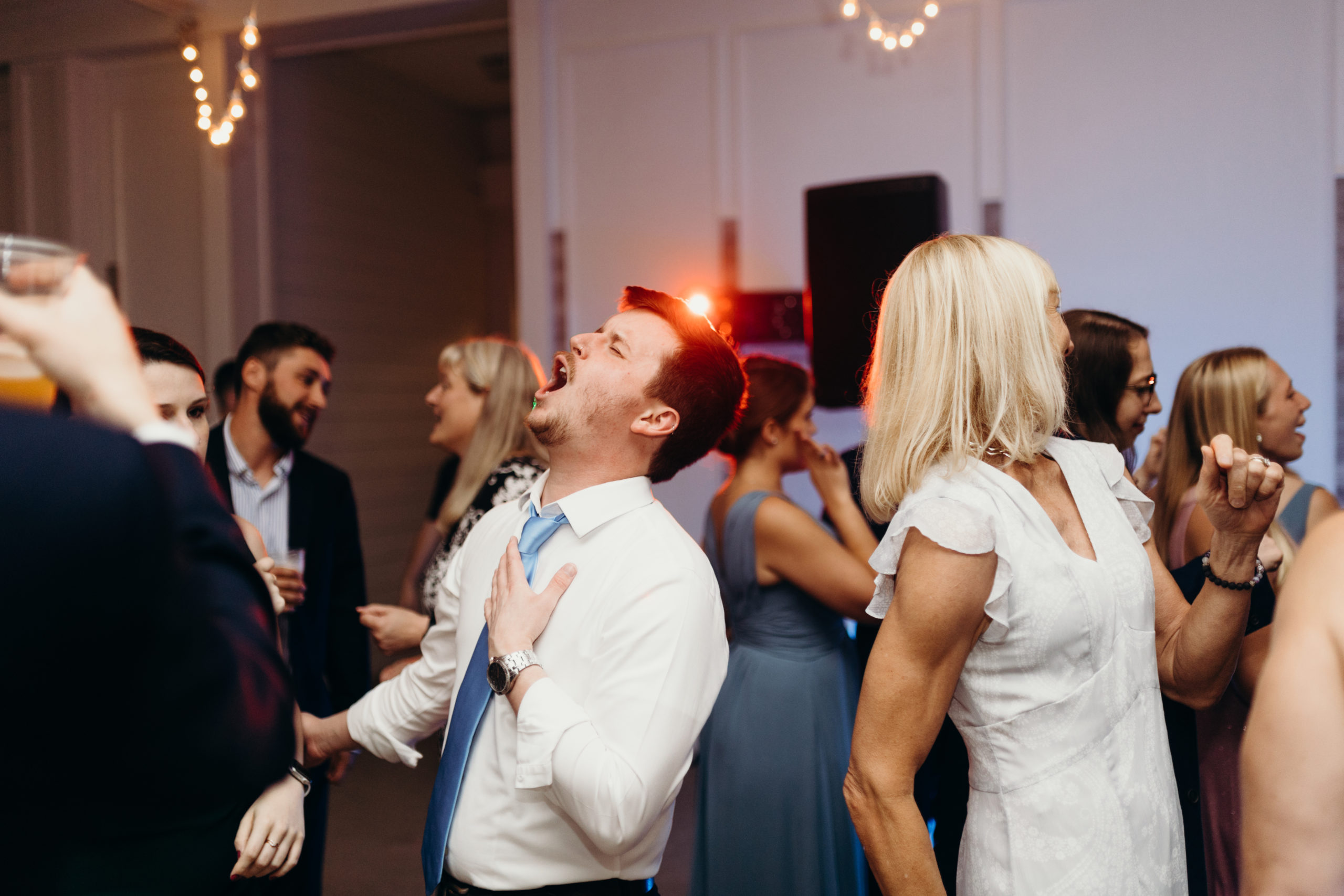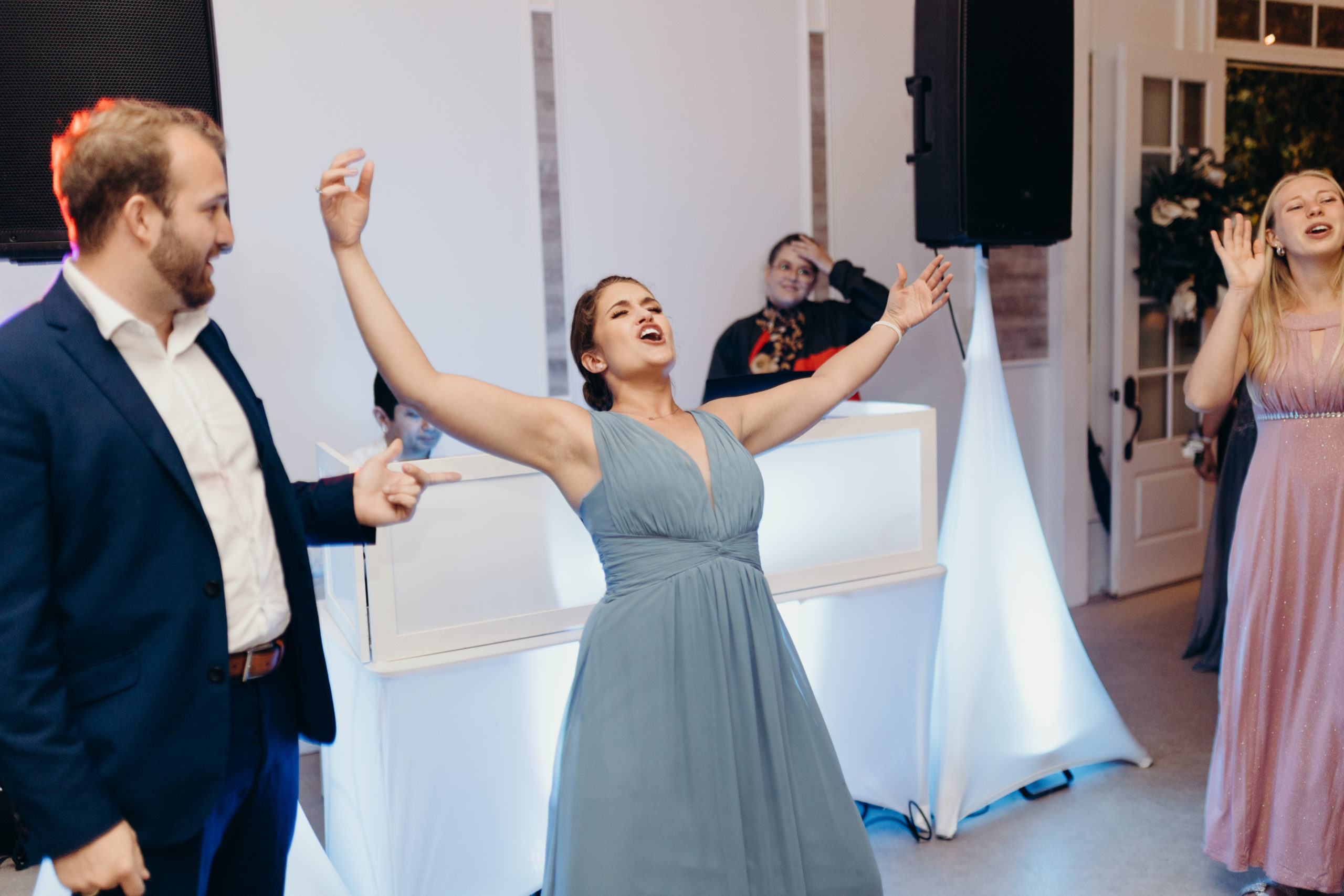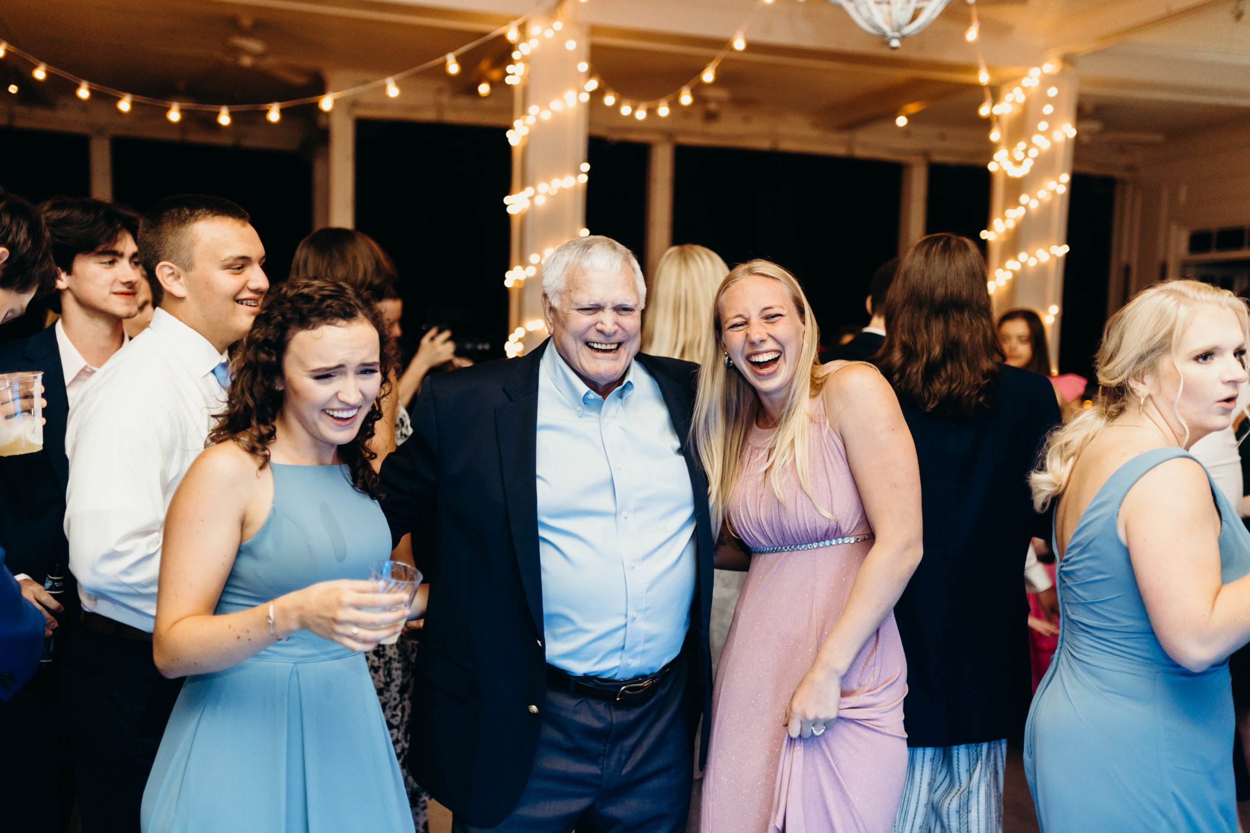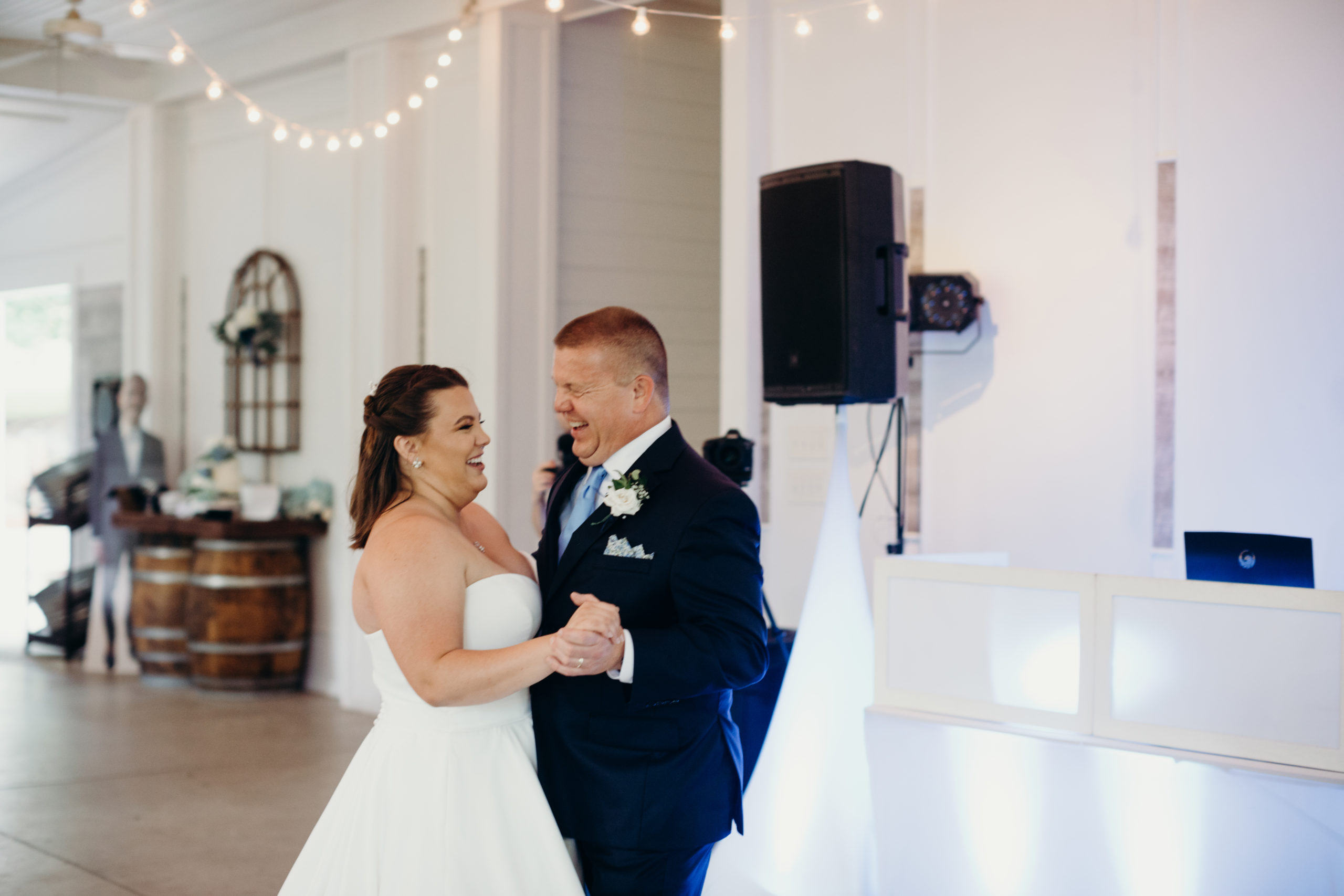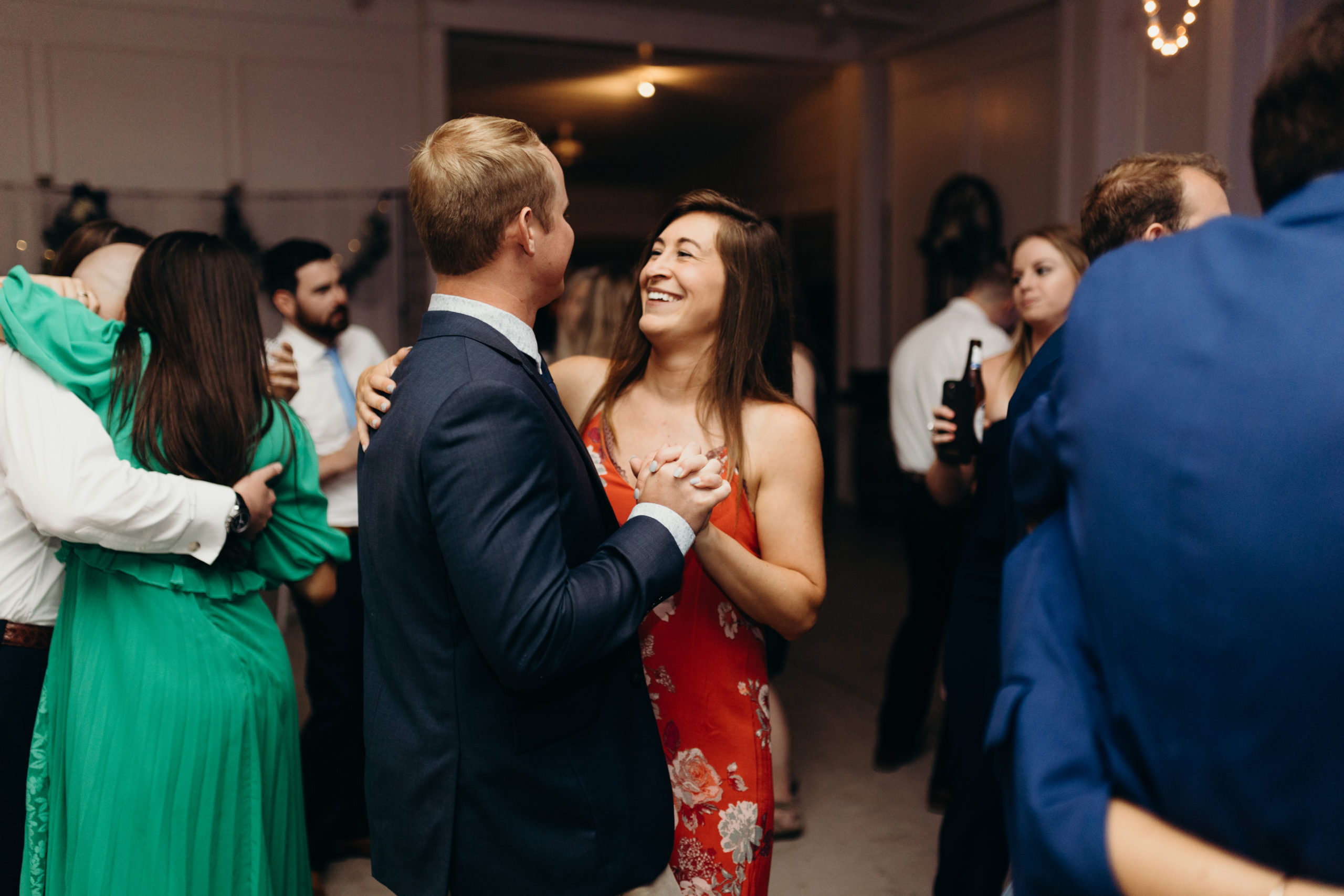 Grant & Katie chose the most beautiful color palette with a pretty blues. This gave such a stunning look, that looked perfectly intentional yet totally effortless. The organic floral design was one of the highlights of the day, featuring lots of wildflowers & greenery. Altogether, the details were visually captivating. But none as much as Katie’s glam bridal look, which featured the most stunning gown. Her bridesmaids were so full of emotion when they saw Katie get into her dress for the first time. This will be a moment that is remembered forever.